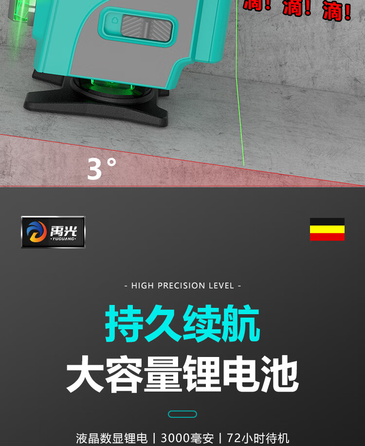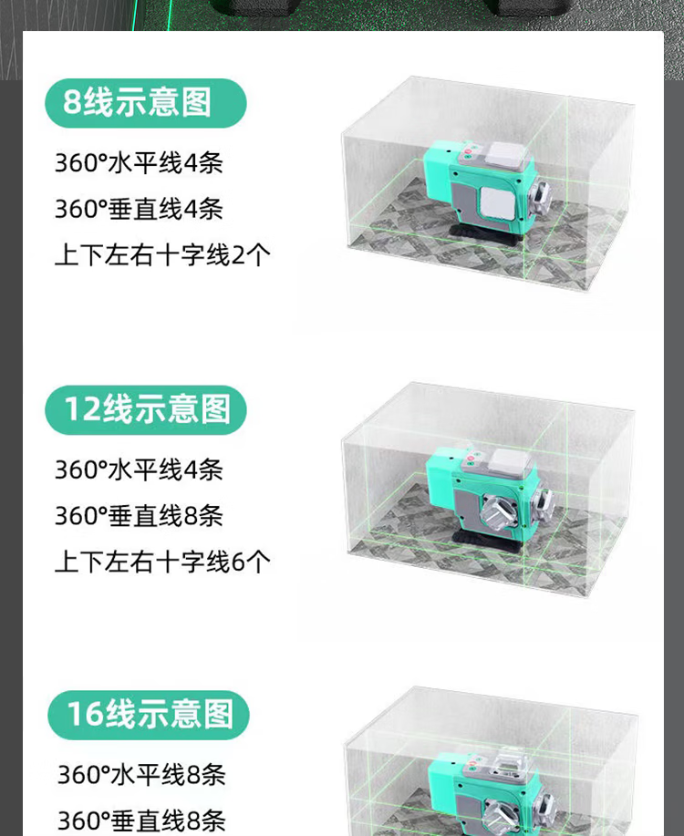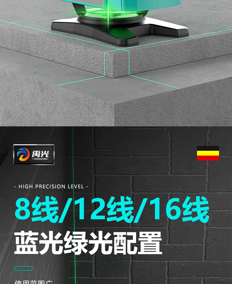 Yuguang's new outdoor ultra-bright green light 81216 line level high-precision wall and floor dual-purpose instrument 16-line green light rotating window digital display Big Mac 2
