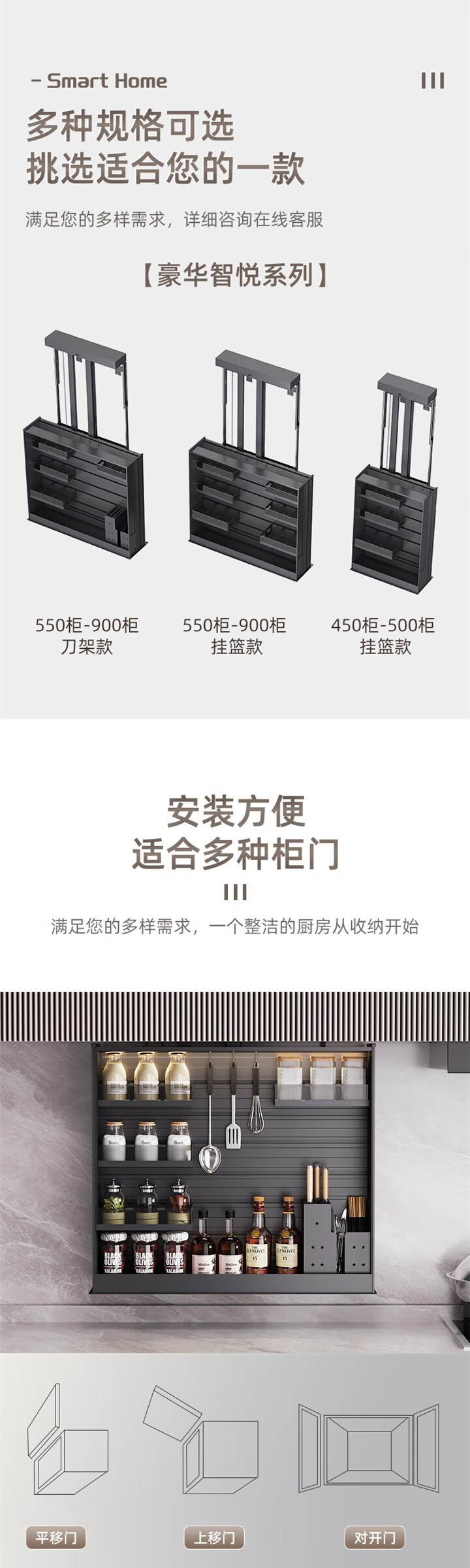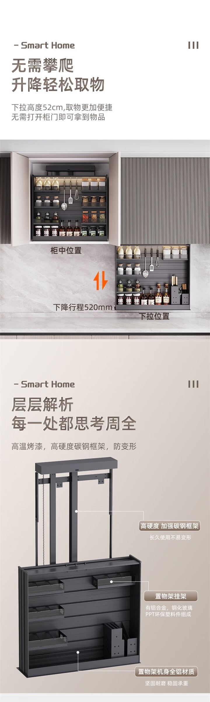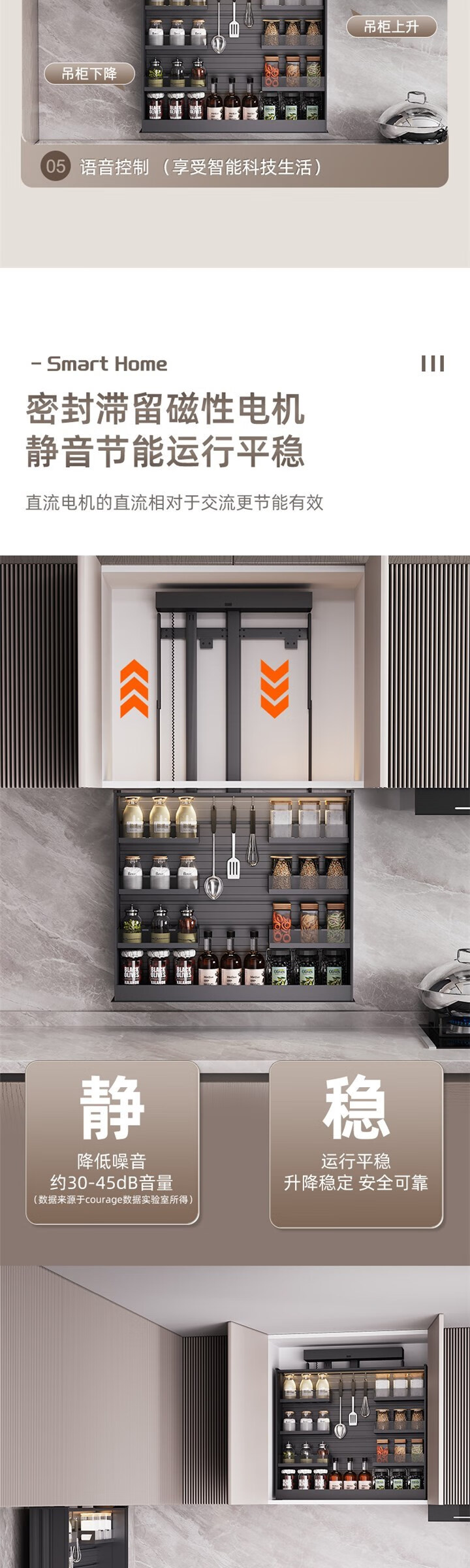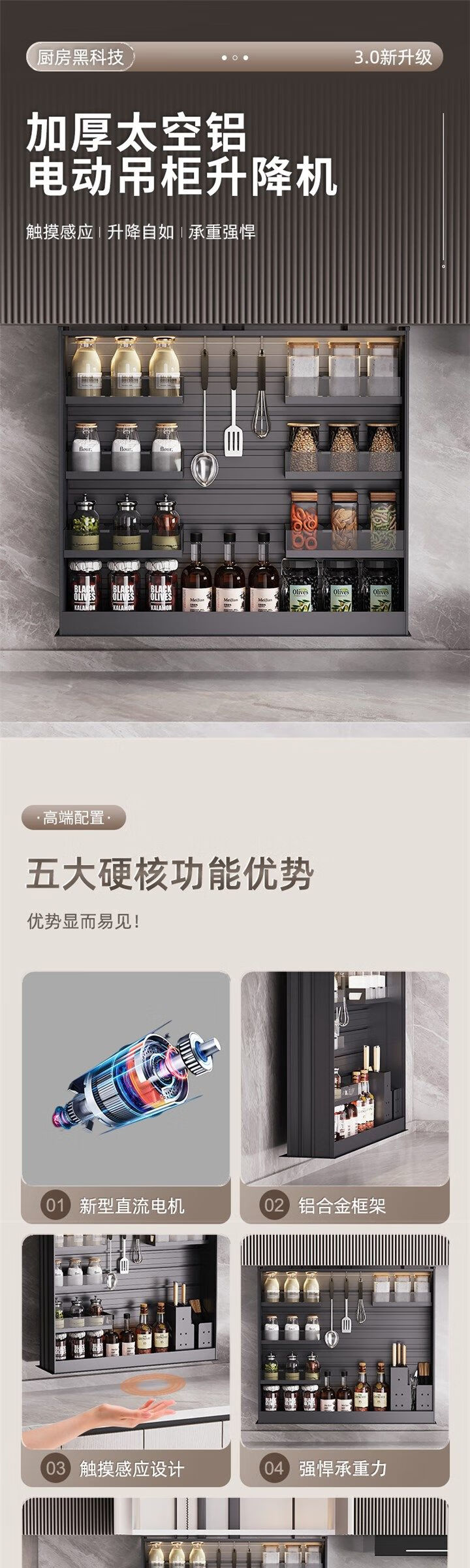 High-quality voice-activated pull-down electric kitchen cabinet storage smart lift basket machine all-aluminum wall cabinet seasoning puller*. 500 cabinet newly upgraded with anti-pinch Angel A type double-layer electric lift