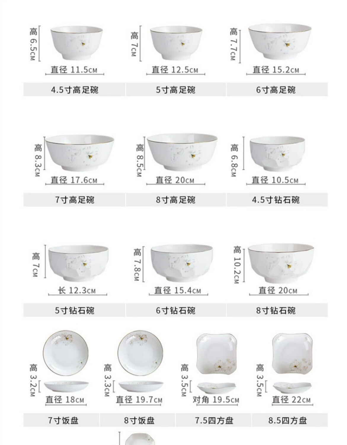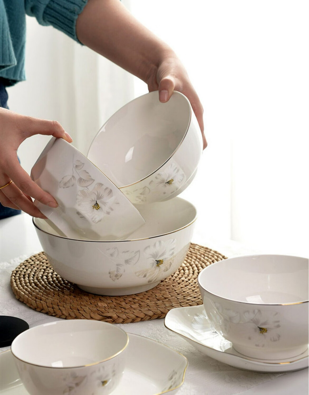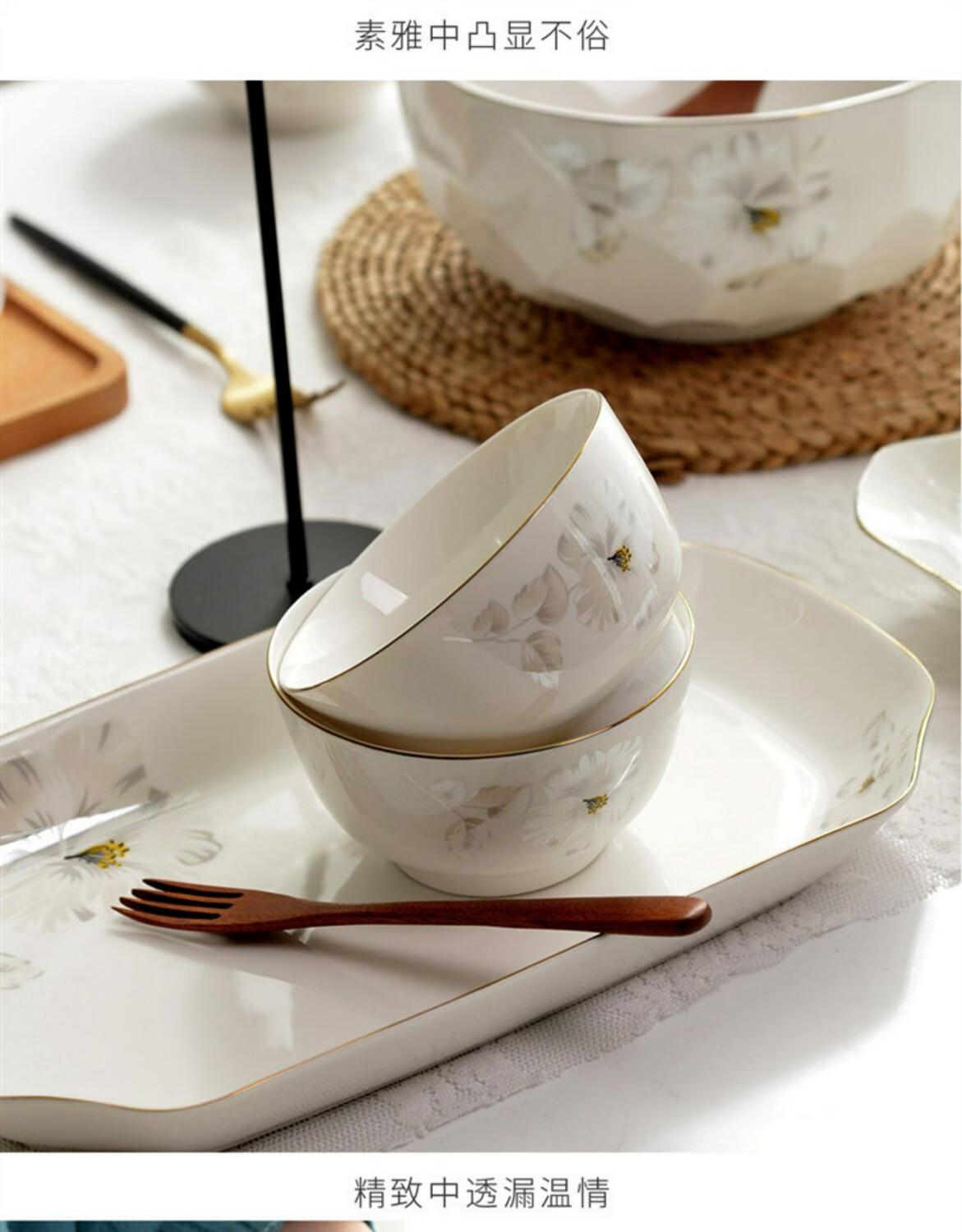 Yulong ceramic tableware Phnom rim household bowl rice bowl rice bowl noodle bowl vegetable bowl instant noodle bowl soup bowl microwave set 5 point 5 inch bowl 10 pieces set Yicai 0 heads