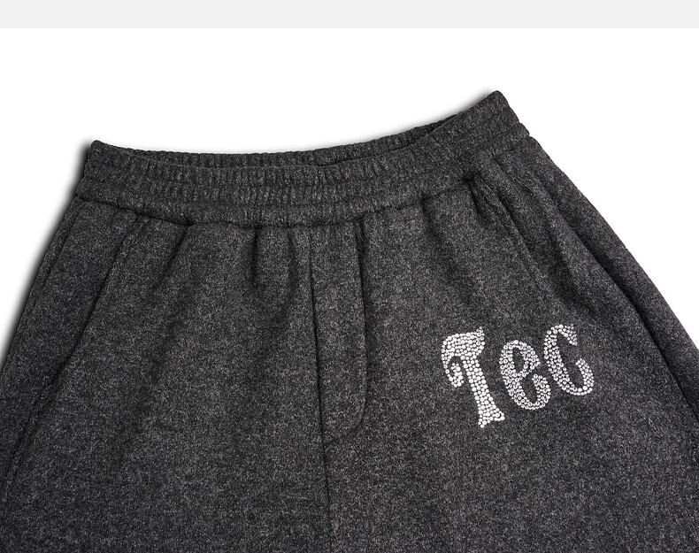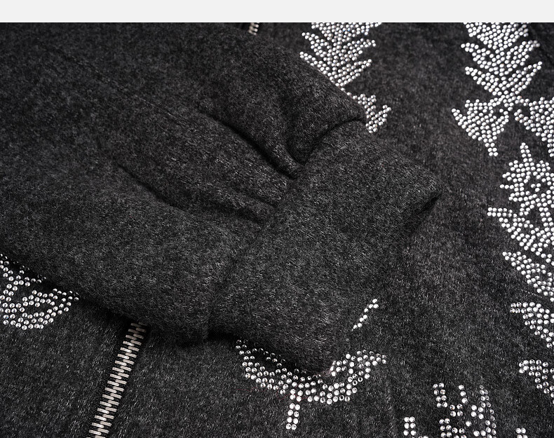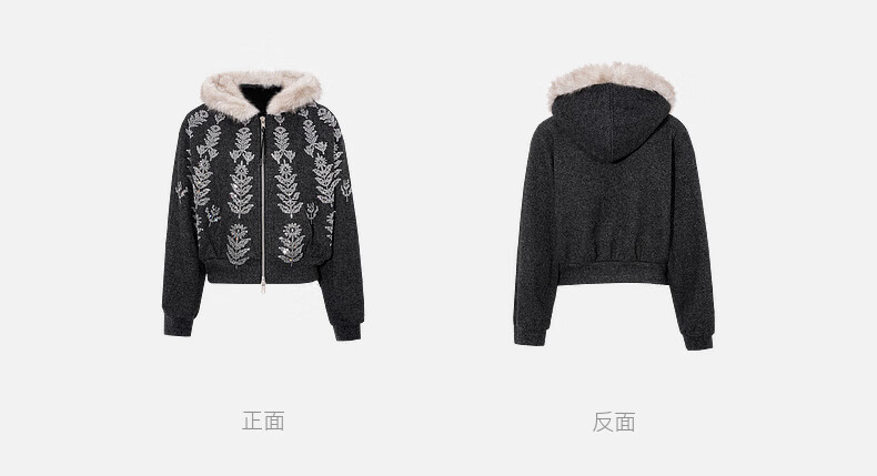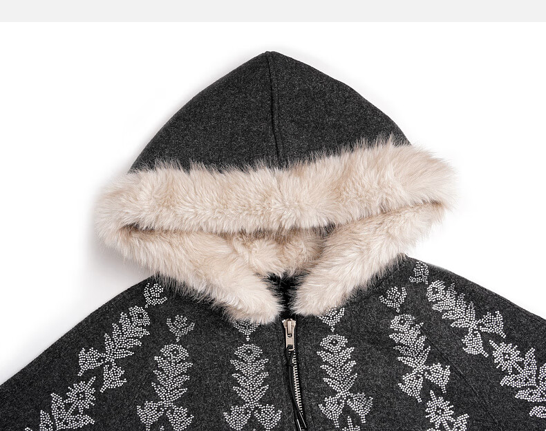 TCH hooded suit for women 25 years autumn and winter hot diamond fur collar simple style slimming temperament luxury style elegant style two-piece set gray L