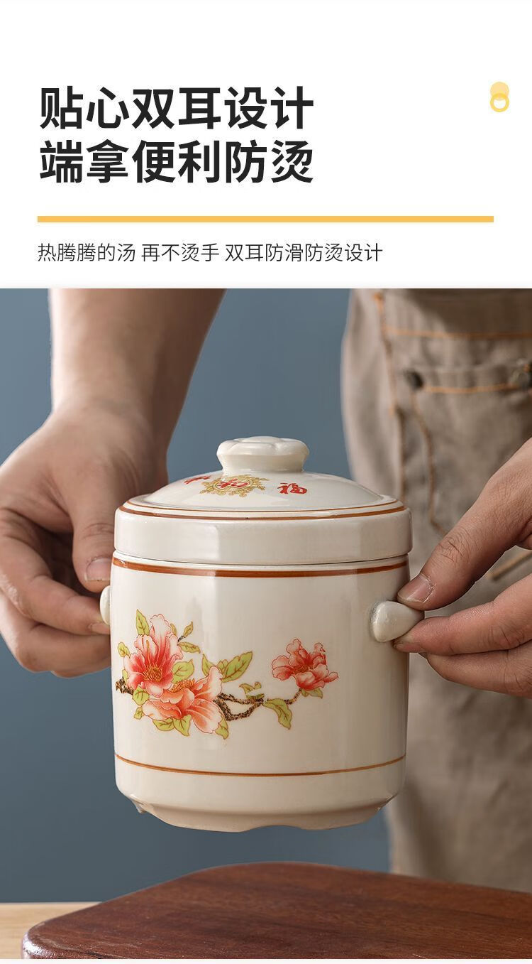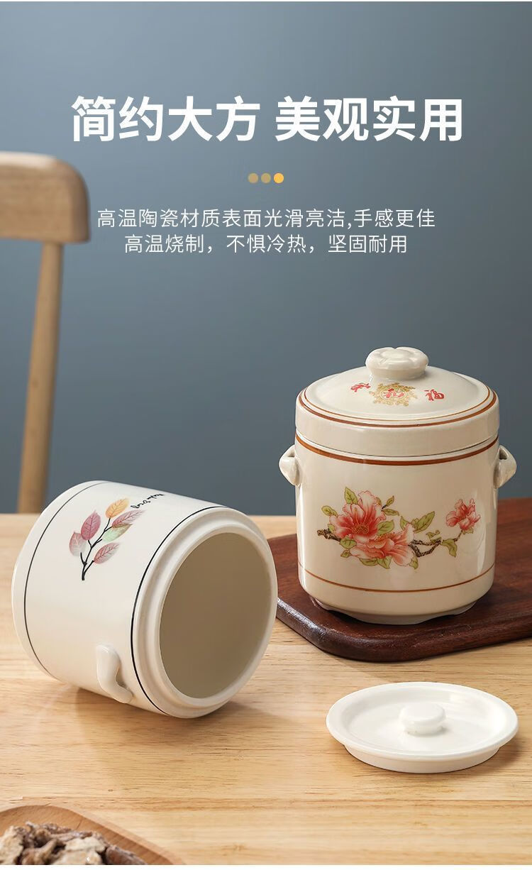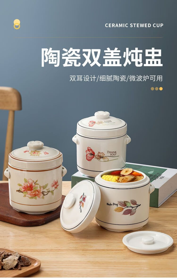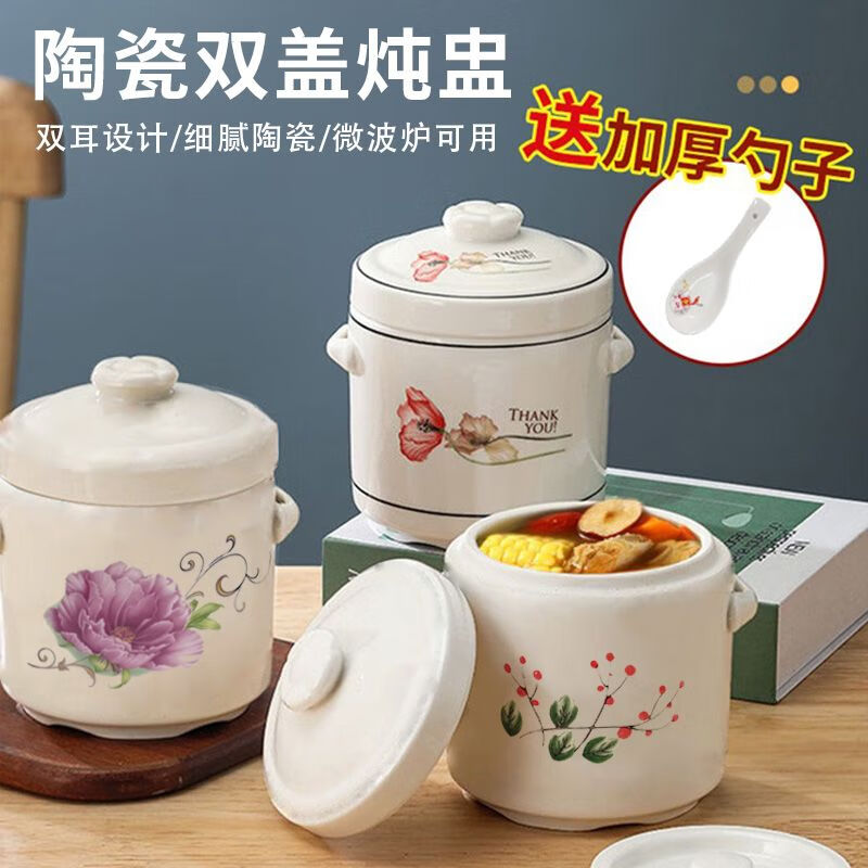 Pupan ceramic double-lid stew pot with water-proof stew household soup stew pot stew pot bird's nest stew earthenware pot stew soup Damei Shun stew pot 1000ml (suitable for 2-3 people)