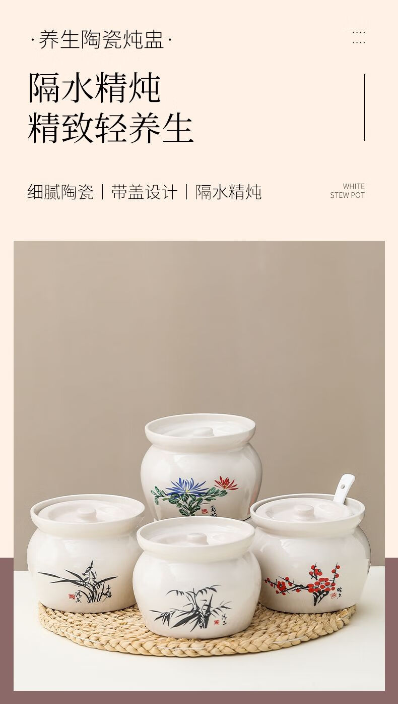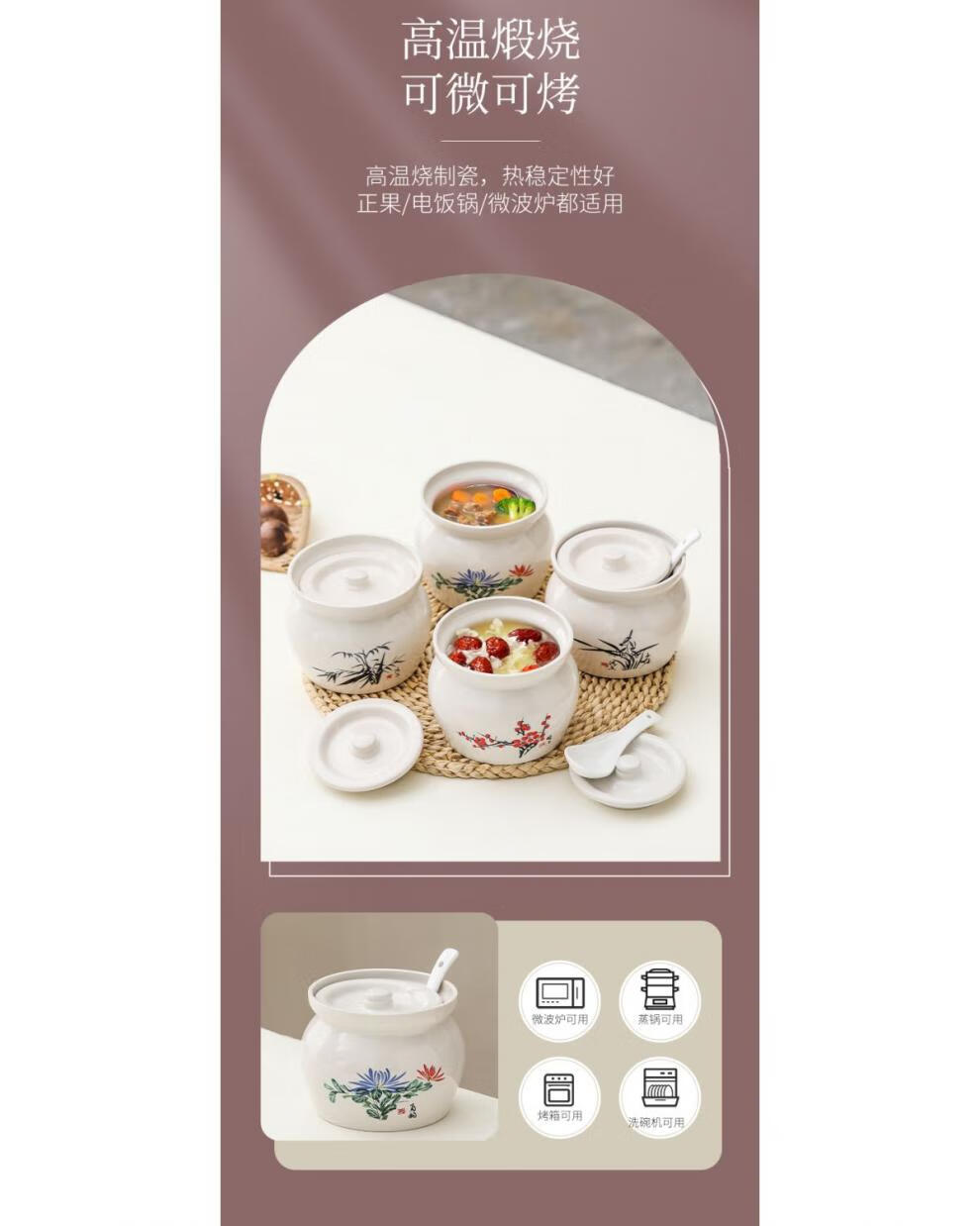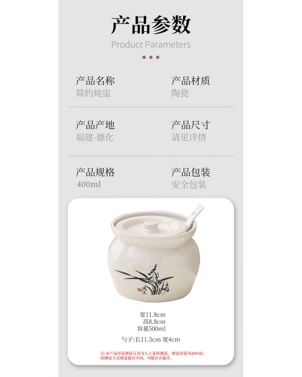 Pupan earthenware pot simmering soup stew pot household commercial water-proof stewed steamed egg for one person stew pot with lid Shaxian snack ceramic soup pot FX-white 500ml earthenware pot simmering soup stew pot-Juyun 500ml There are dimensions in the picture