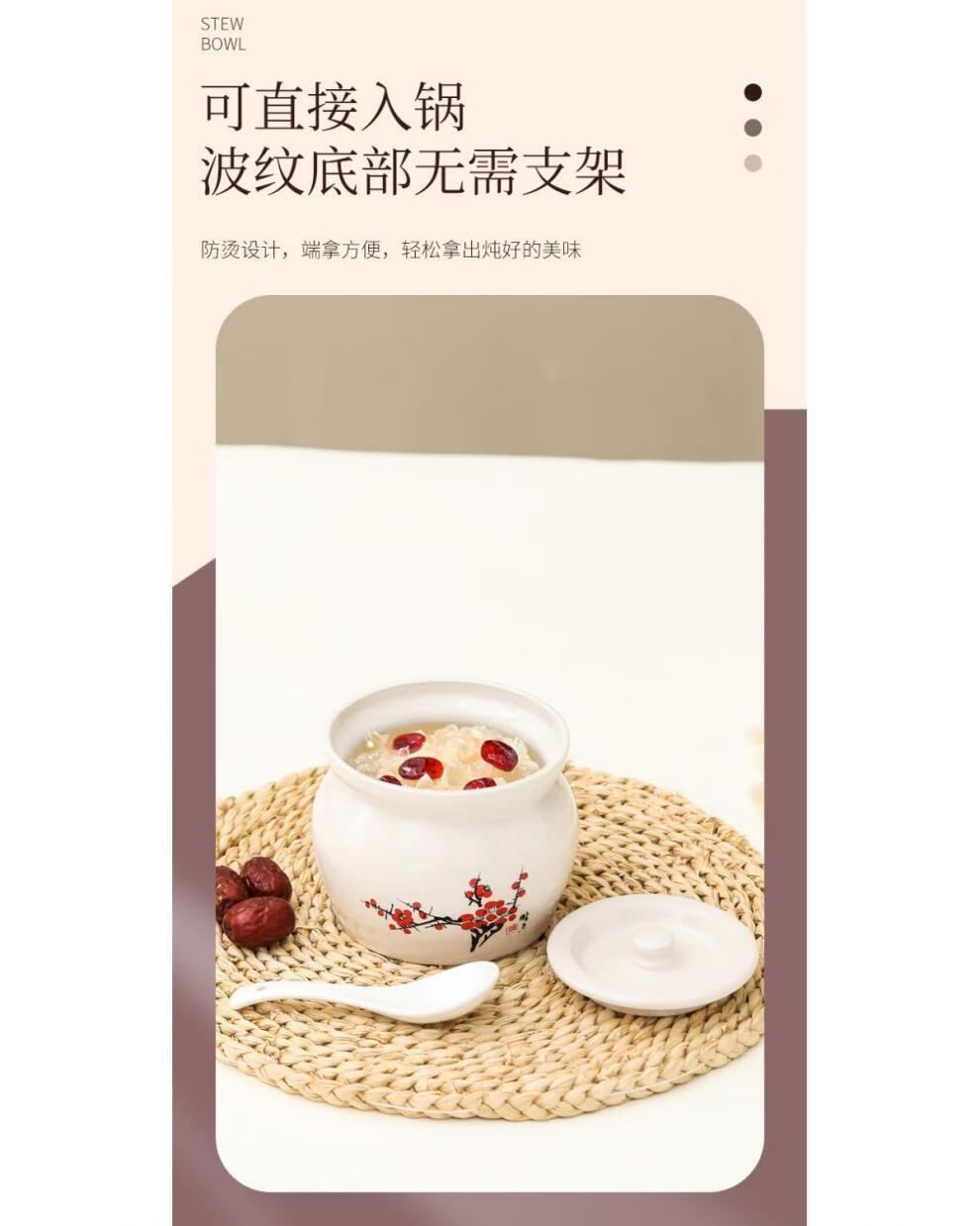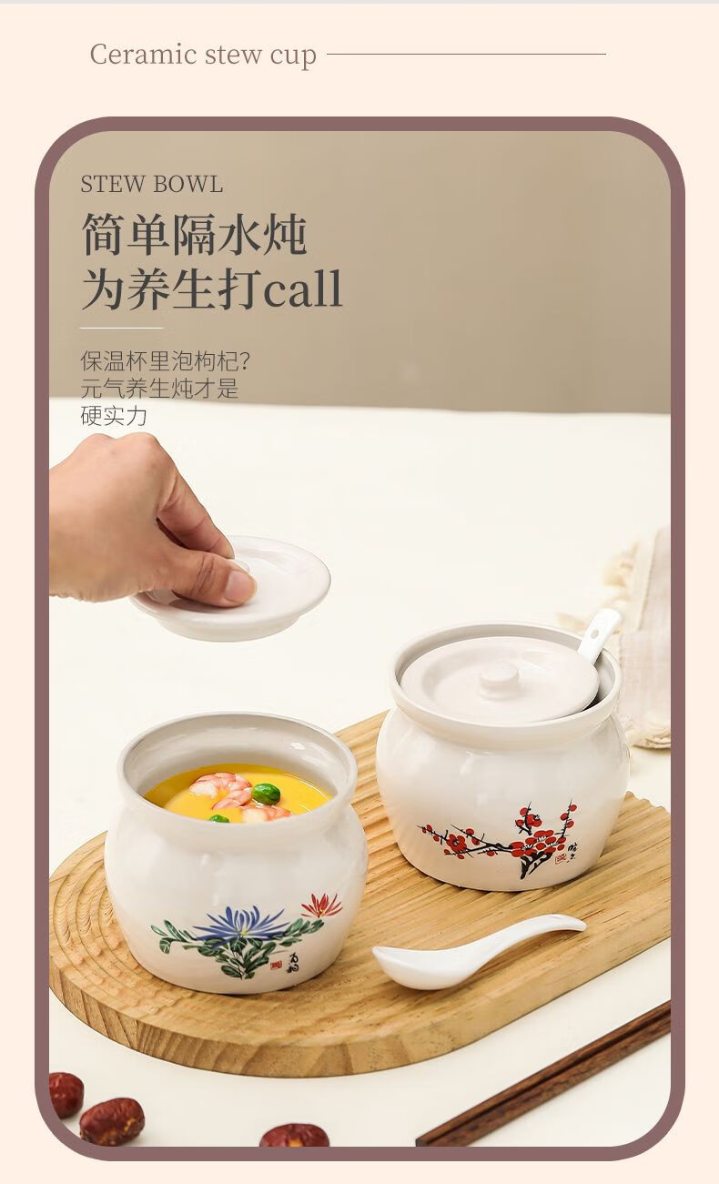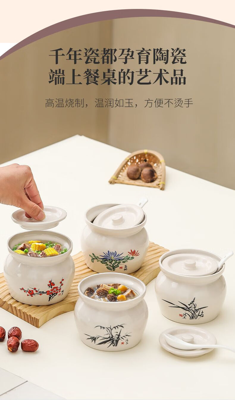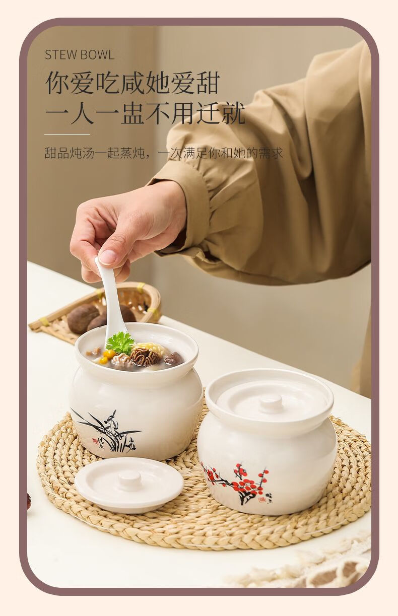Pupan earthenware pot simmering soup stew pot household commercial water-proof stewed steamed egg for one person stew pot with lid Shaxian snack ceramic soup pot FX-white 500ml earthenware pot simmering soup stew pot-Juyun 500ml There are dimensions in the picture