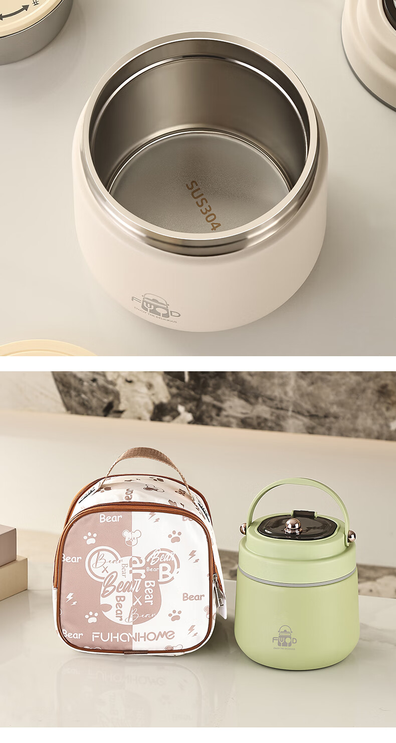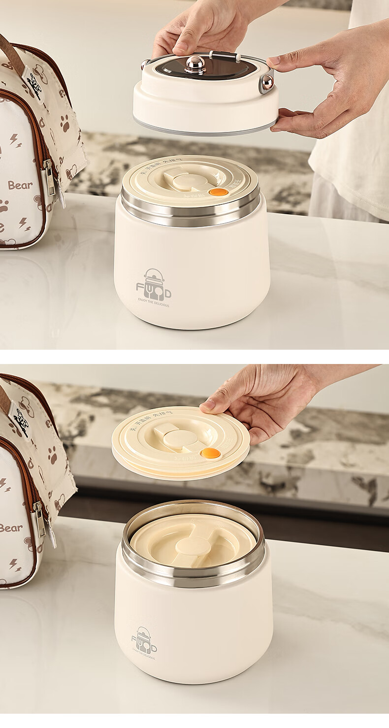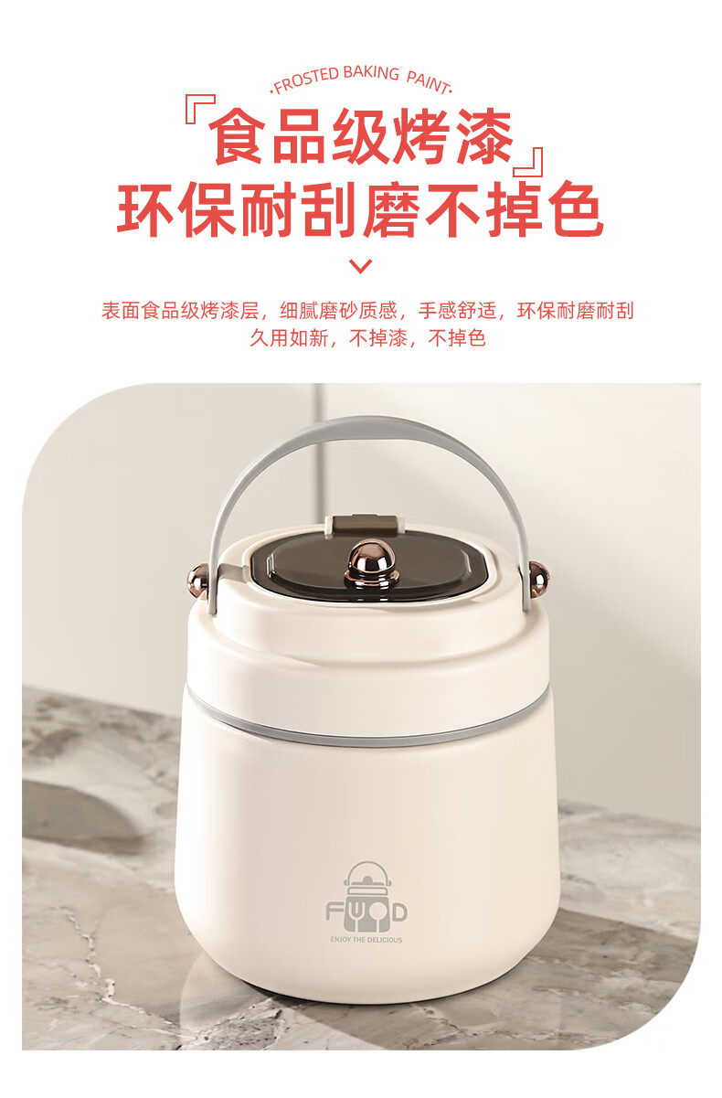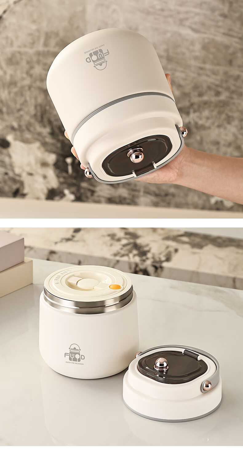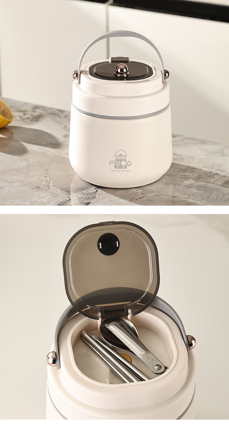 Tuojin Germany imported high-quality 304 stainless steel insulated lunch box for office workers with 24-hour extra-long bucket in winter, chubby white, free 304 folding chopsticks and spoon 1.4L
