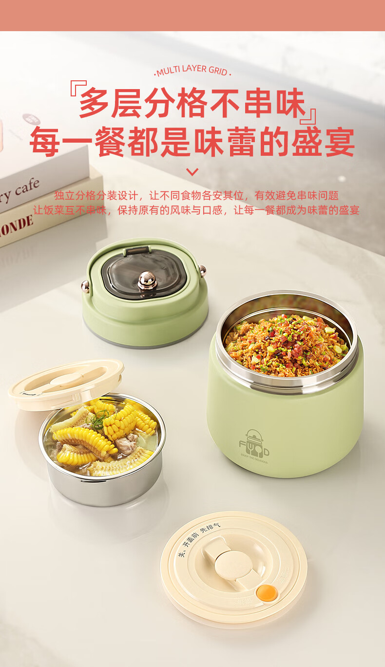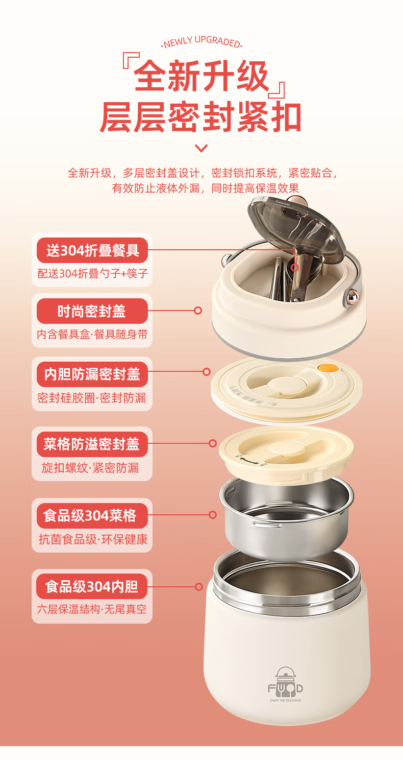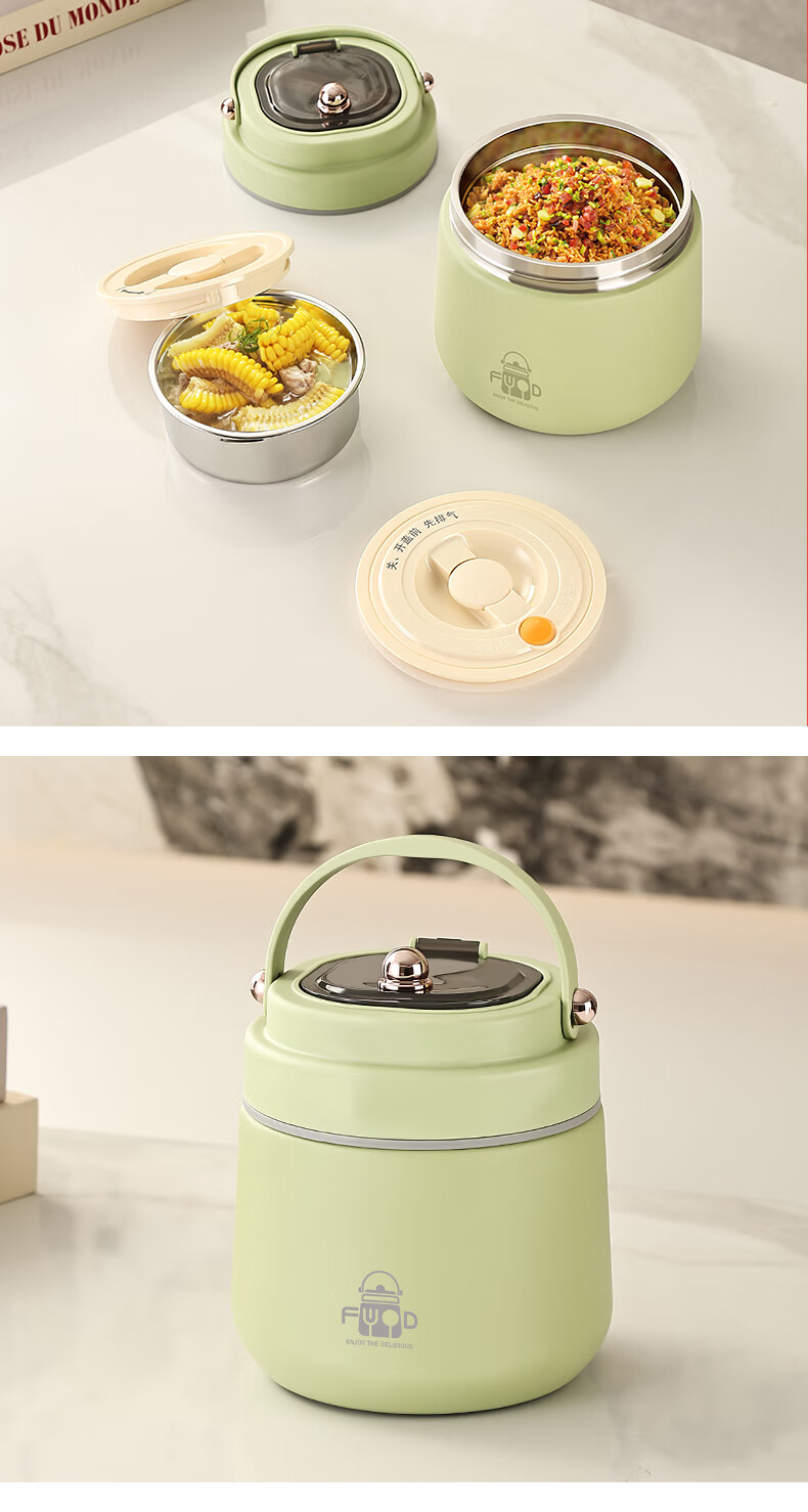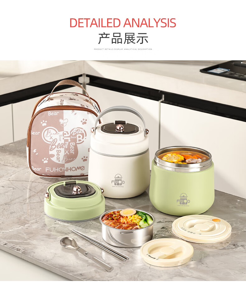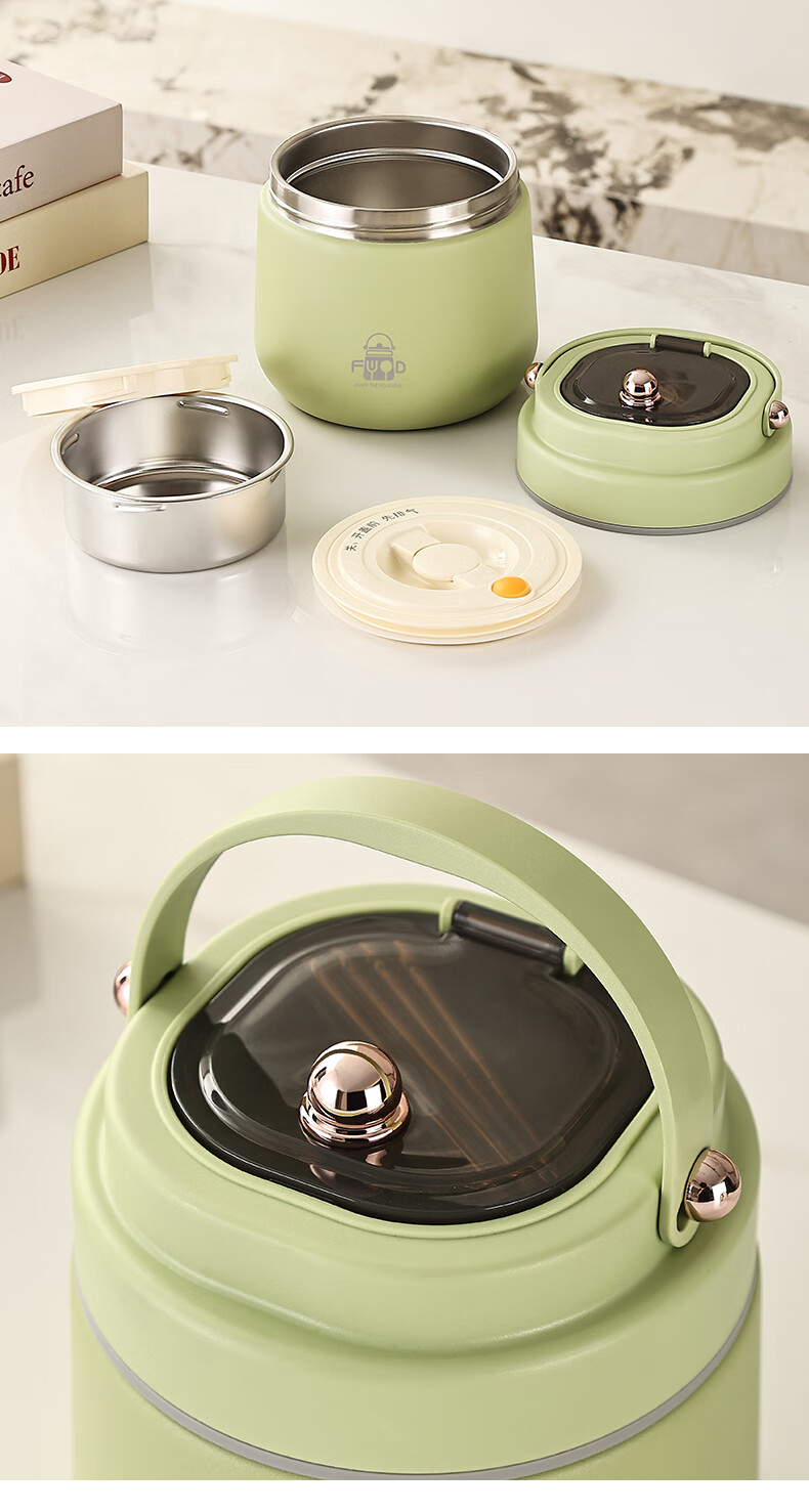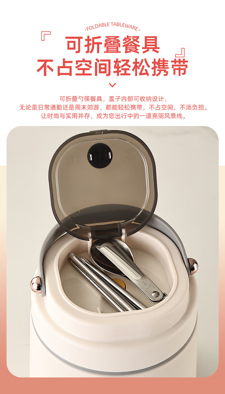 Tuojin Germany imported high-quality 304 stainless steel insulated lunch box for office workers with 24-hour extra-long bucket in winter, chubby white, free 304 folding chopsticks and spoon 1.4L