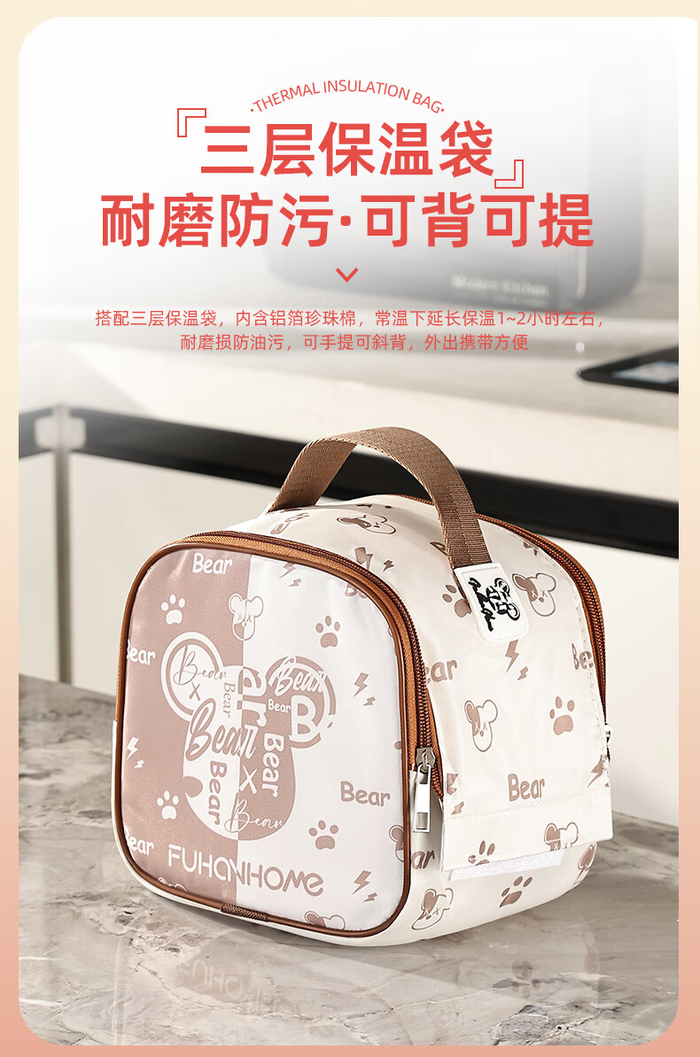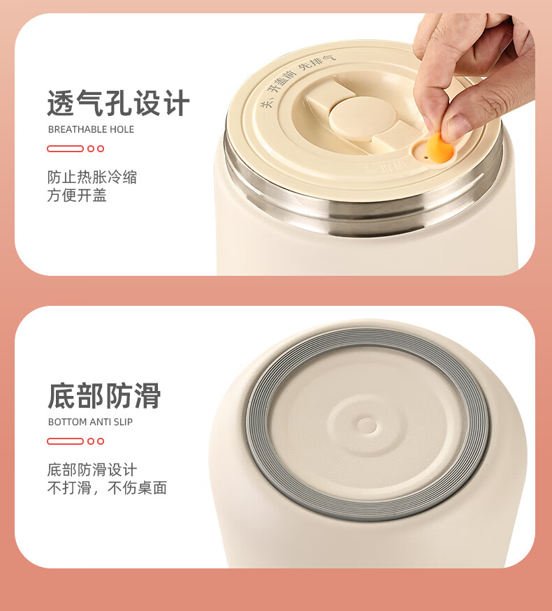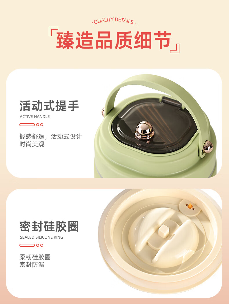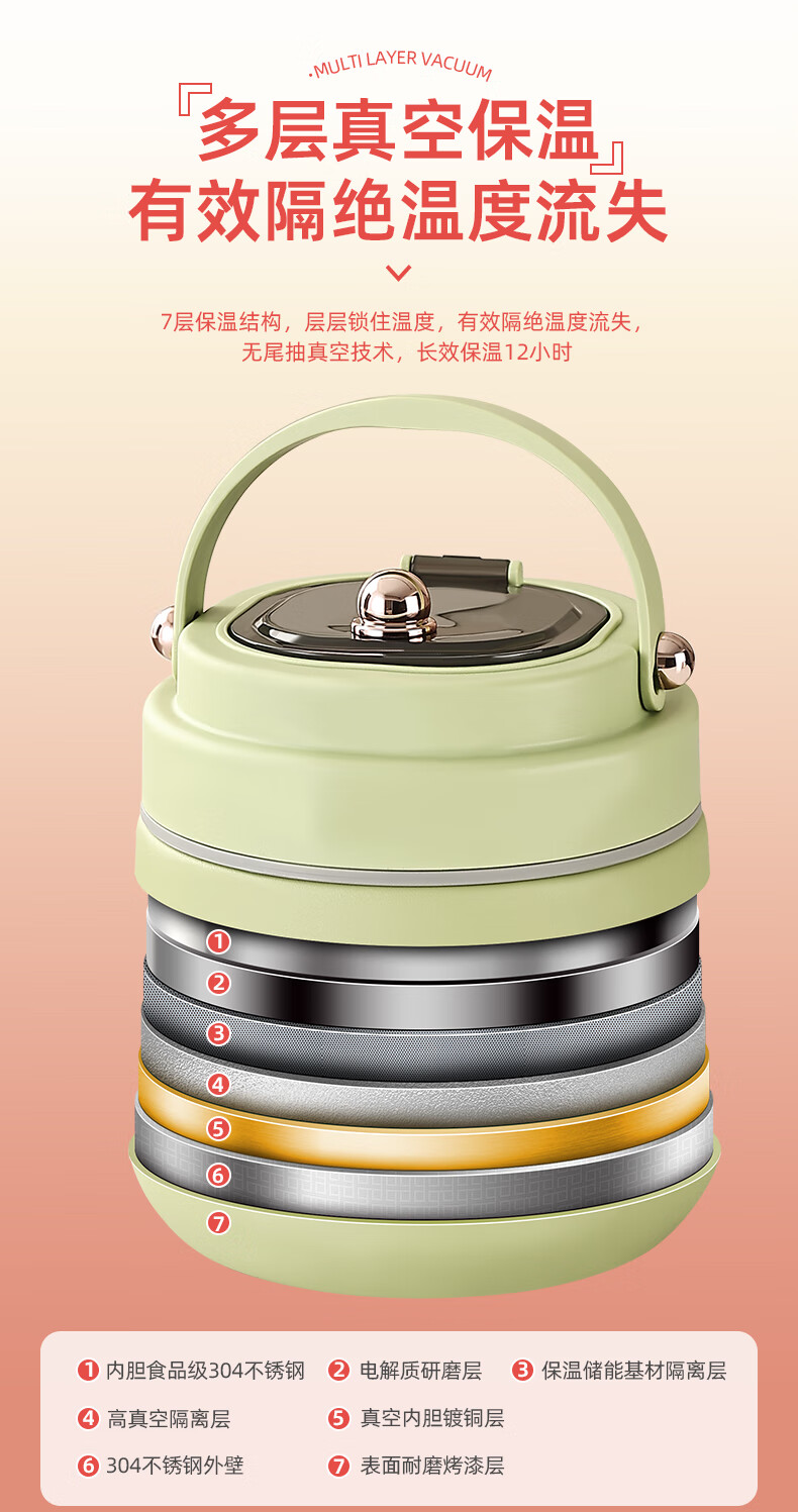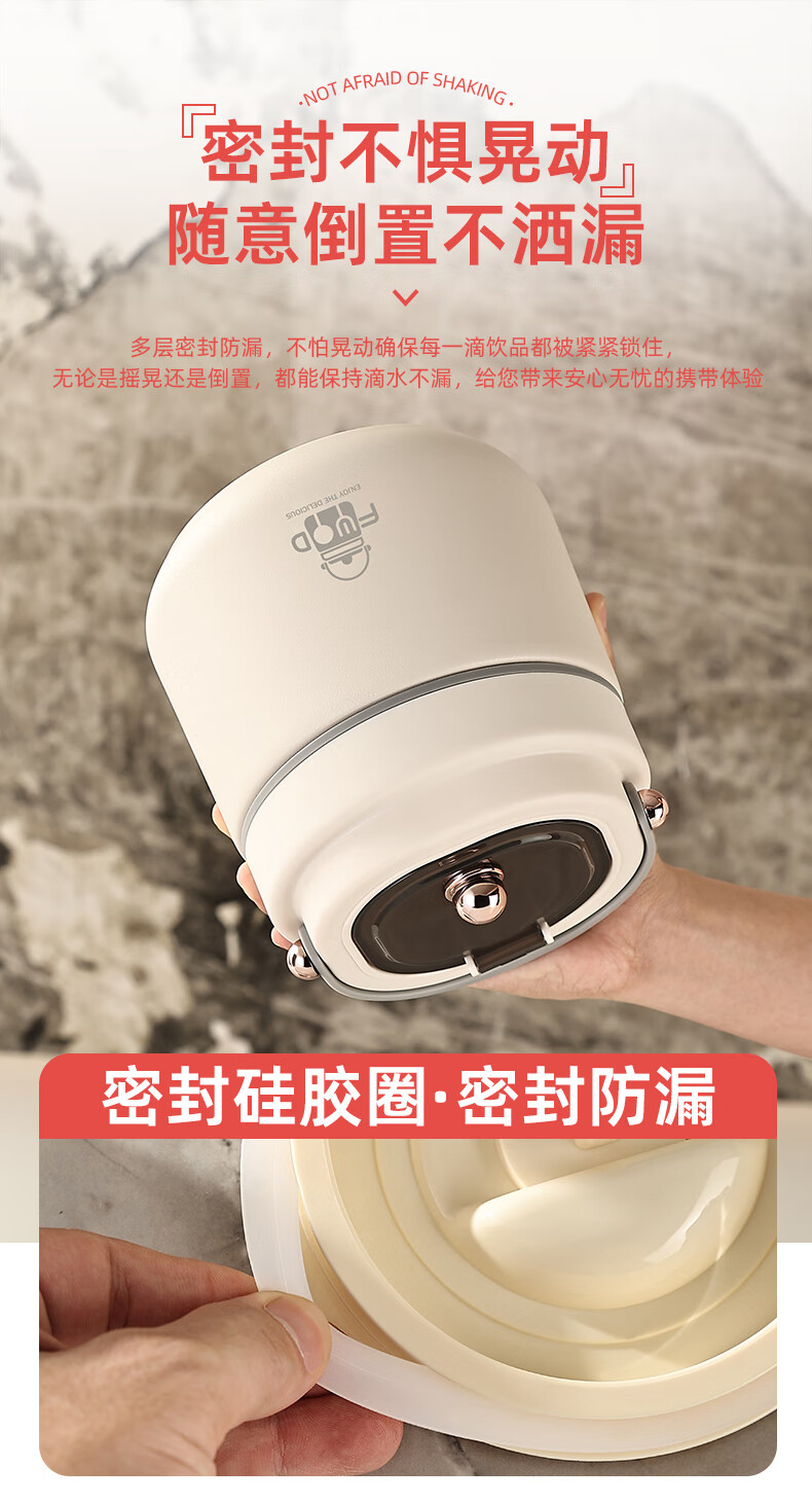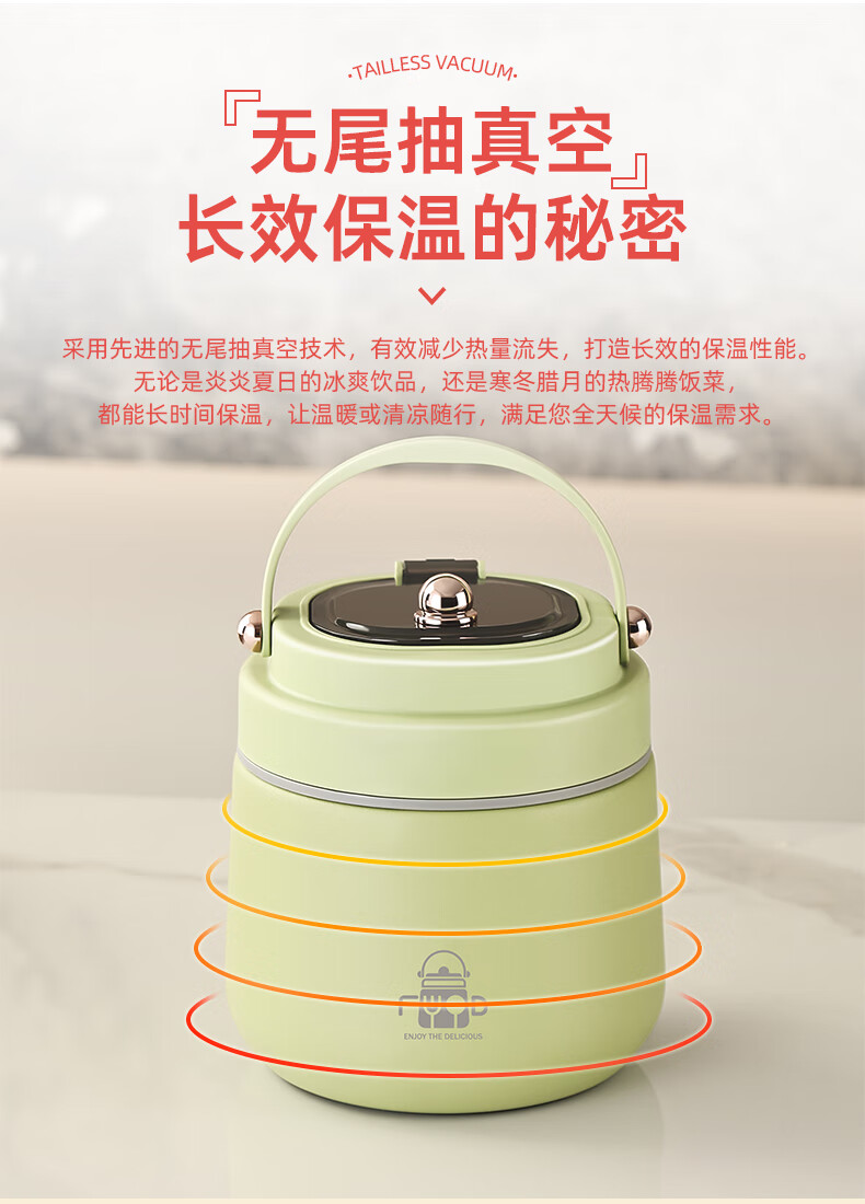 Tuojin Germany imported high-quality 304 stainless steel insulated lunch box for office workers with 24-hour extra-long bucket in winter, chubby white, free 304 folding chopsticks and spoon 1.4L