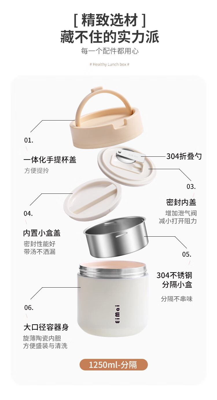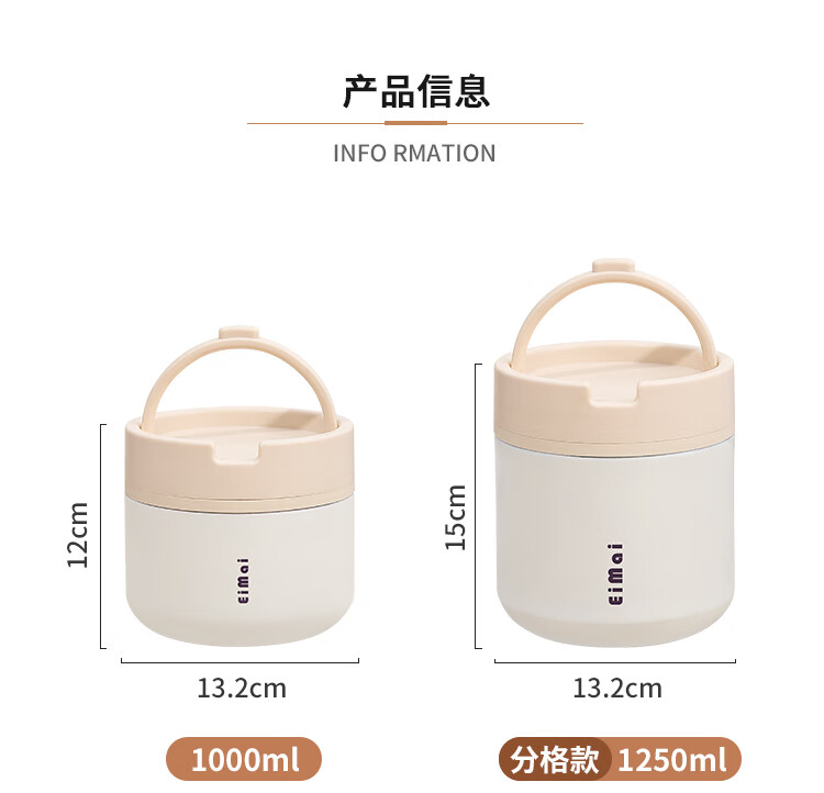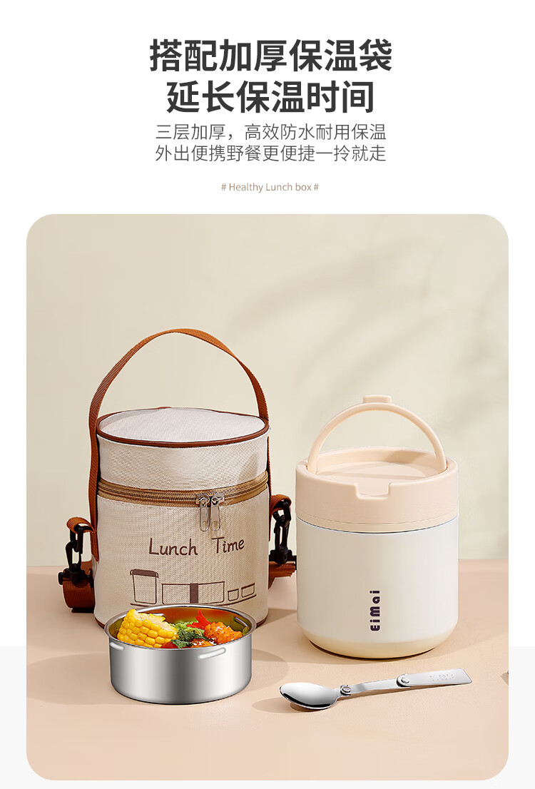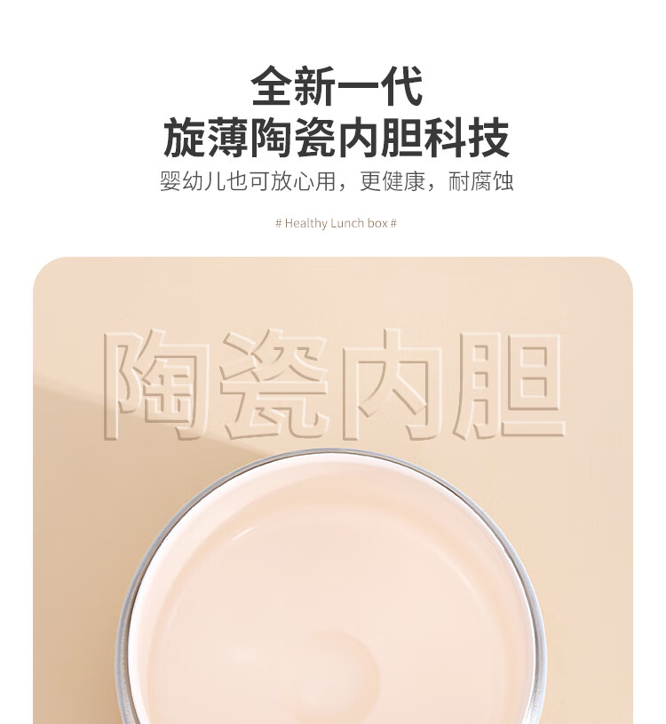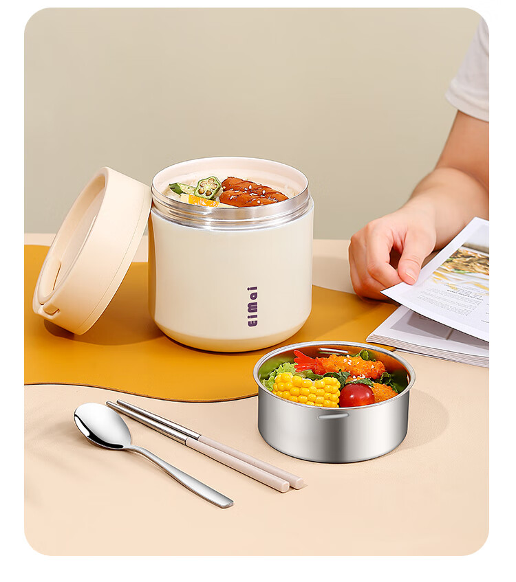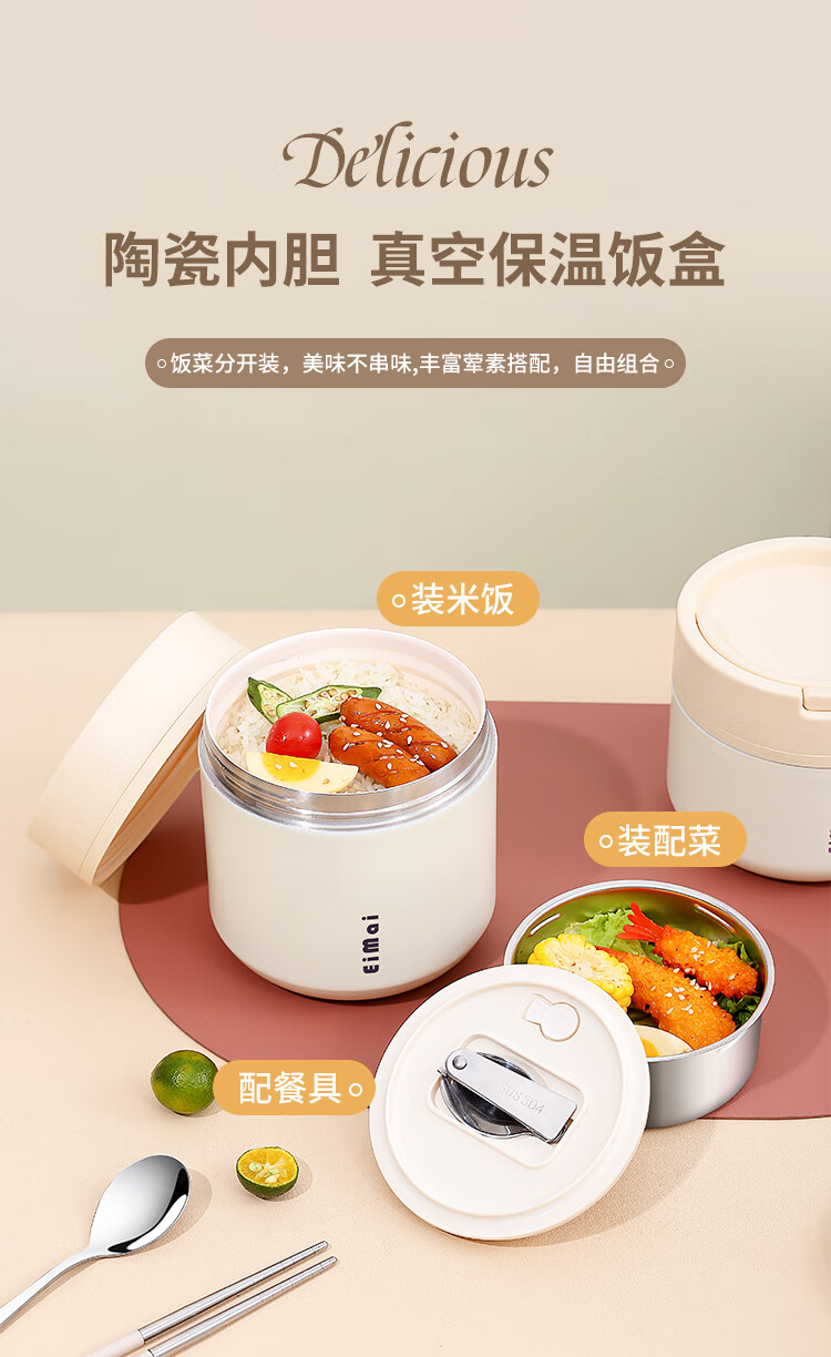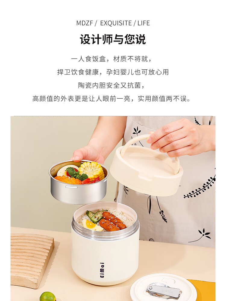 Tuojin imported quality ceramic liner insulated lunch box from Germany for office workers, insulated bucket, insulated bucket, small insulated box, large, upgraded, insulated, off-white, thickened, sealed, small size 1000ml