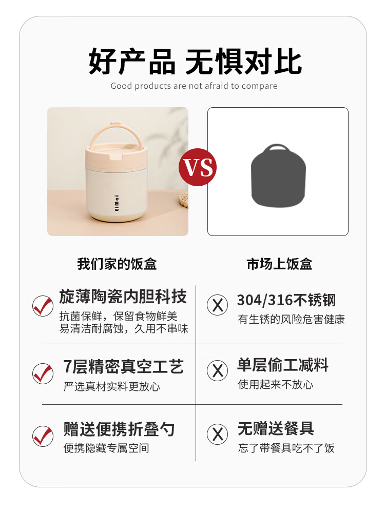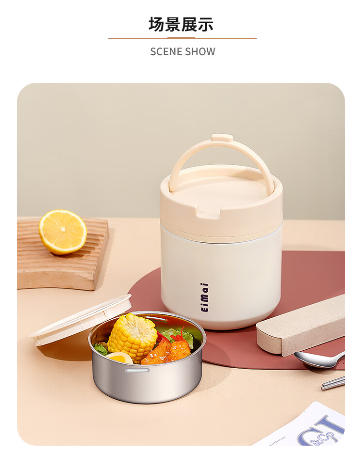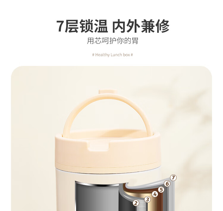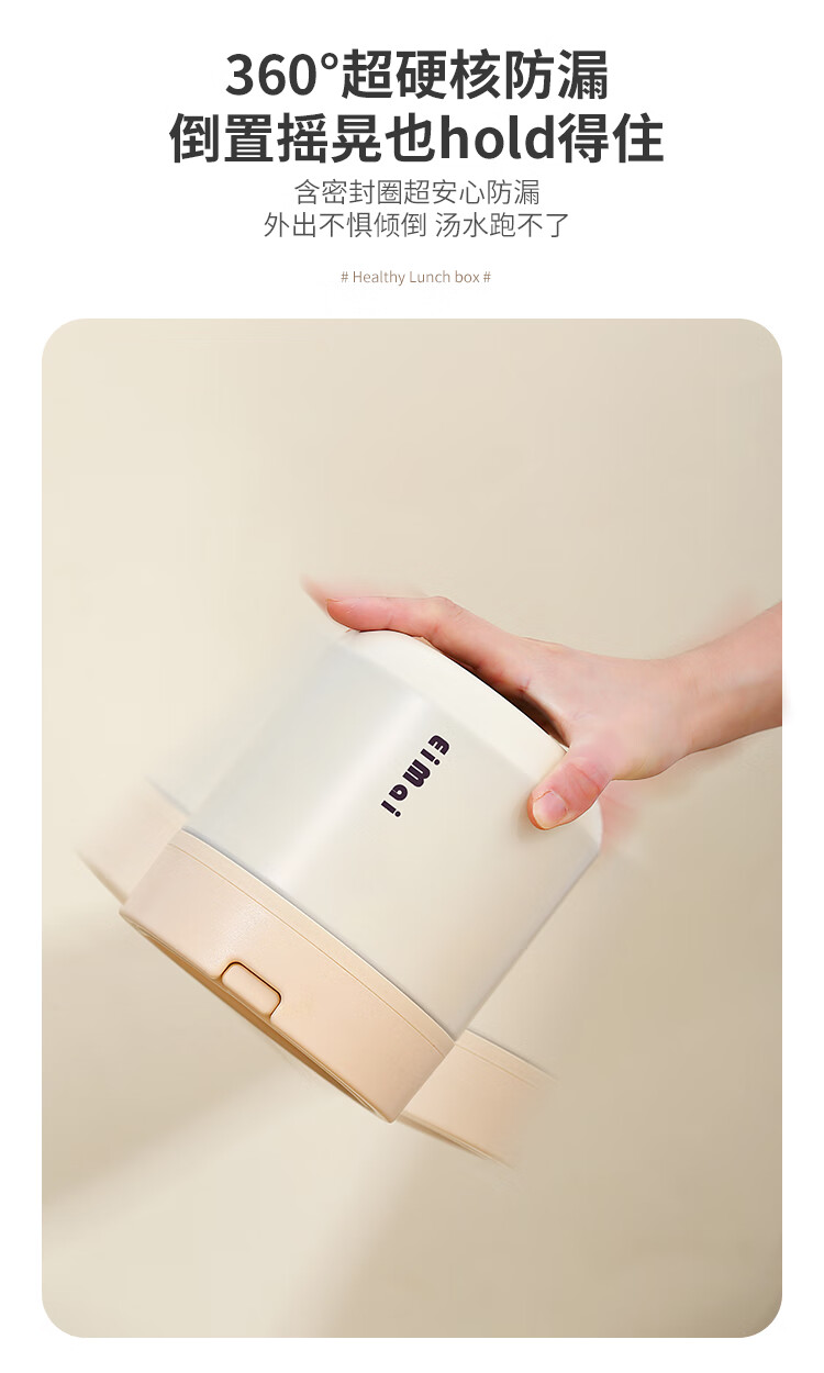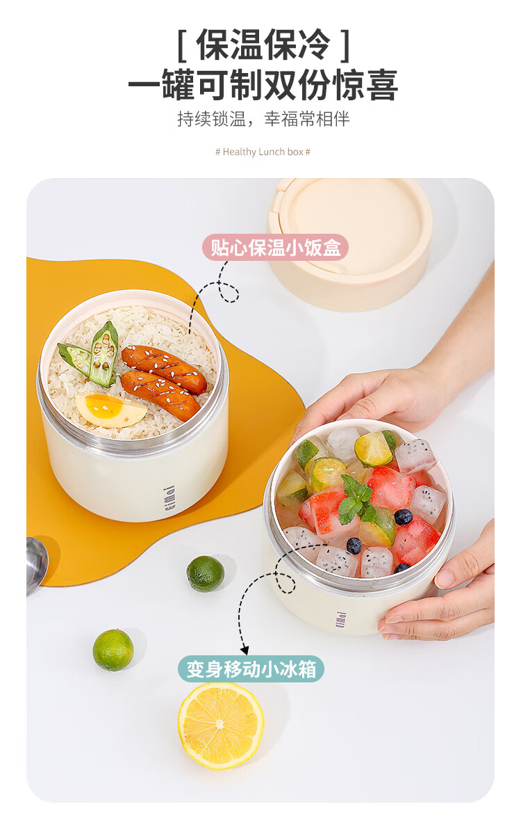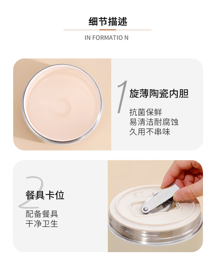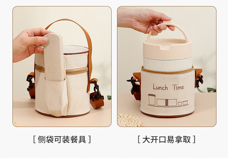 Tuojin imported quality ceramic liner insulated lunch box from Germany for office workers, insulated bucket, insulated bucket, small insulated box, large, upgraded, insulated, off-white, thickened, sealed, small size 1000ml