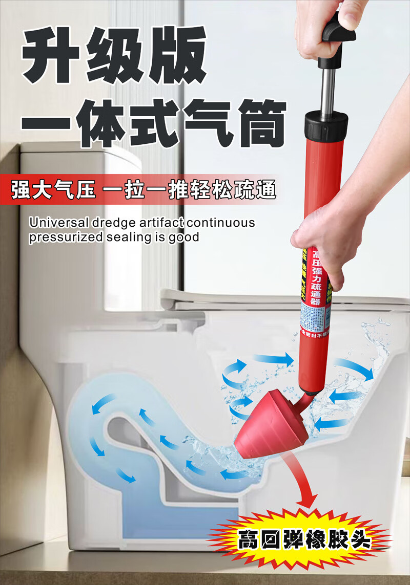 The dredging device connects the toilet pipe to the toilet and the pipe blocks the sewer. It sucks and clears the rubber head. Upgrade the rubber head.