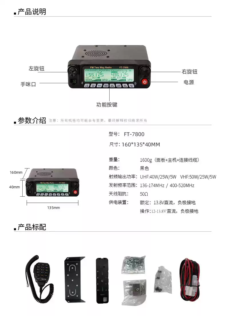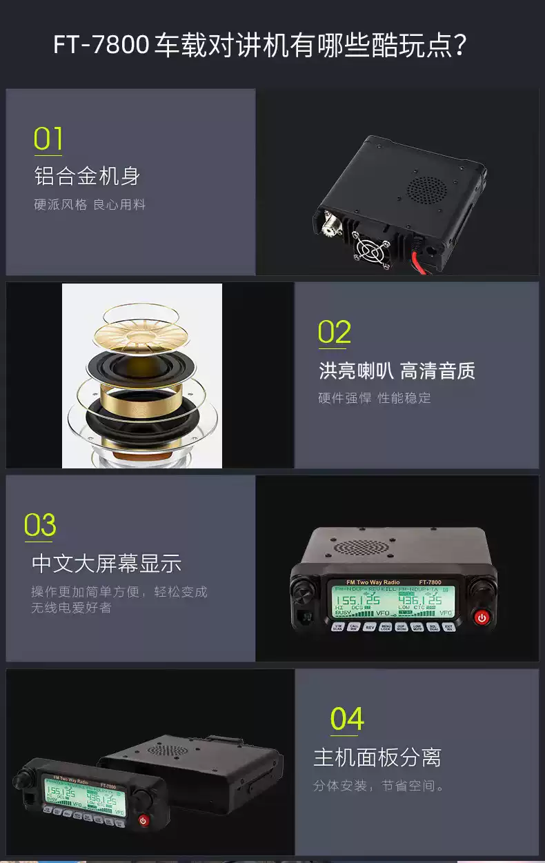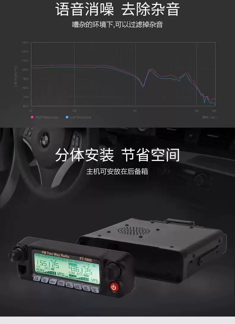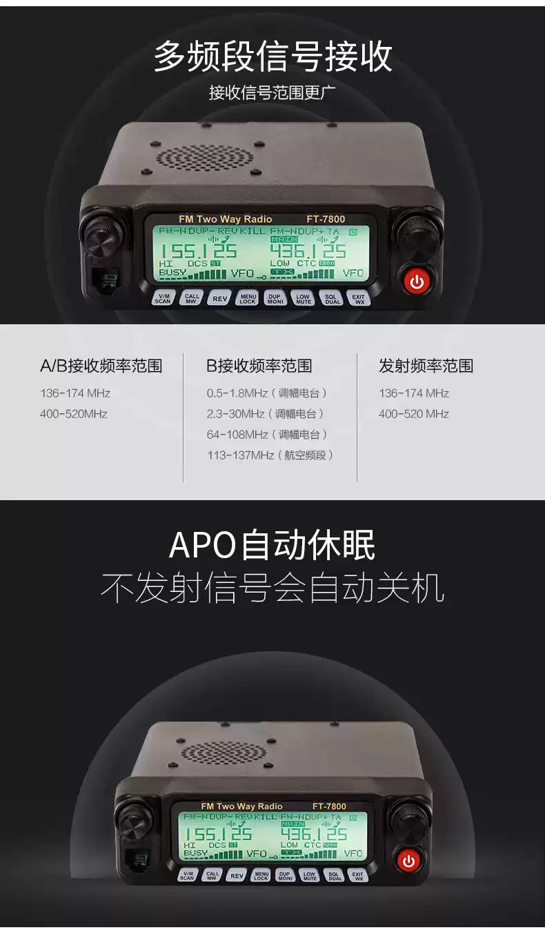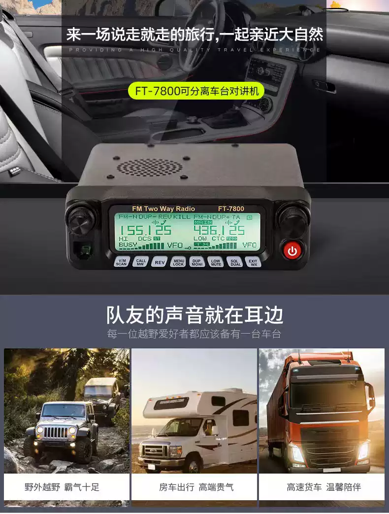Youxunda FT-7800 vehicle-mounted radio UV dual-stage dual-guard high-power radio Chinese self-driving travel split intercom standard + antenna + suction cup feeder + voltage reducer
