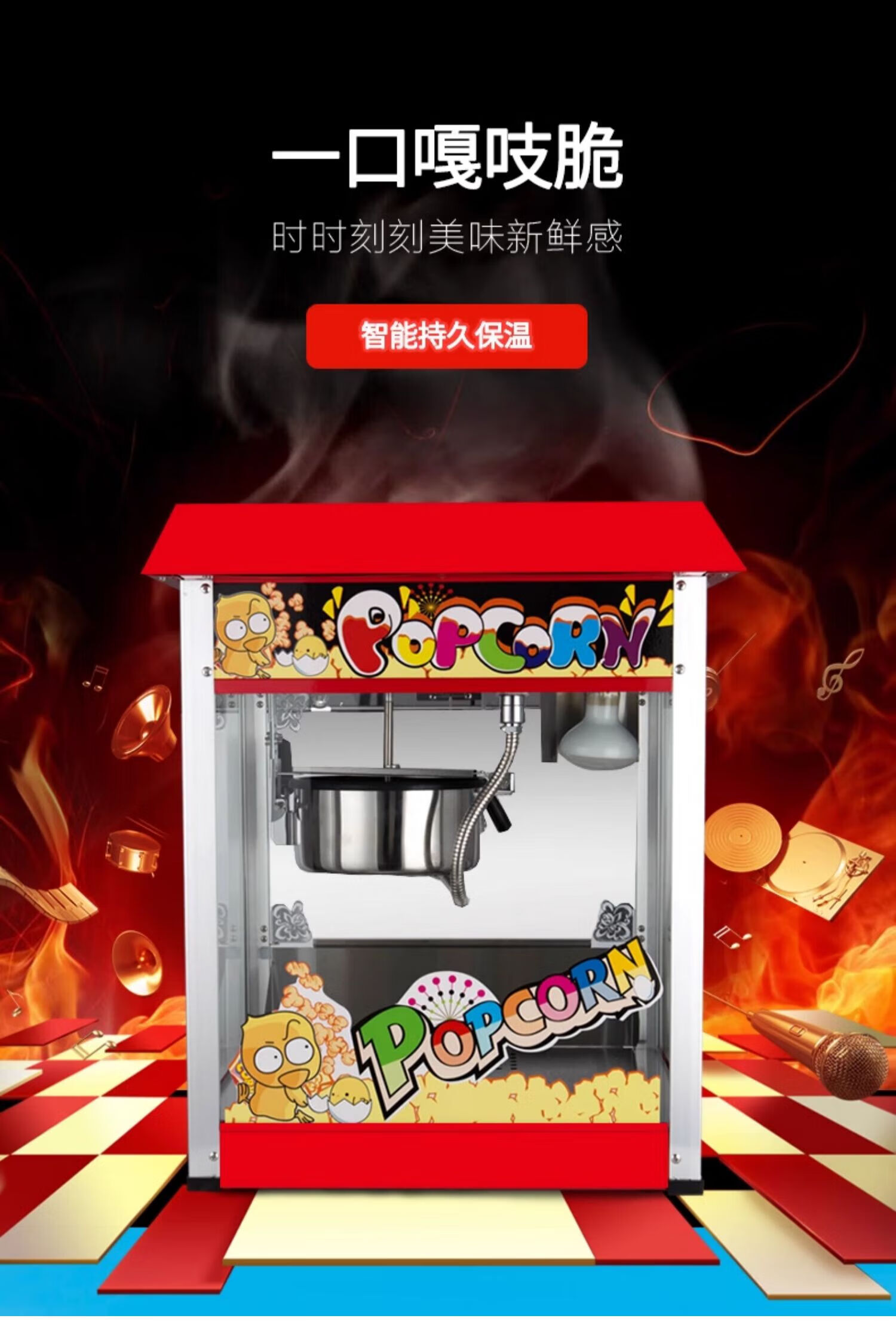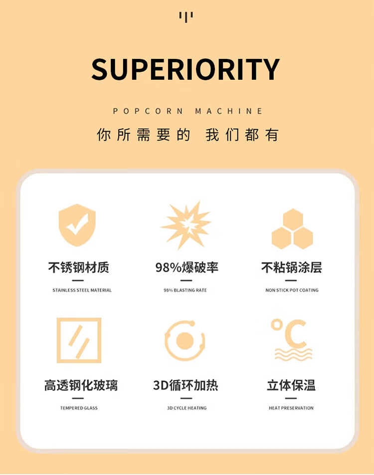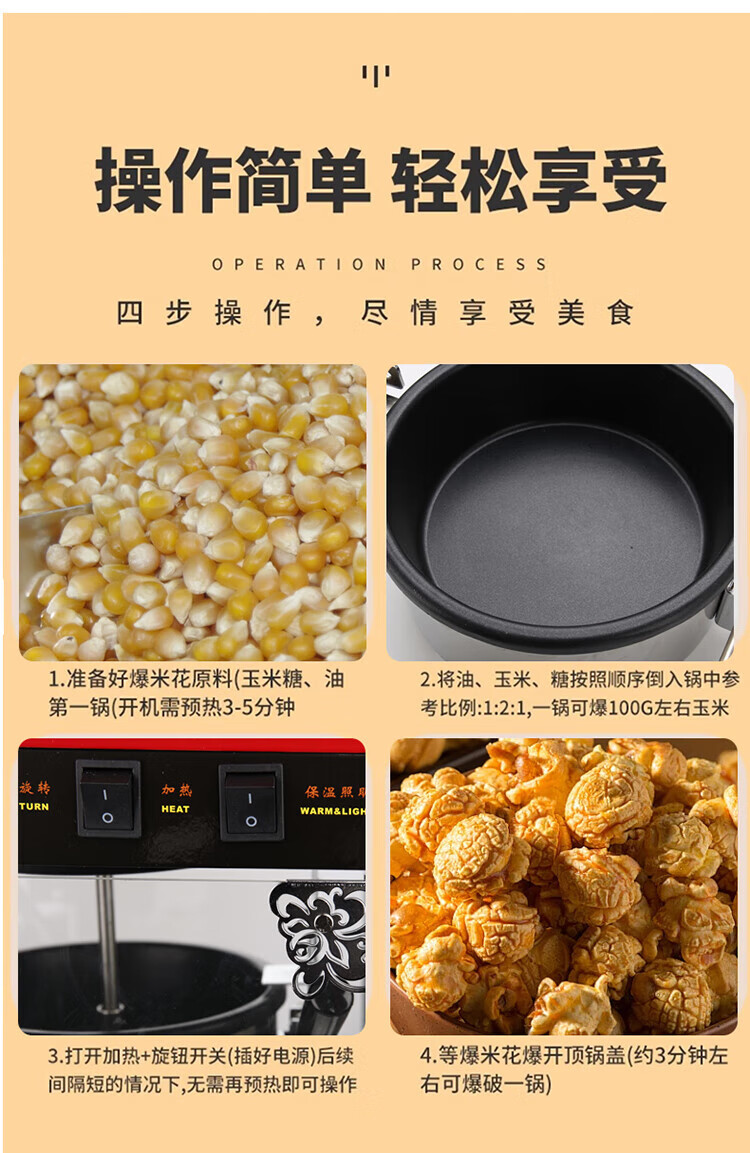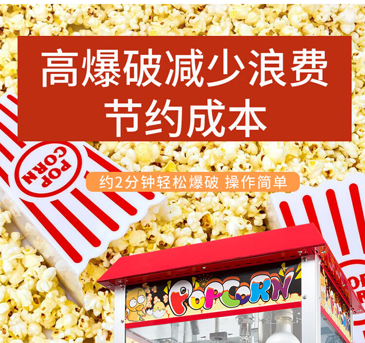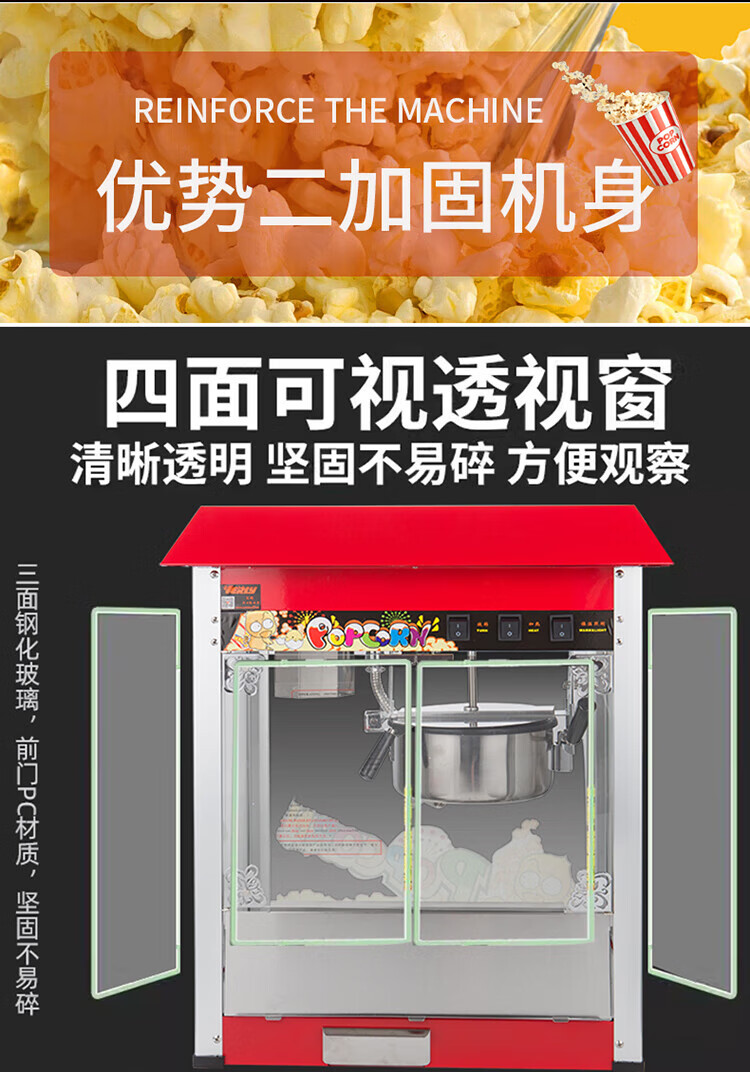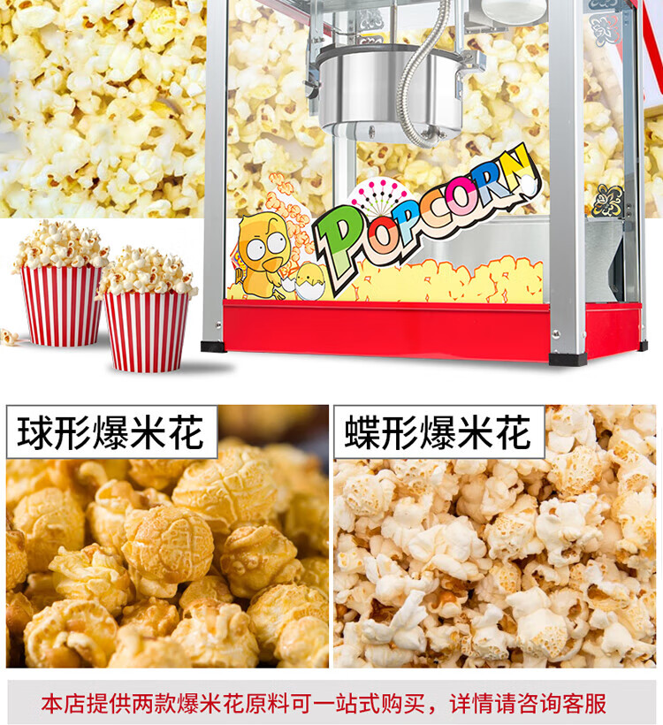 RSRDDY Huili popcorn machine commercial fully automatic popcorn spherical popcorn machine 1608 popcorn machine commercial fashionable flat-top popcorn machine (free 30 sets of raw materials +