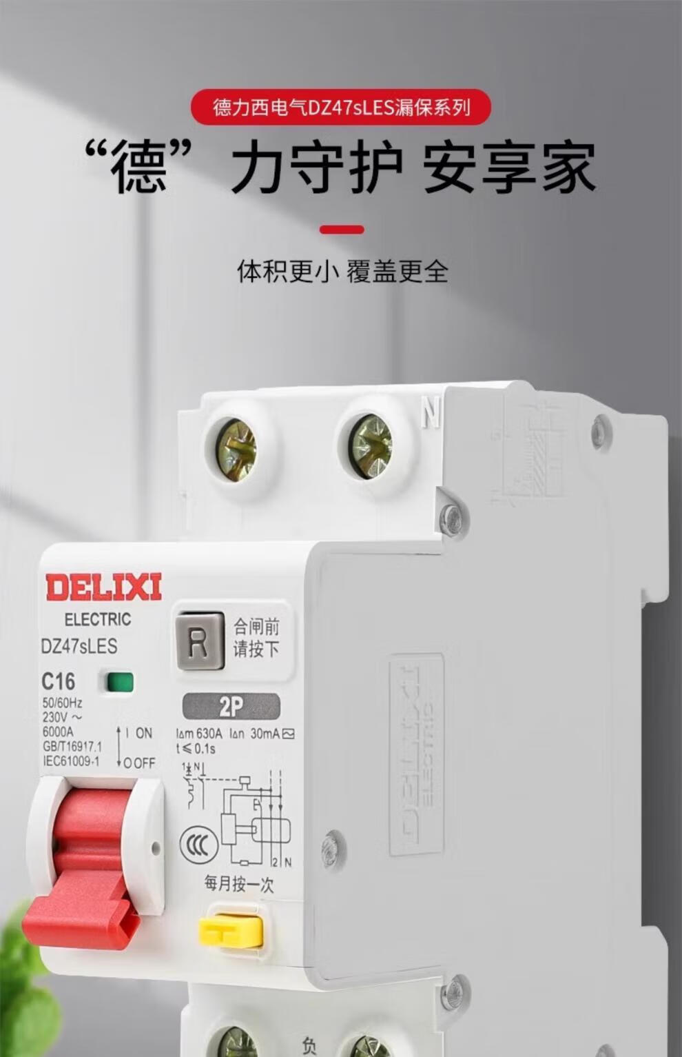 Delixi small leakage protection circuit breaker switch household small volume leakage protection 1P+N 2P32A 16A 1P+N