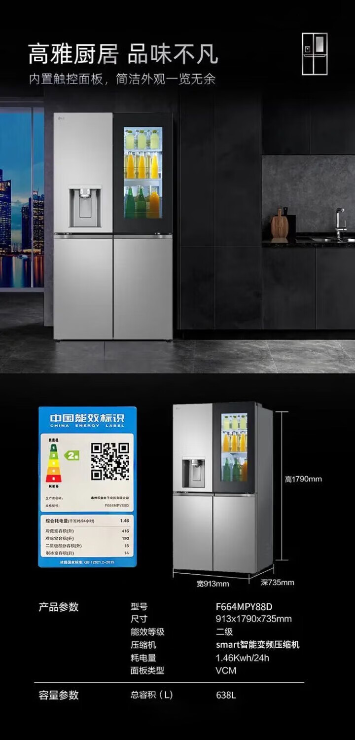 LG F664MPY88D/78B/18B/87D Fully Automatic Ice Hockey Bar Knock Knock Household Refrigerator S653MPY33D Perspective Window Knock Knock + Rotating Ice Box 5