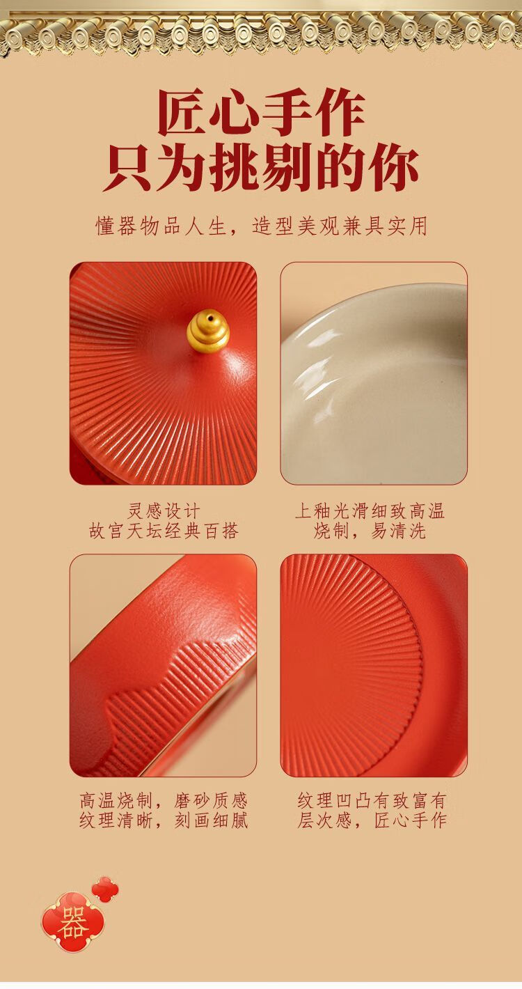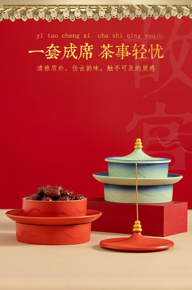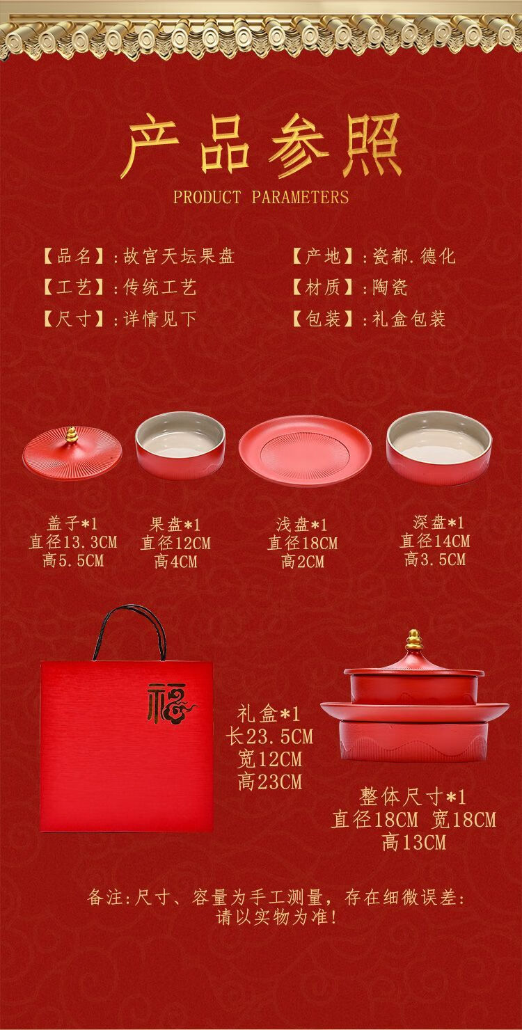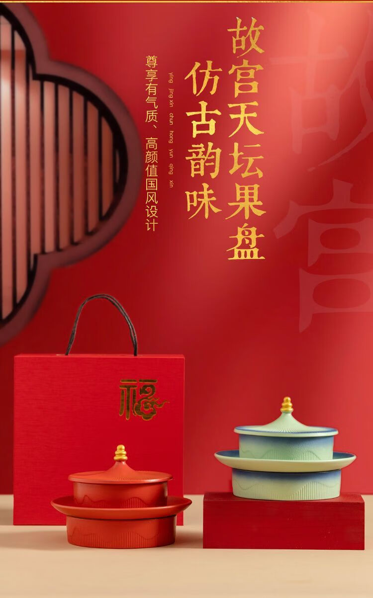 Shi Jin Fruit Plate, the joy of moving to the Forbidden City, the trendy fruit plate, household ceramic refreshment plate, dried fruit snacks, snack plate, wedding presentation plate, the Forbidden City Temple of Heaven Fruit Plate (Kiln Green)