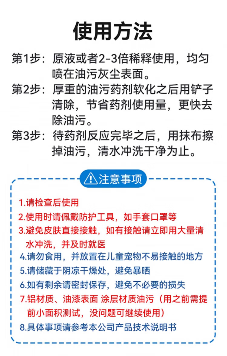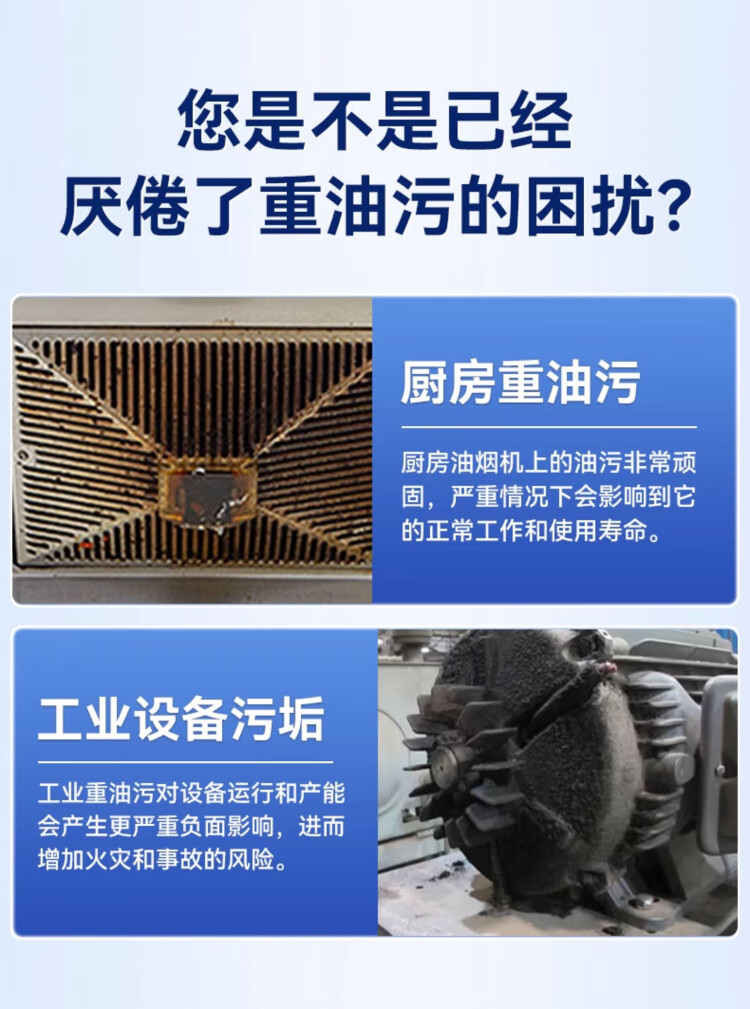 Workshop heavy oil stain cleaning agent, industrial machine tool machinery, powerful degreasing agent, hotel kitchen range hood degreasing cleaner, floor oil stain cleaning agent, special research model