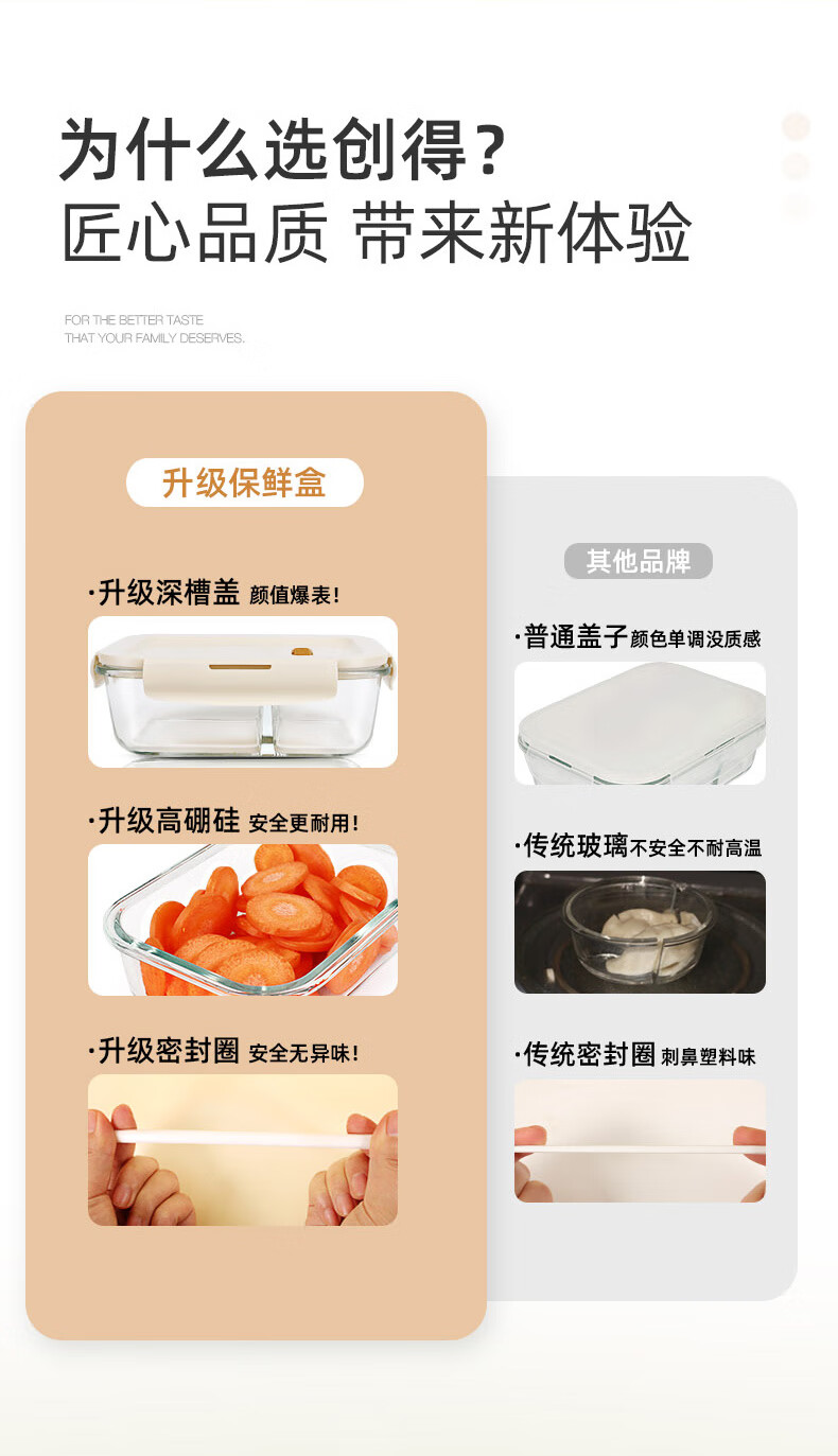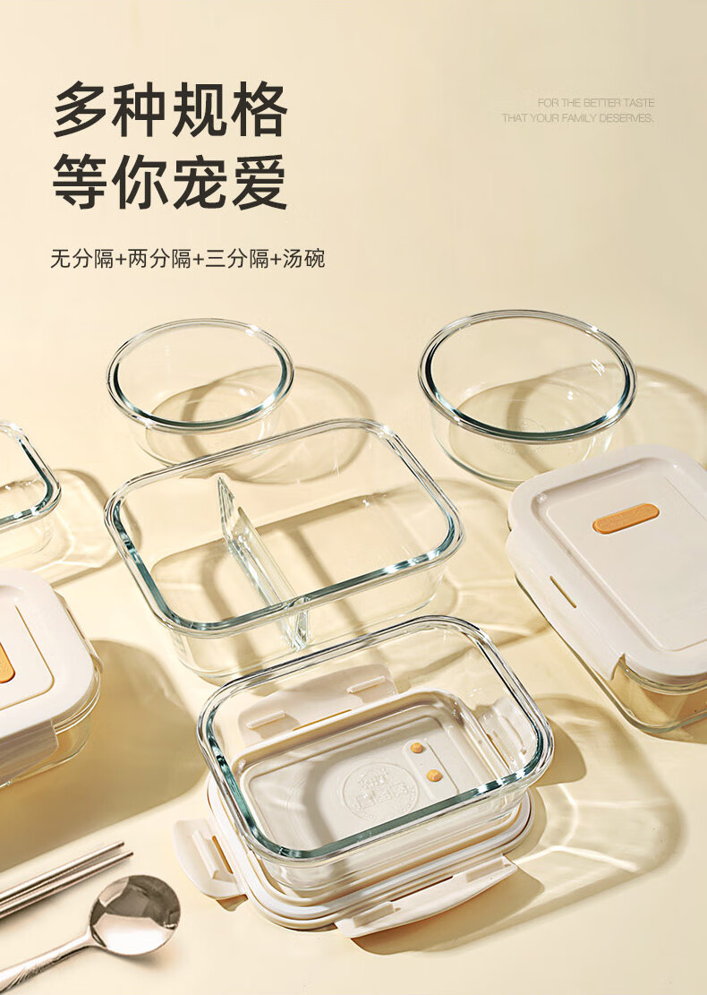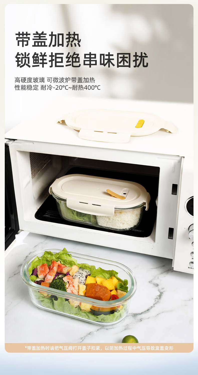 Tuojin Japan imported quality glass lunch box for office workers with lunch box bowl microwave heating special lunch box divider cream white long 700ml