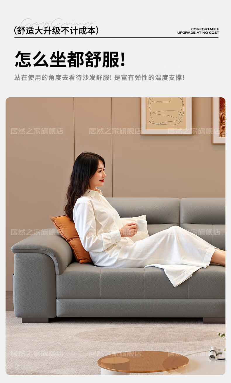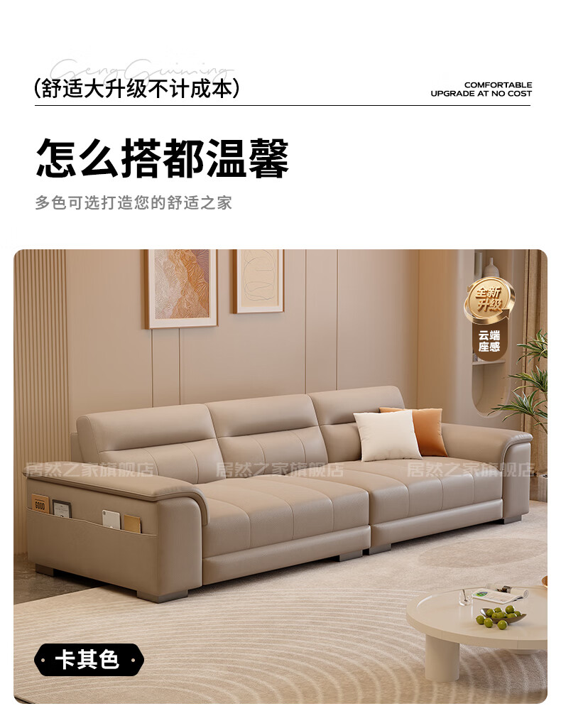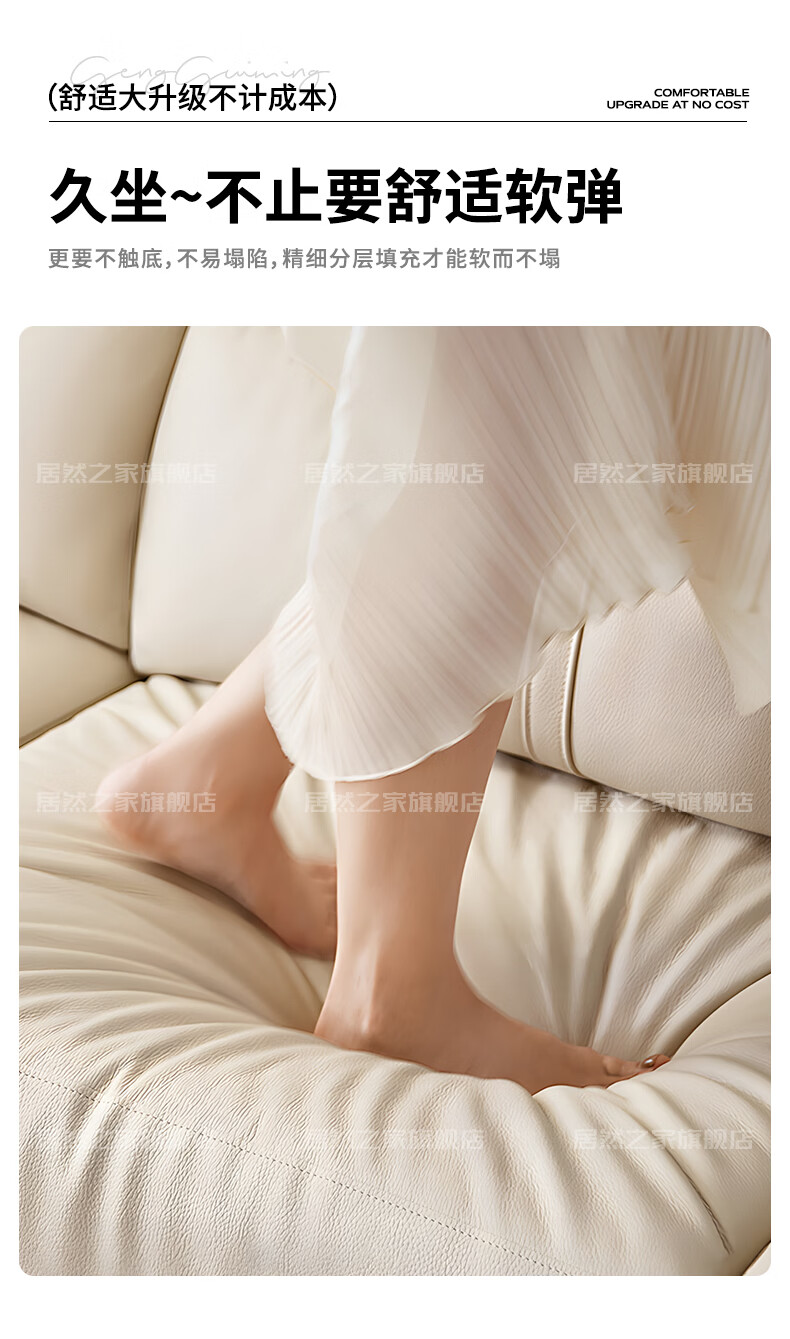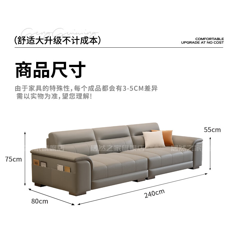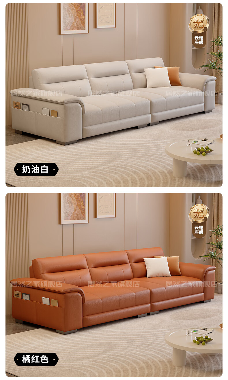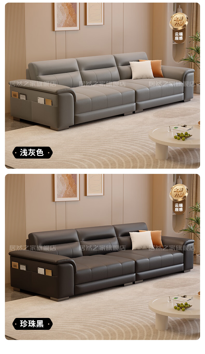 VPLAN Easy Home New First-layer Cowhide Genuine Leather Sofa Home Small Apartment Living Room Straight-row Leather Sofa Furniture 2.1 Meters Three-Seater Flagship Edition - Cat Scratch Leather Violet + Ordinary Sponge