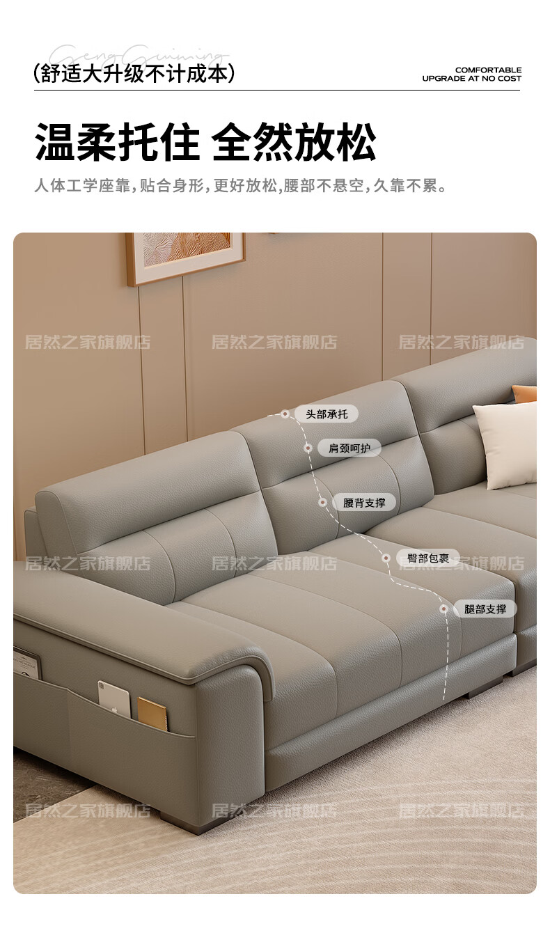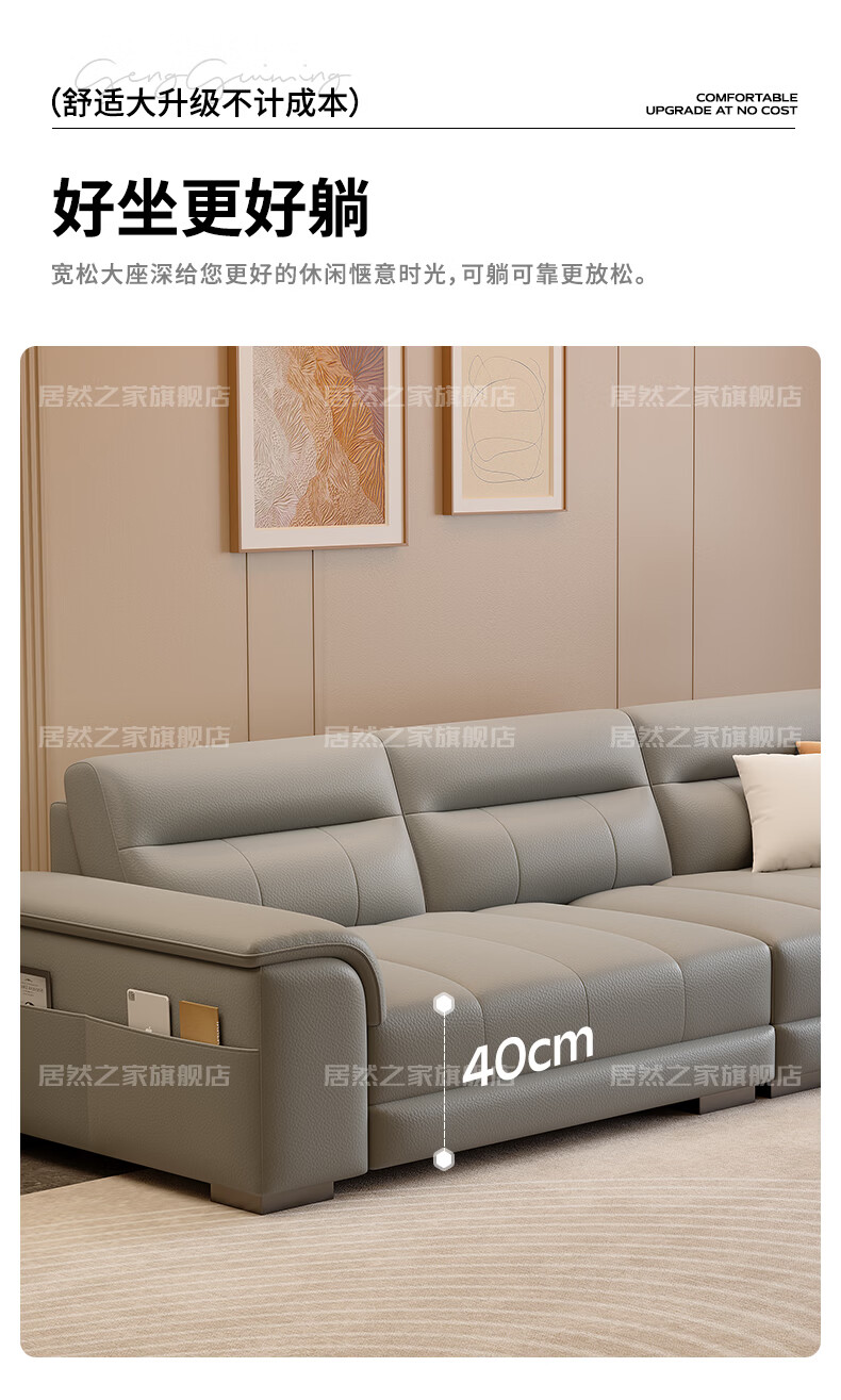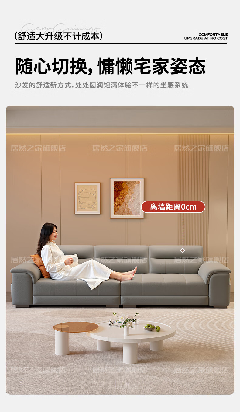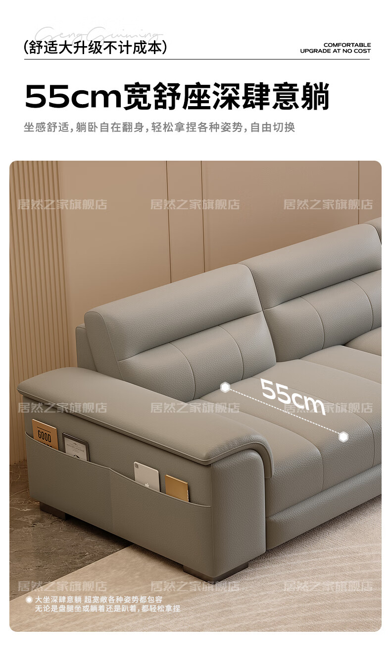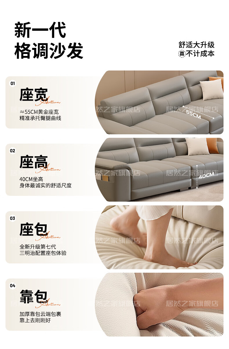 VPLAN Easy Home New First-layer Cowhide Genuine Leather Sofa Home Small Apartment Living Room Straight-row Leather Sofa Furniture 2.1 Meters Three-Seater Flagship Edition - Cat Scratch Leather Violet + Ordinary Sponge