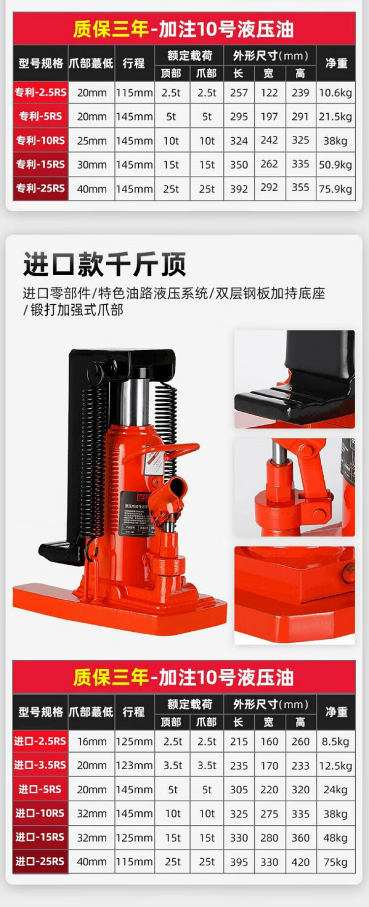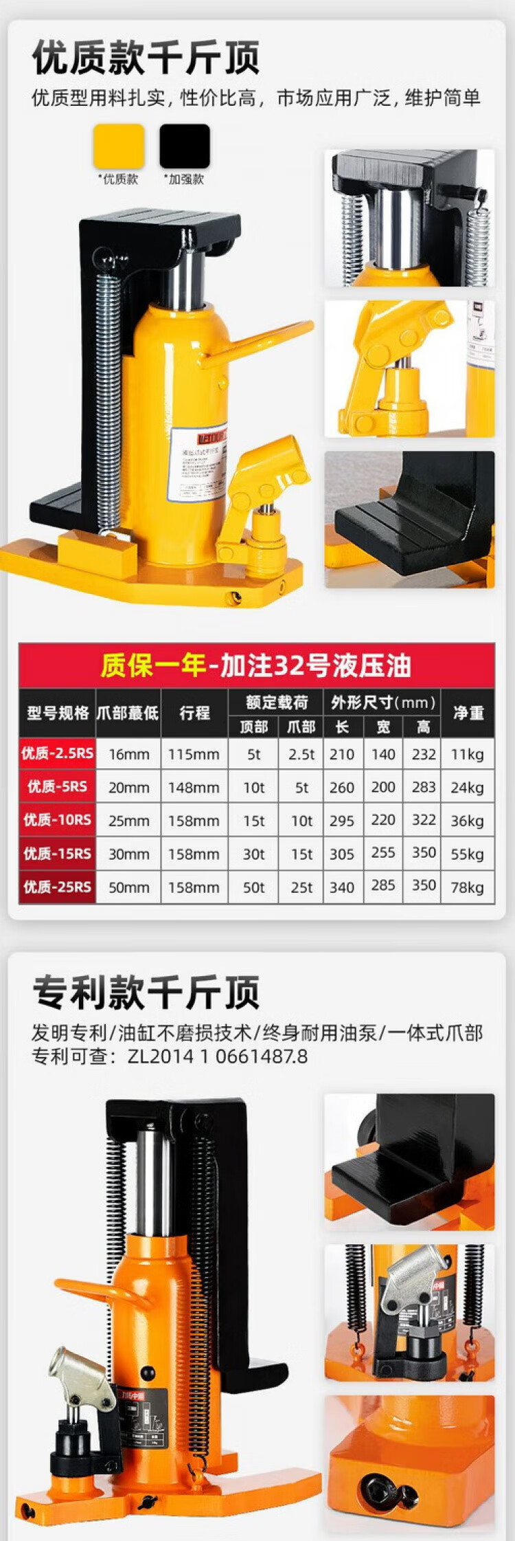 OLOEY Medium Claw Hydraulic Jack Duckbill Vertical Cross Top 10 Ton 20 Hydraulic Heavy Duty Low Starting National Standard High Performance Claw 2.5 Ton Top 5 Ton_High Cost-Effective Price