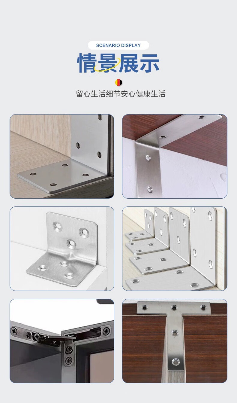 Stainless steel corner code 90 degree right angle fixator triangle iron support frame connecting piece L-shaped shelf bracket t corner code-20*20*2 (including screws)-5 pieces (opp bag)