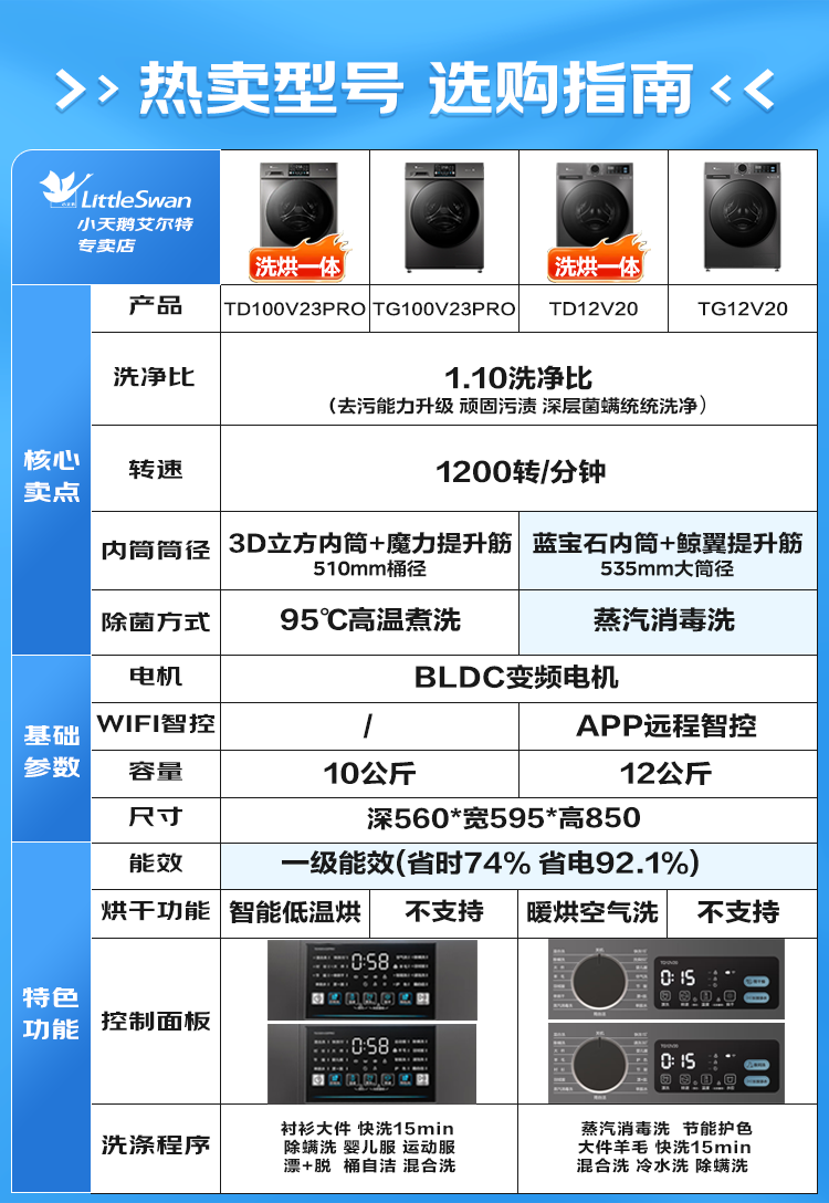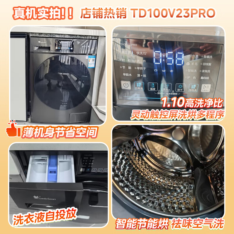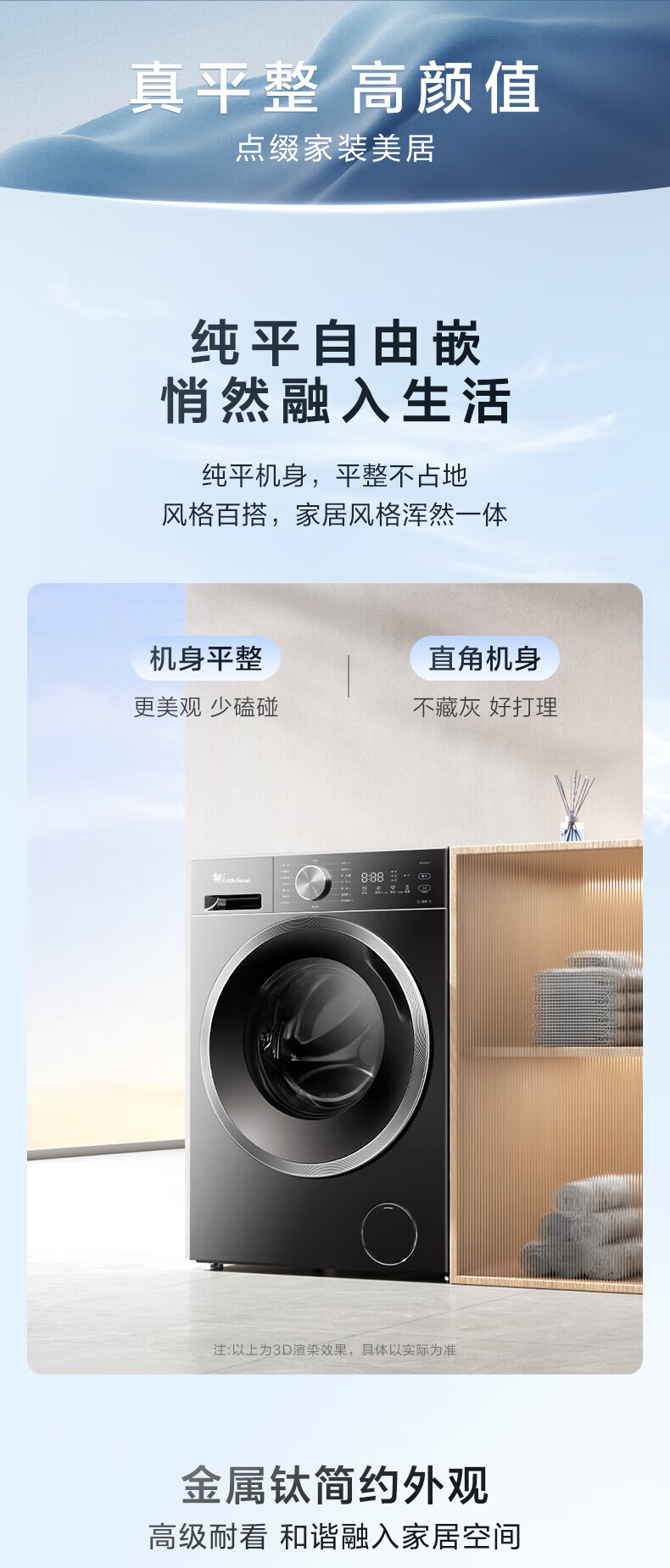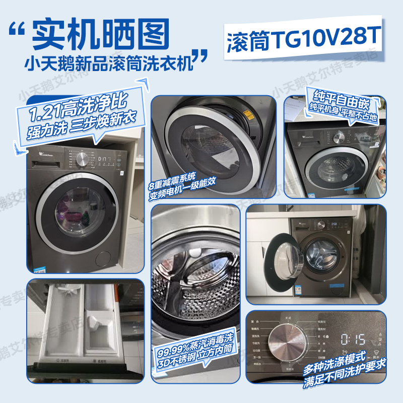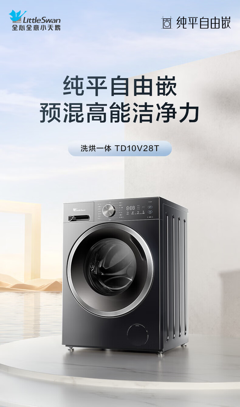 Little Swan (LittleSwan) drum washing machine fully automatic state subsidy household 10/12 kg single wash/with drying all-in-one washing and drying machine down jacket washing first-level energy efficiency trade-in 10 kg with drying V28T|flat screen free embedded +1.21 wash ratio