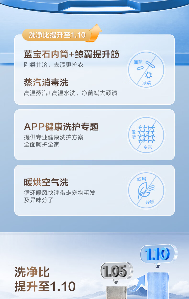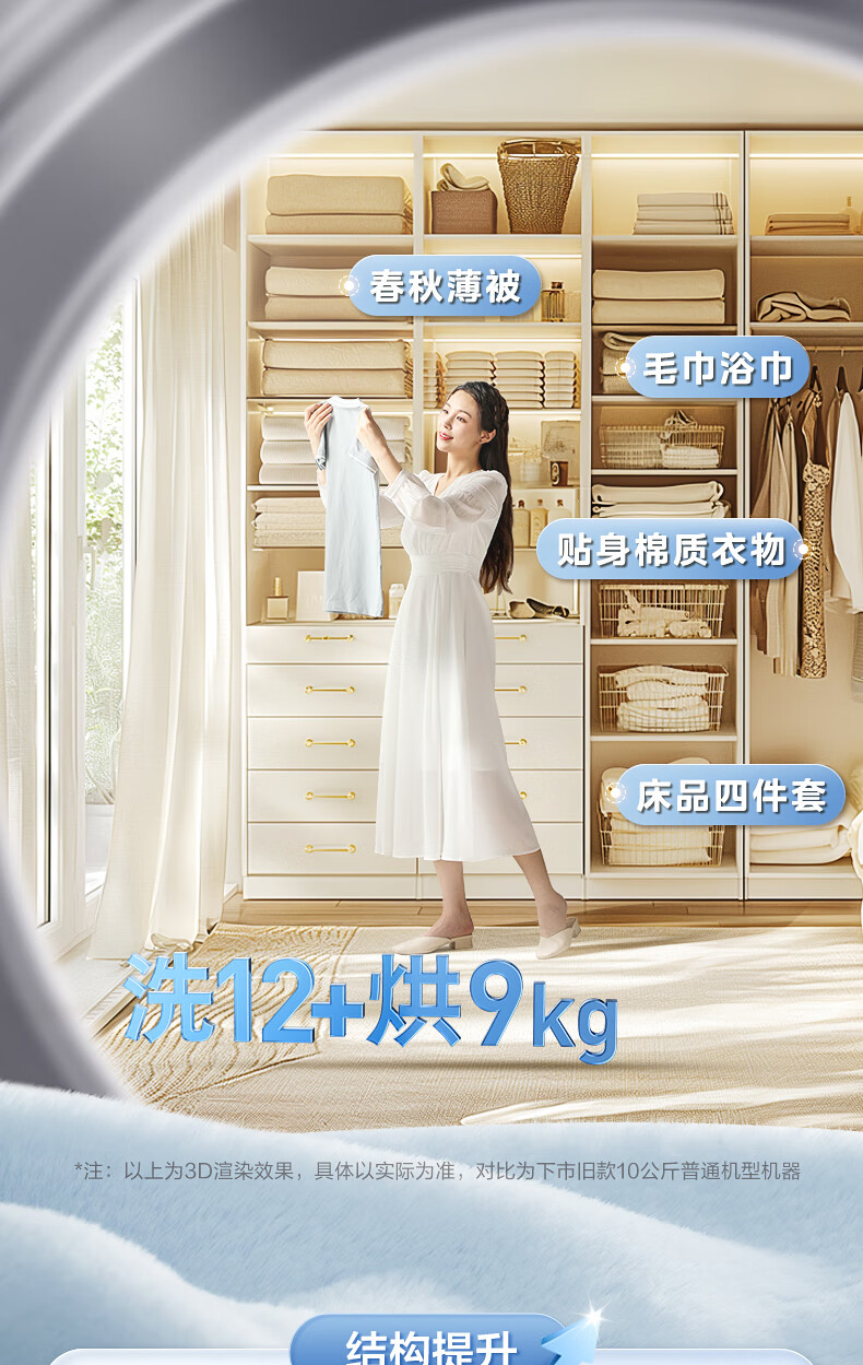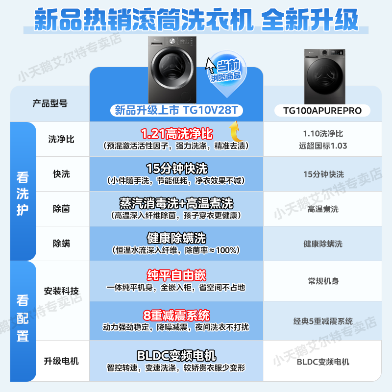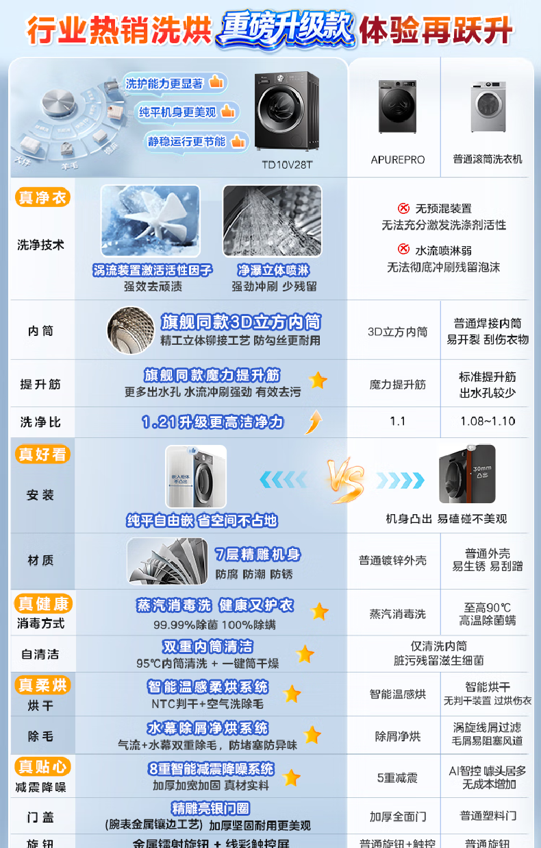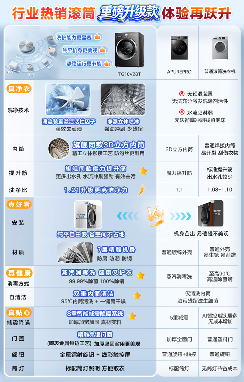 Little Swan (LittleSwan) drum washing machine fully automatic state subsidy household 10/12 kg single wash/with drying all-in-one washing and drying machine down jacket washing first-level energy efficiency trade-in 10 kg with drying V28T|flat screen free embedded +1.21 wash ratio