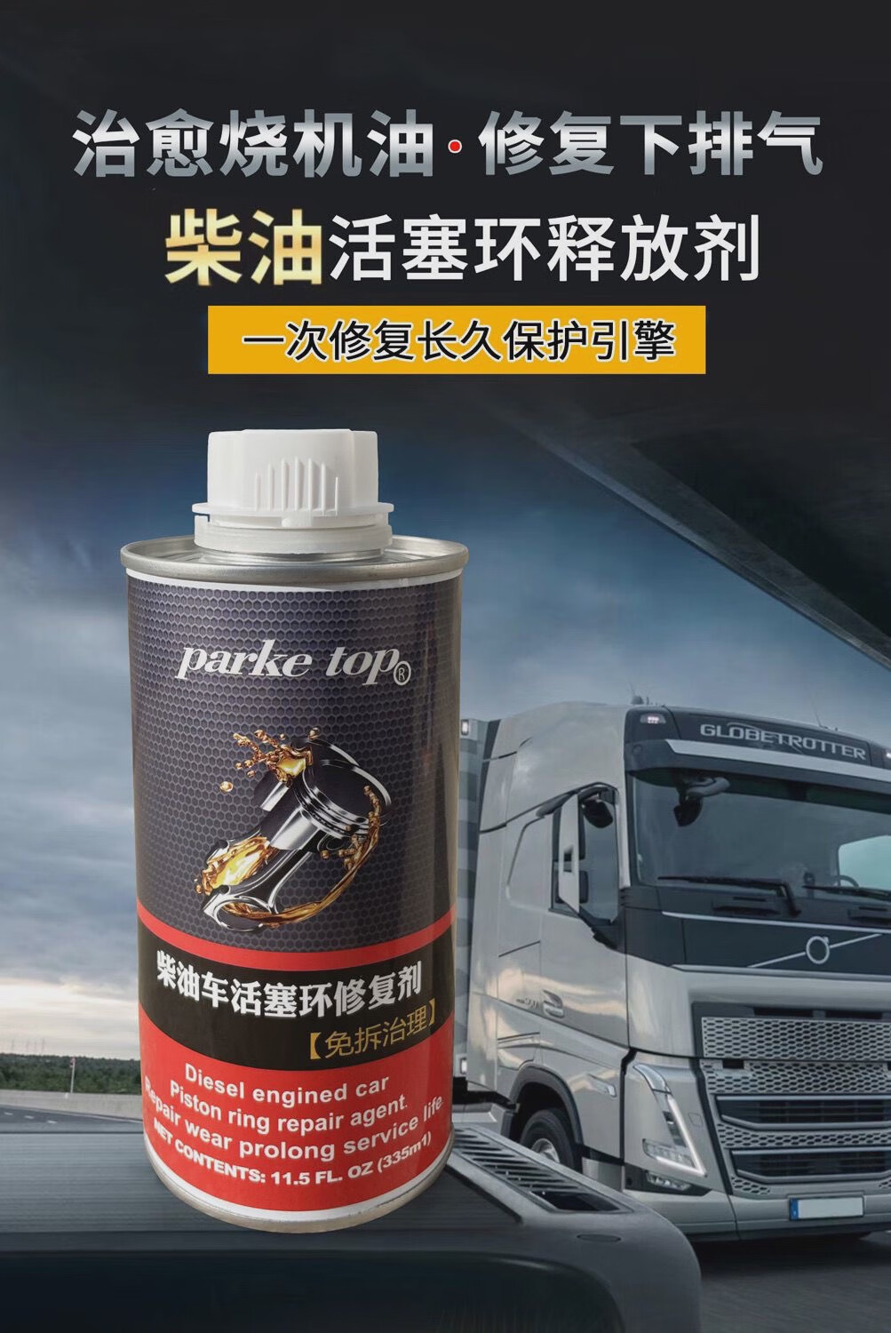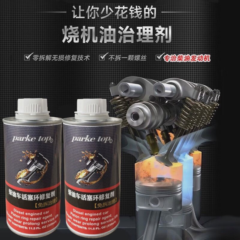 Parketop diesel vehicle piston ring repair agent treats exhaust gas cleaning and carbon deposit repair under burning oil. Dual treatment set piston ring + oil seal repair