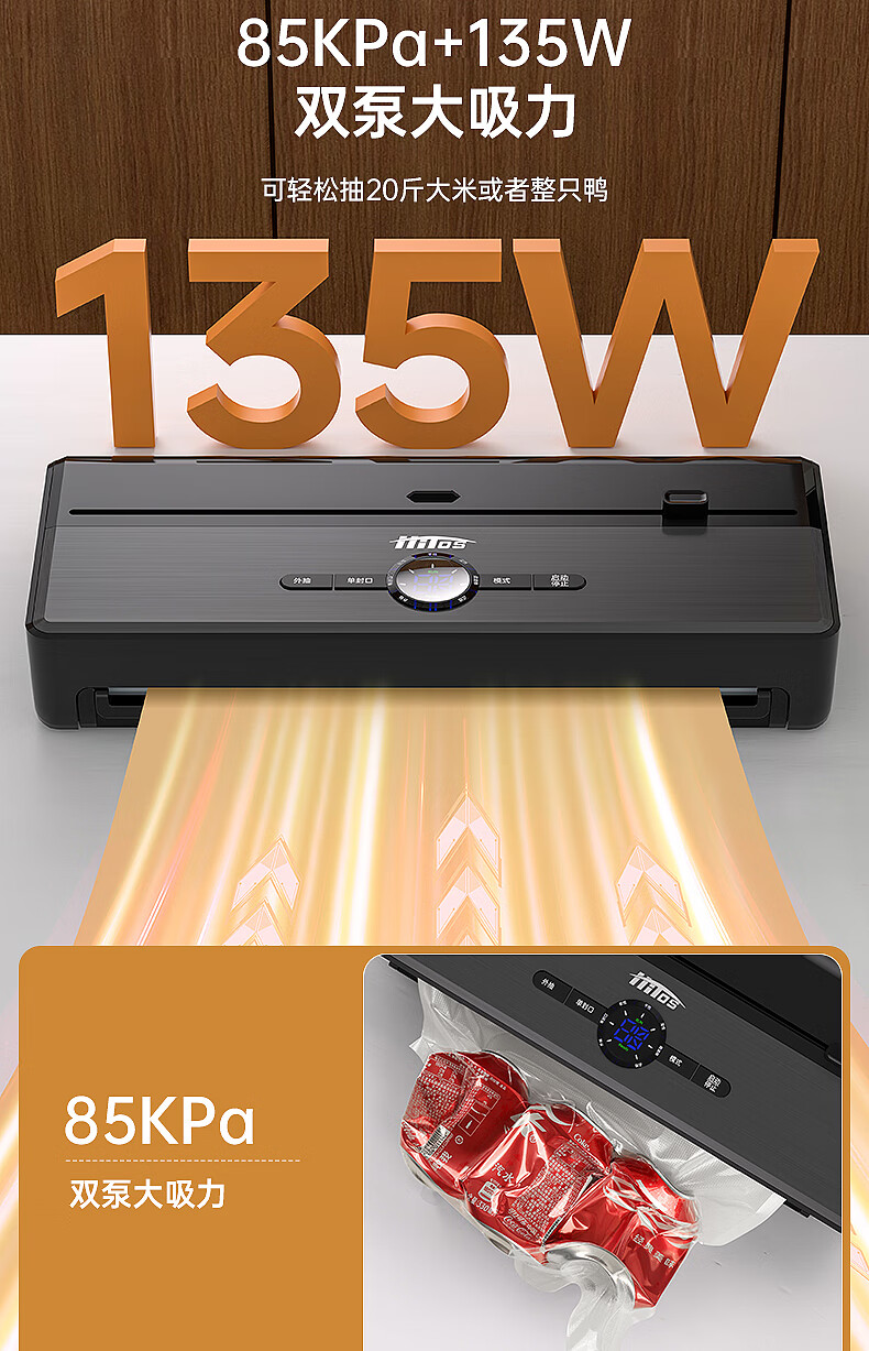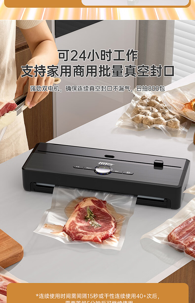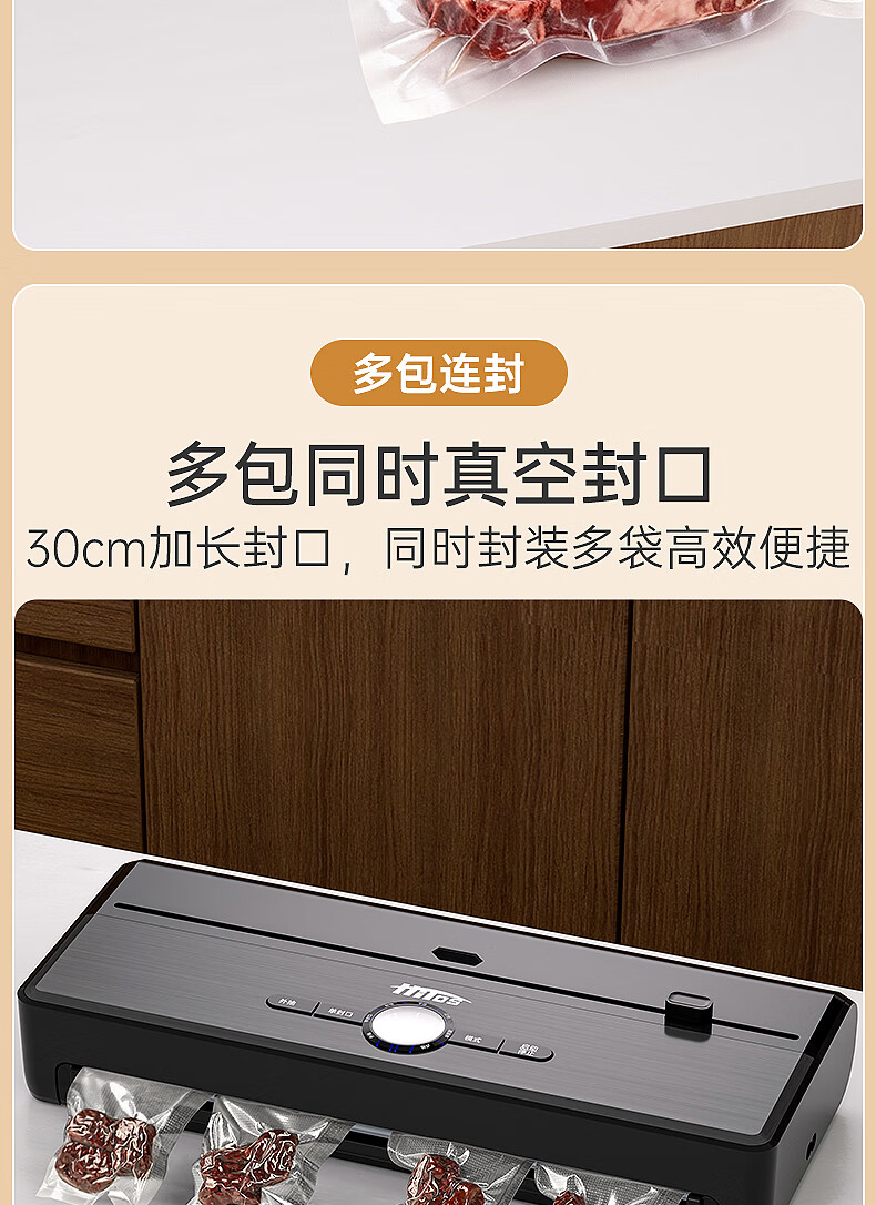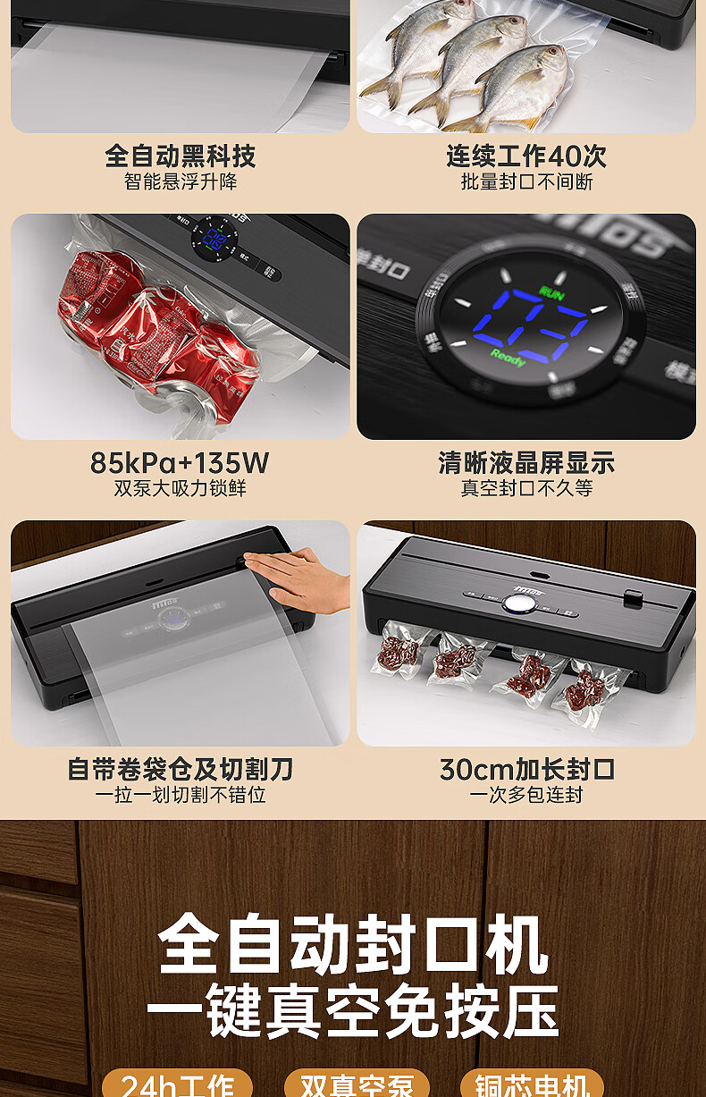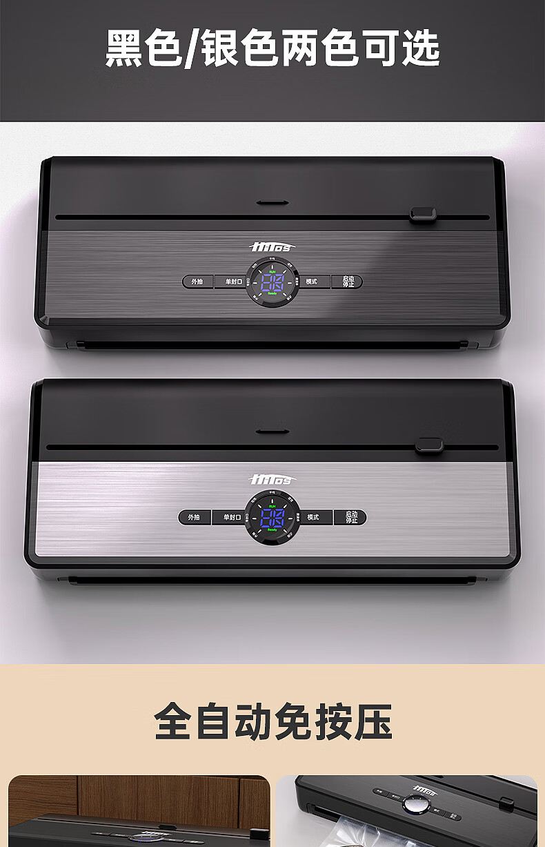 HITOS vacuum compressor sealing machine household fully automatic plastic sealing machine vacuum machine food packaging all-in-one machine commercial wet and dry use/press-free one-button vacuum sealing silver double-pump copper core vacuum machine + 1 roll bag + 5 piece bag 30cm