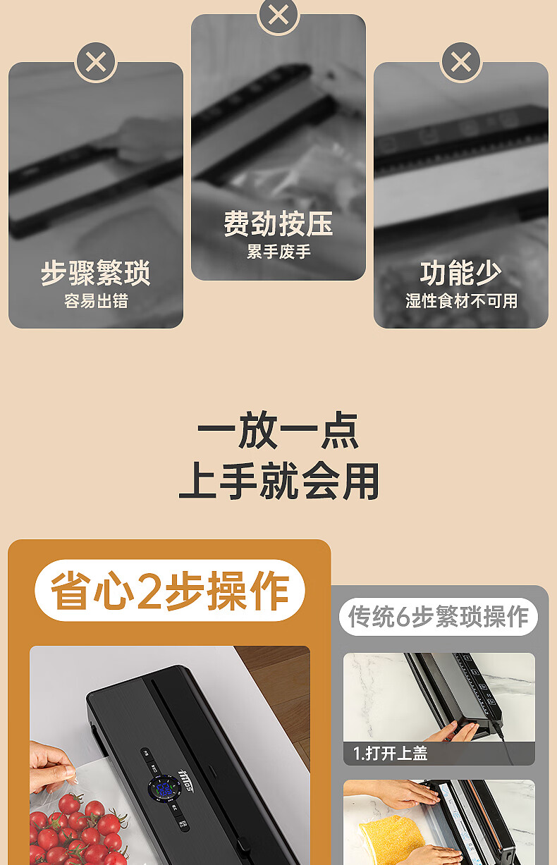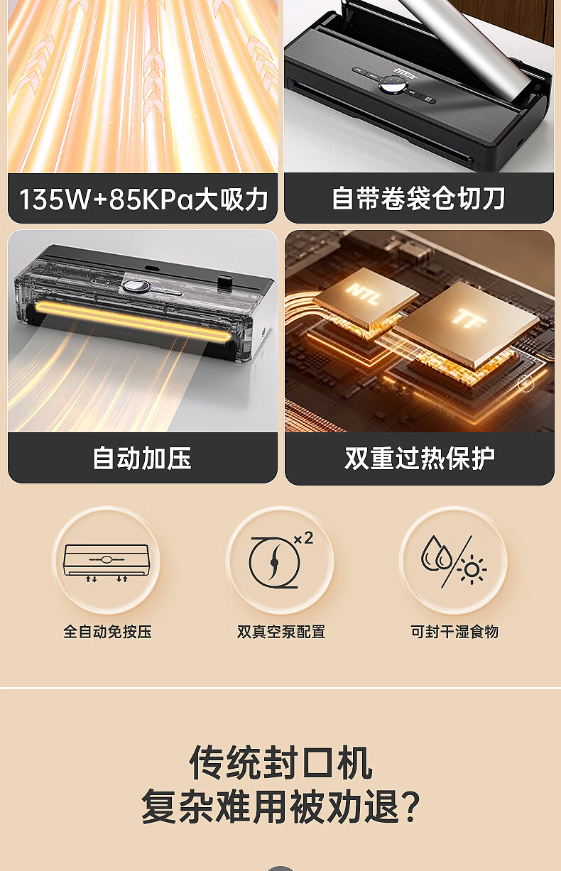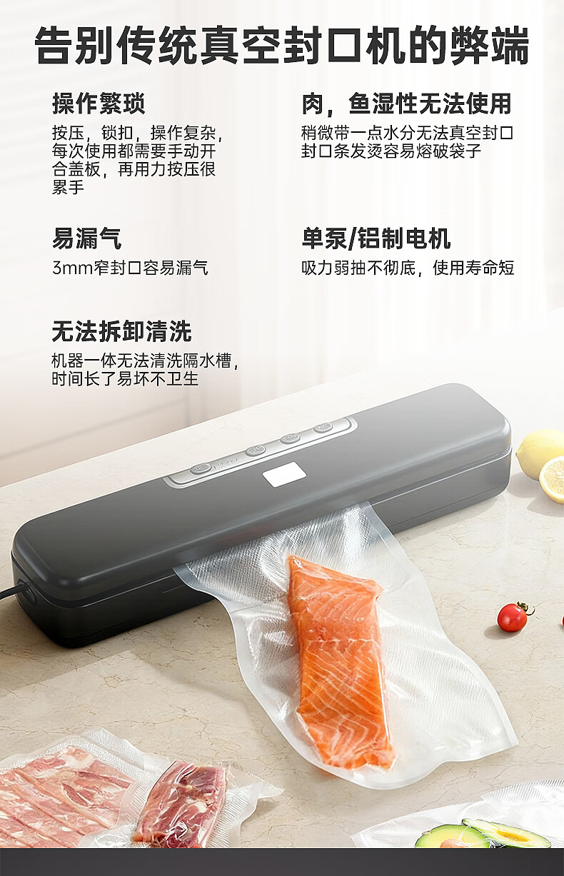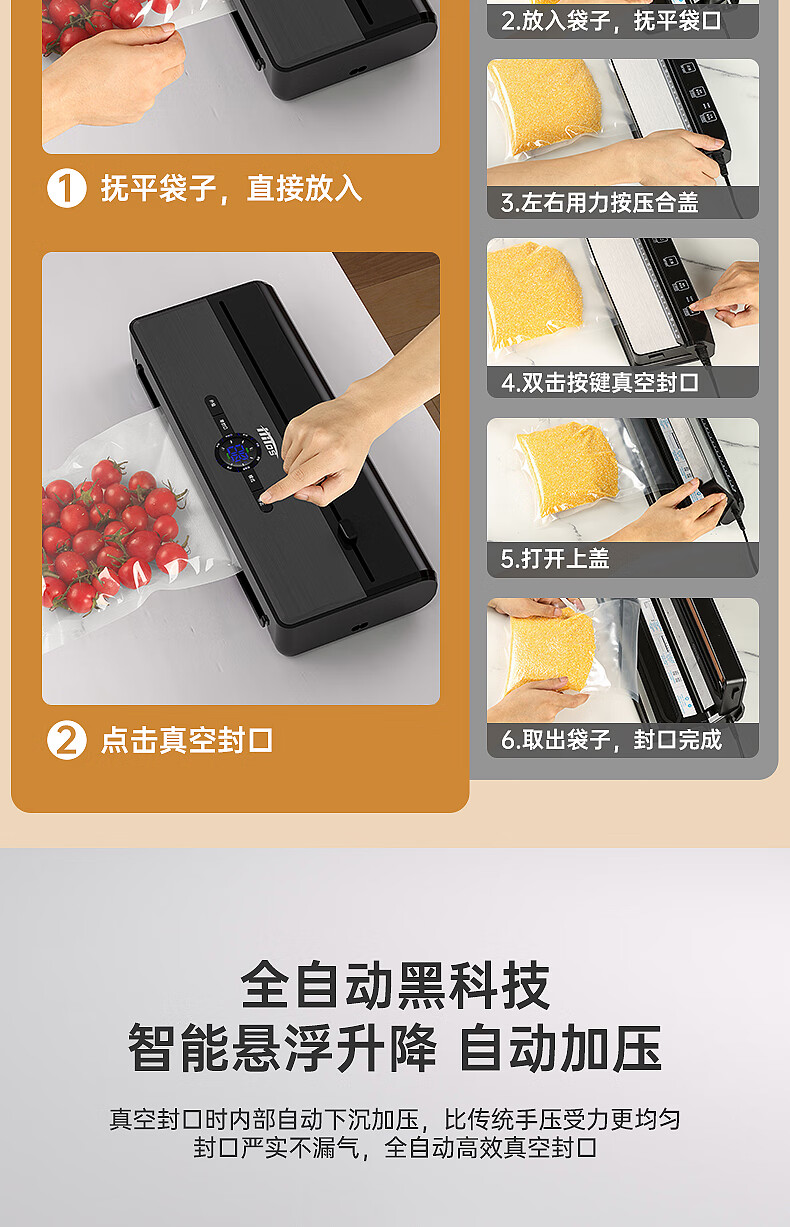 HITOS vacuum compressor sealing machine household fully automatic plastic sealing machine vacuum machine food packaging all-in-one machine commercial wet and dry use/press-free one-button vacuum sealing silver double-pump copper core vacuum machine + 1 roll bag + 5 piece bag 30cm