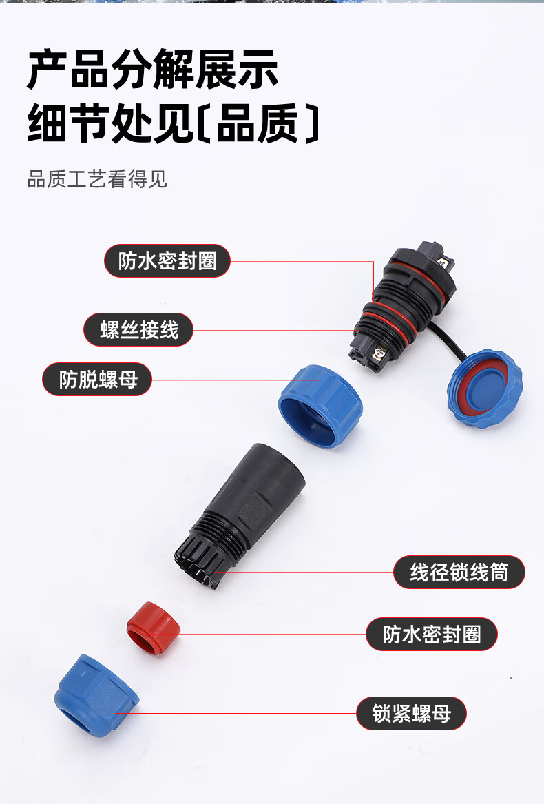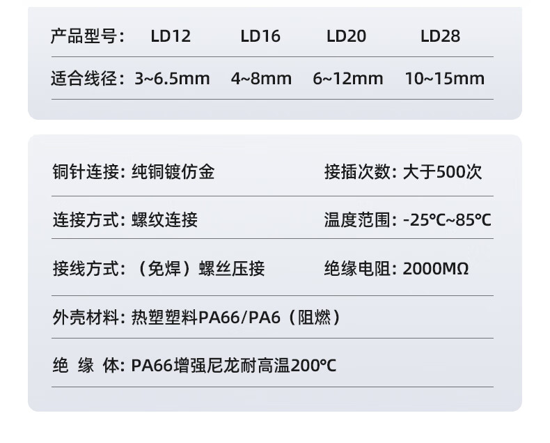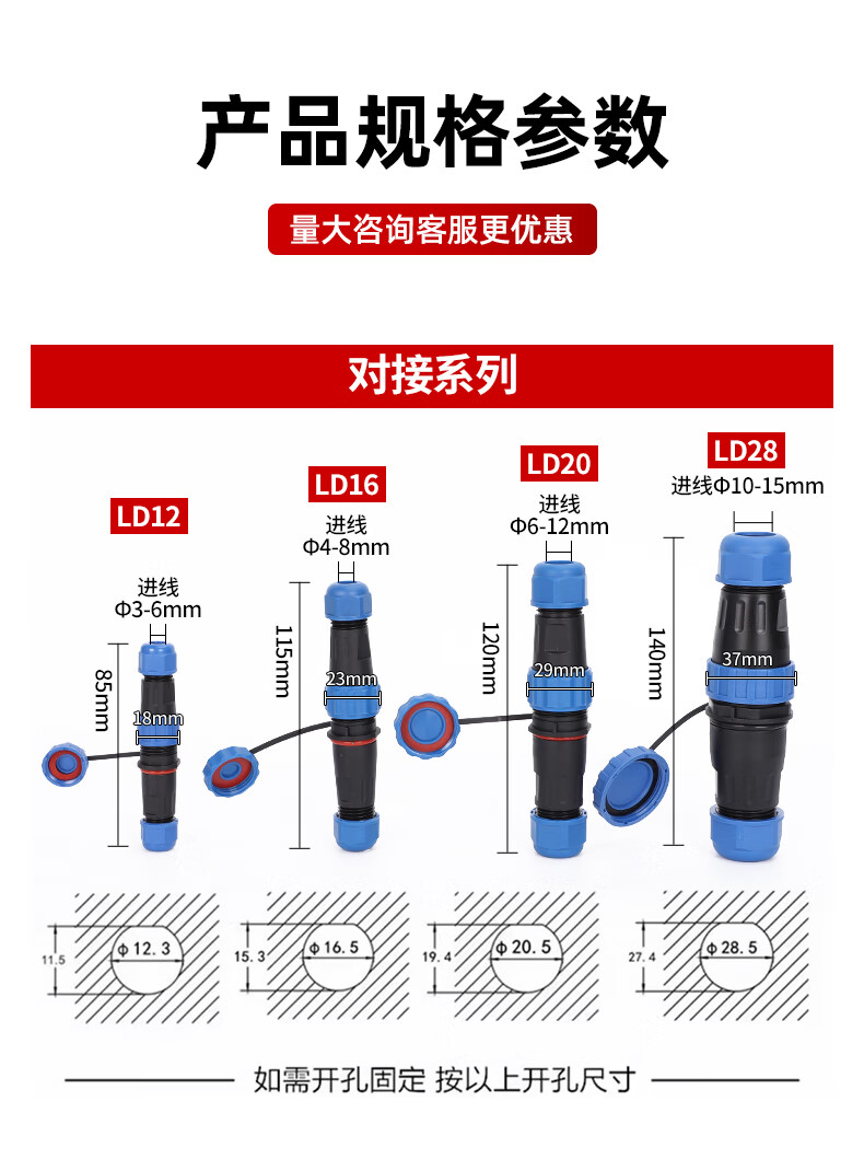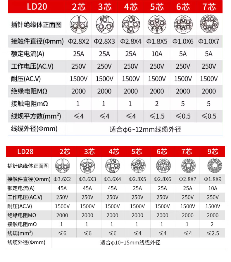 Welding-free aviation plug LD16/20/28 industrial socket 3-core 4-5 docking waterproof cable connector IP68 LD28-3 male + docking female 3-core 45A