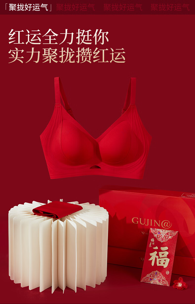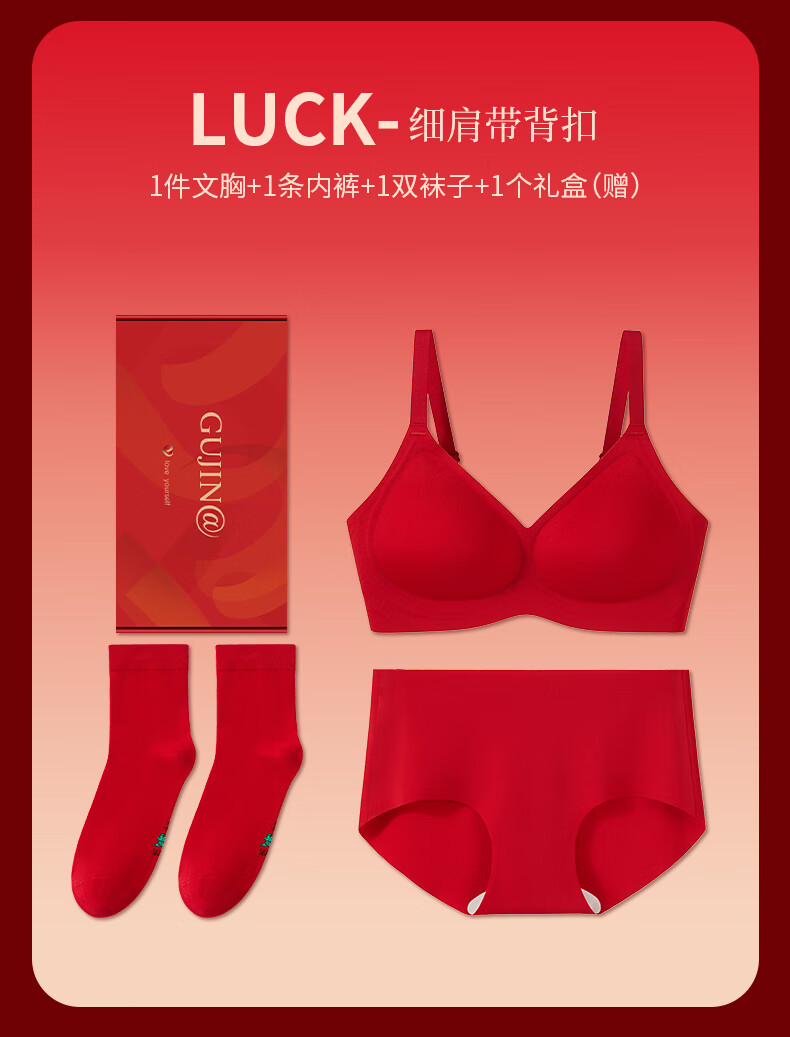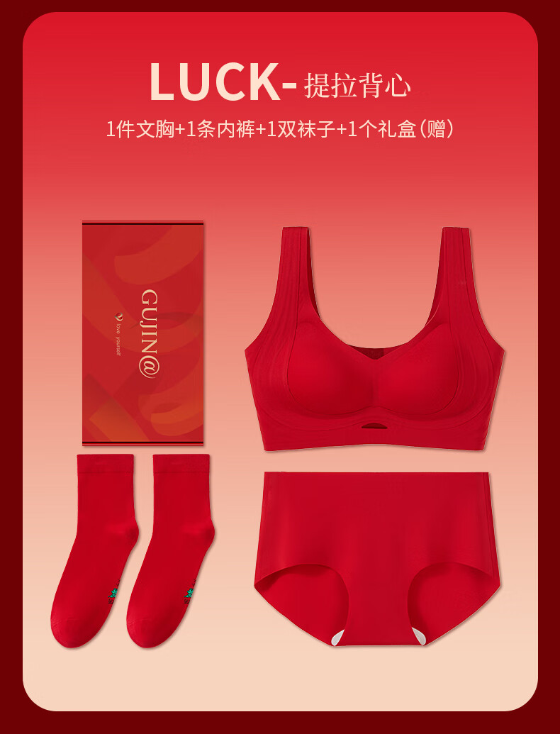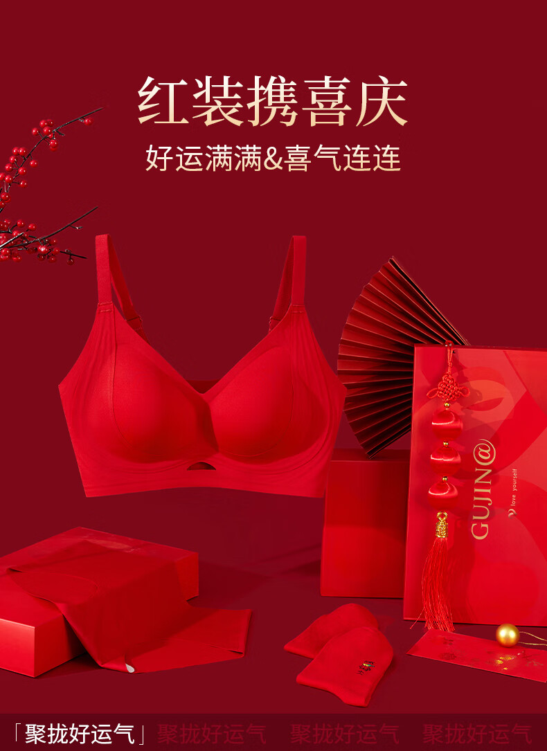 Ancient and Modern (GUJIN) Lucky Red Underwear Zodiac Year Bra Set Bridal Gift Box Seamless Push-Up Wedding Gift New Year of the Horse Lucky Red-Vest Set Support Push-Up Good Luck Koi L Recommended Weight 100-120 Jin