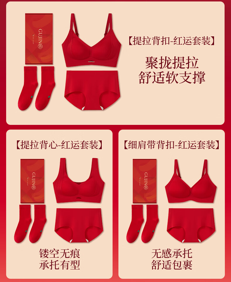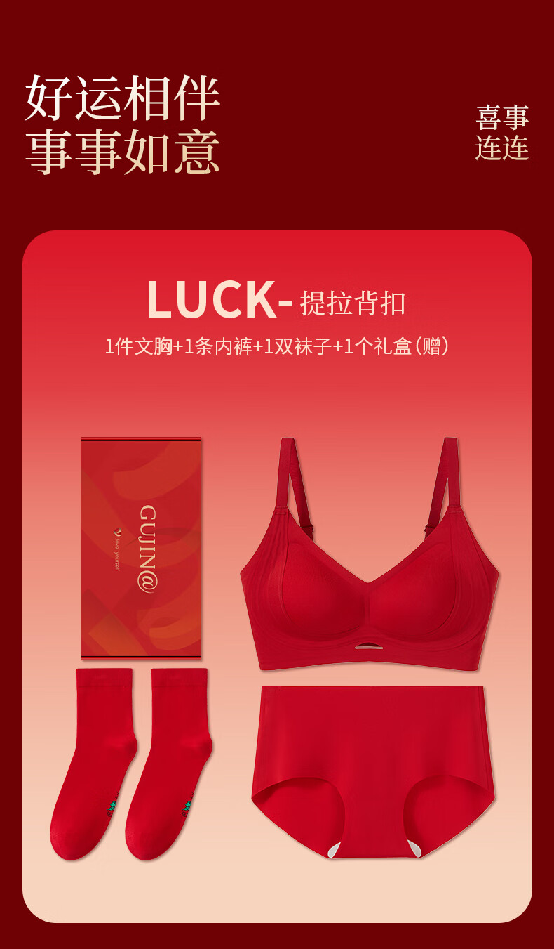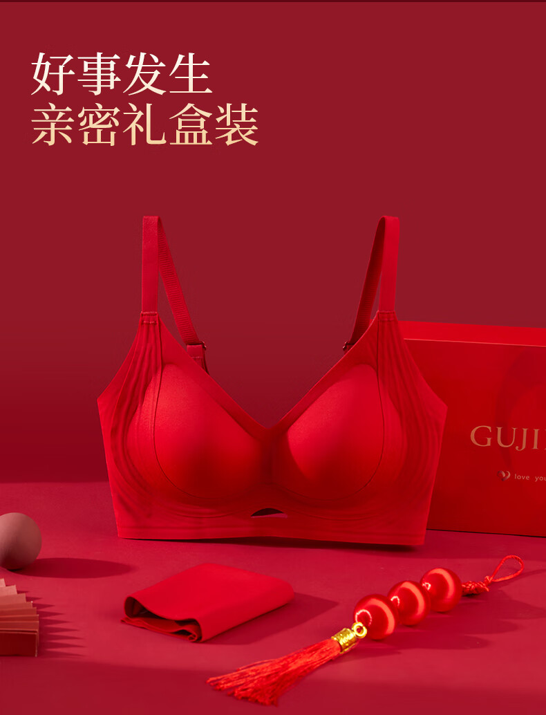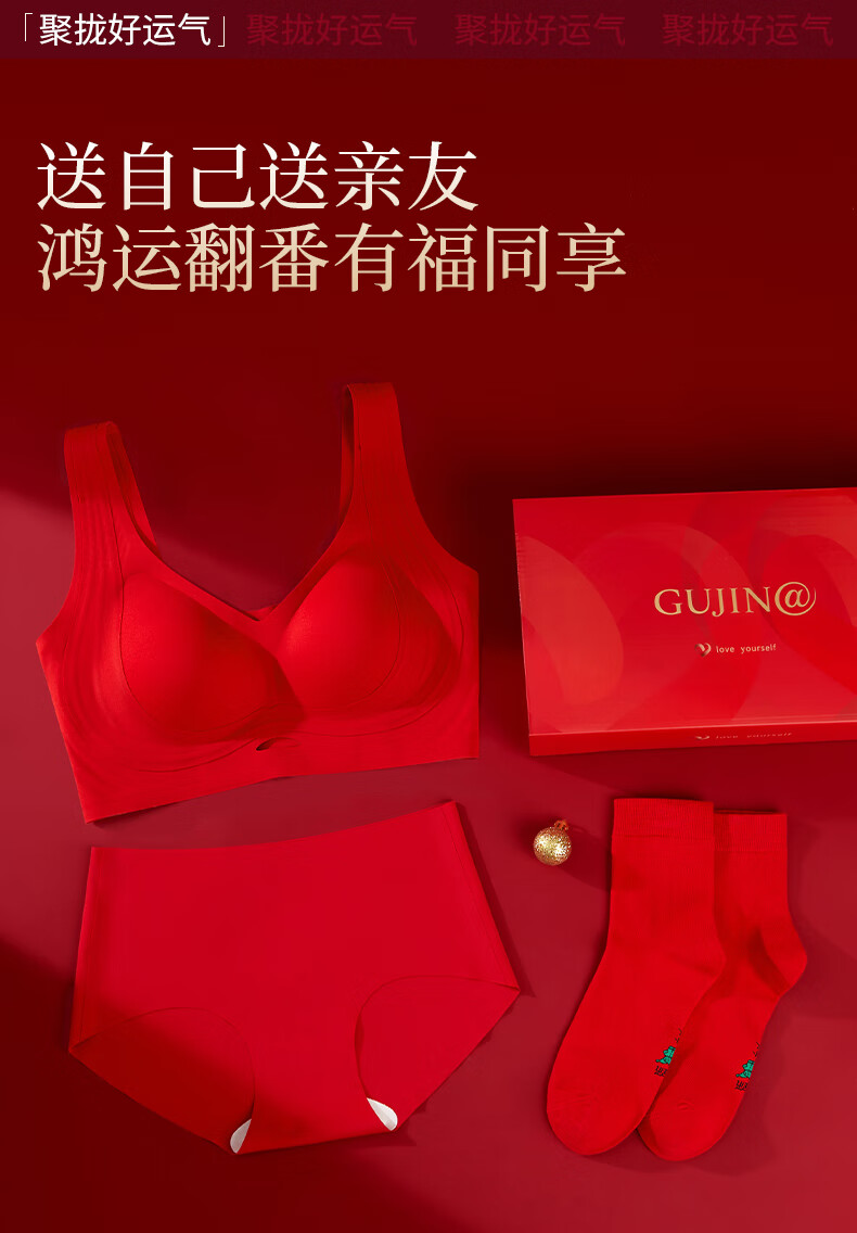 Ancient and Modern (GUJIN) Lucky Red Underwear Zodiac Year Bra Set Bridal Gift Box Seamless Push-Up Wedding Gift New Year of the Horse Lucky Red-Vest Set Support Push-Up Good Luck Koi L Recommended Weight 100-120 Jin