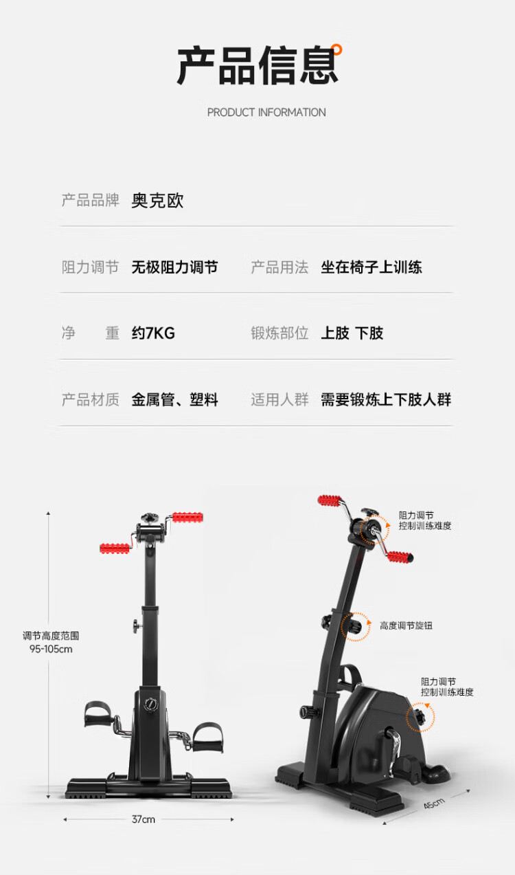 AoKeou exercise bike for middle-aged and elderly people, indoor stepper, hemiplegic stroke rehabilitation training device, home sports equipment, dual display, hand and foot training | resistance adjustment | counting | height adjustable | pair of gloves