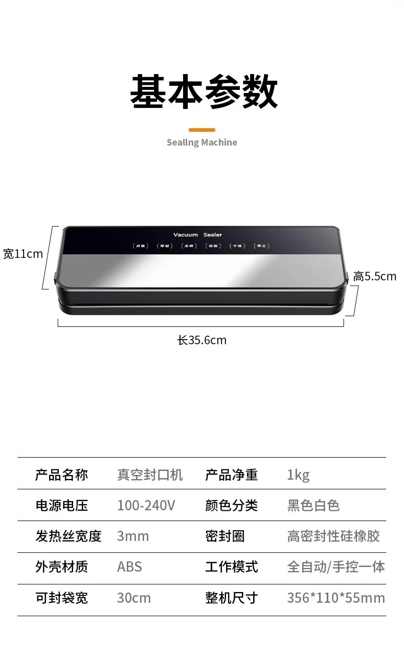 Meschute German vacuum sealing machine household fresh-keeping plastic sealing compressed food fully automatic vacuum machine tea sealing touch screen model with large suction power + 100 pieces (25X30cm)