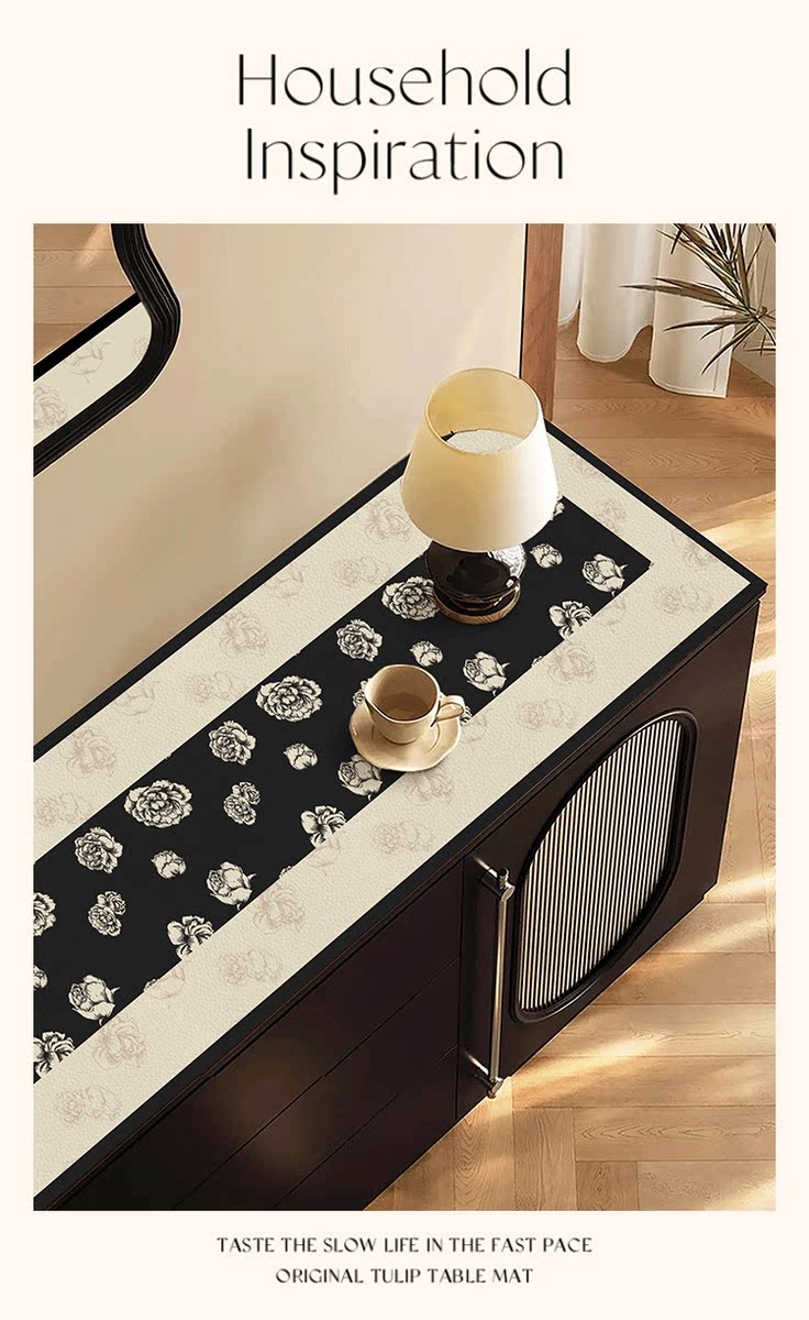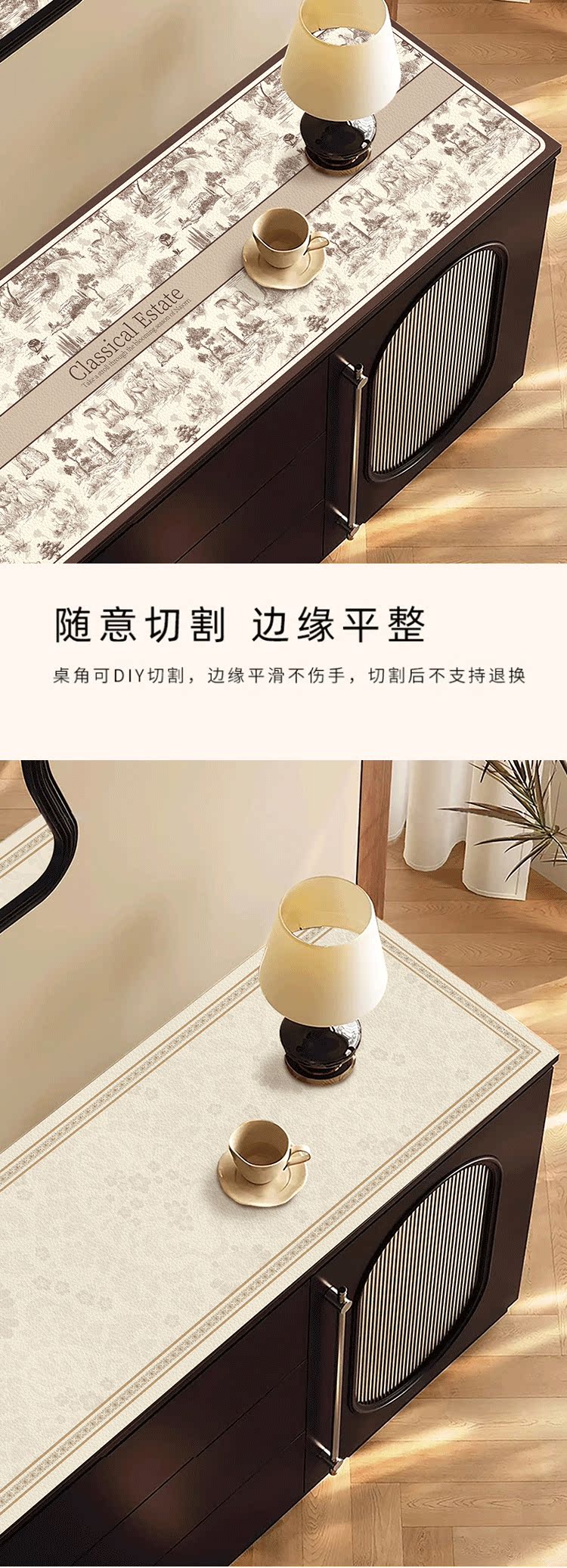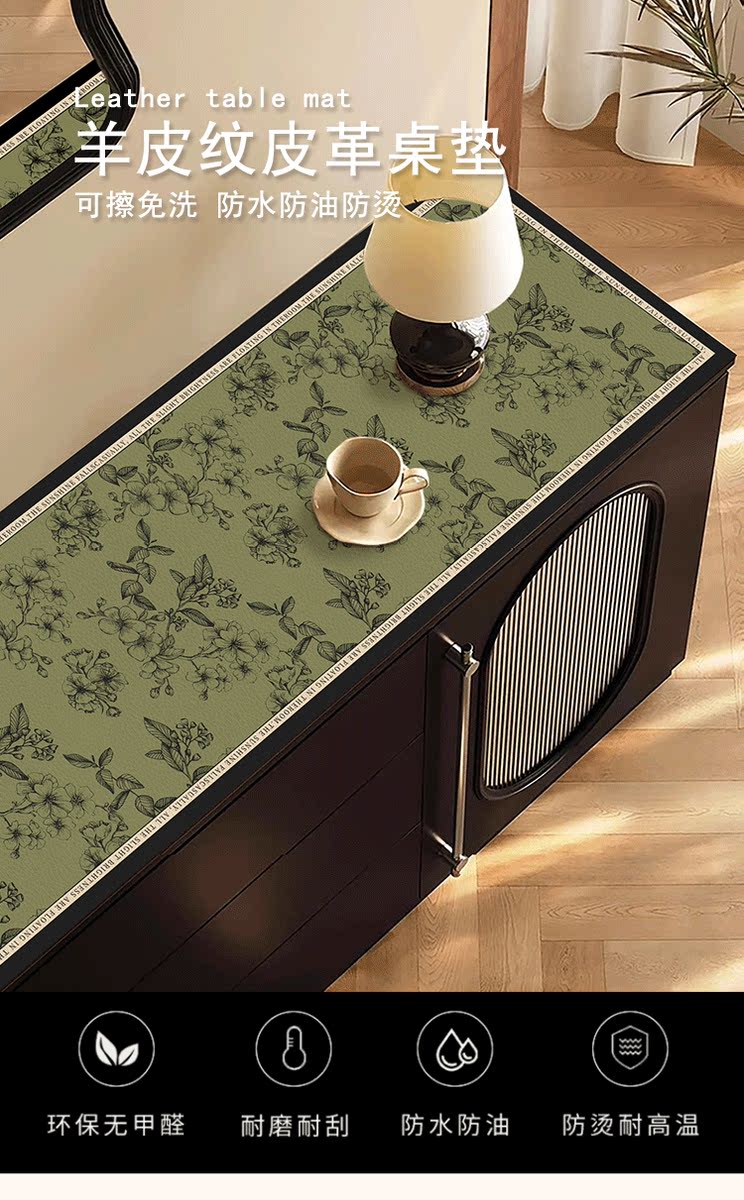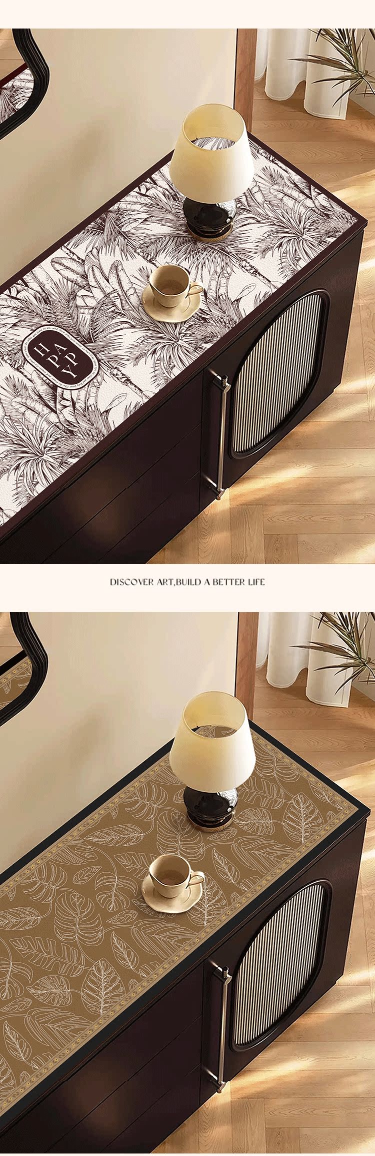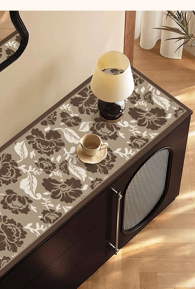 Fantasy sideboard table mat shoe cabinet TV cabinet long tablecloth cabinet protection Zhiying Yun brown + no-wash leather silicone table mat 35x120cm (waterproof and oil-proof)