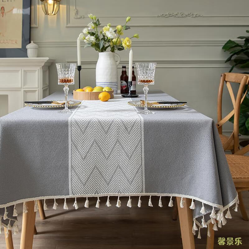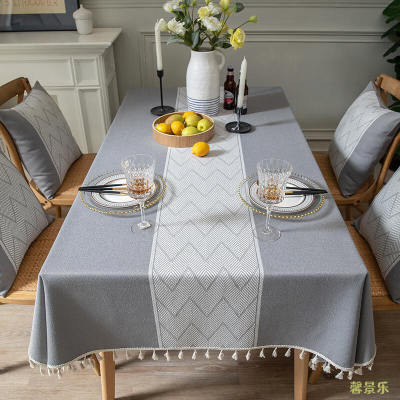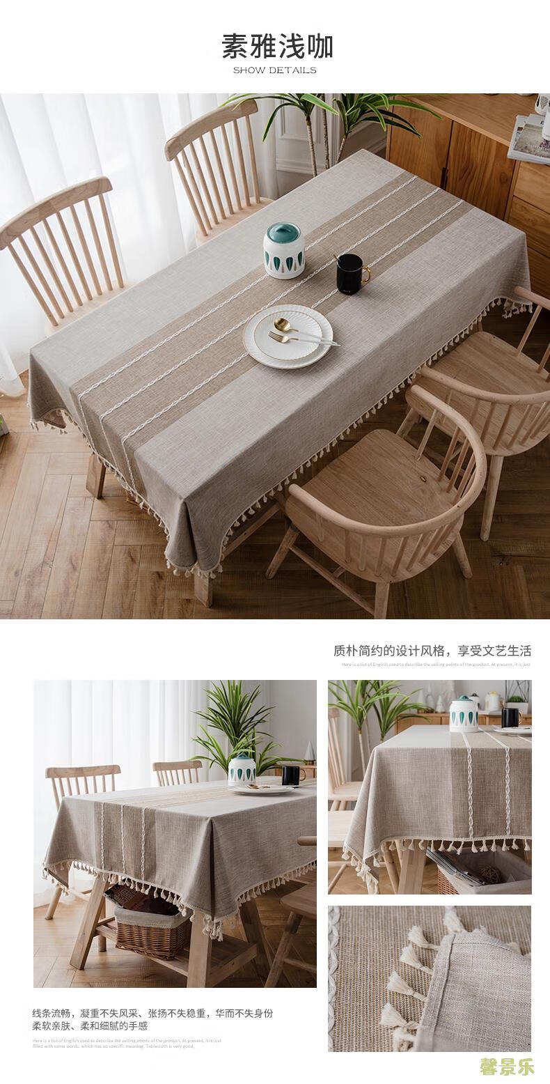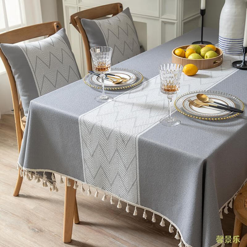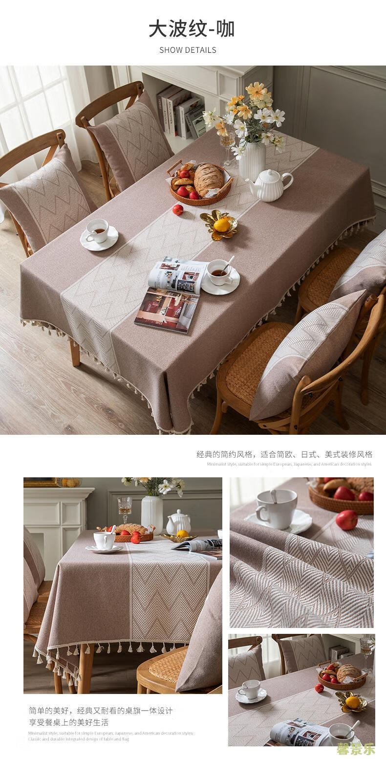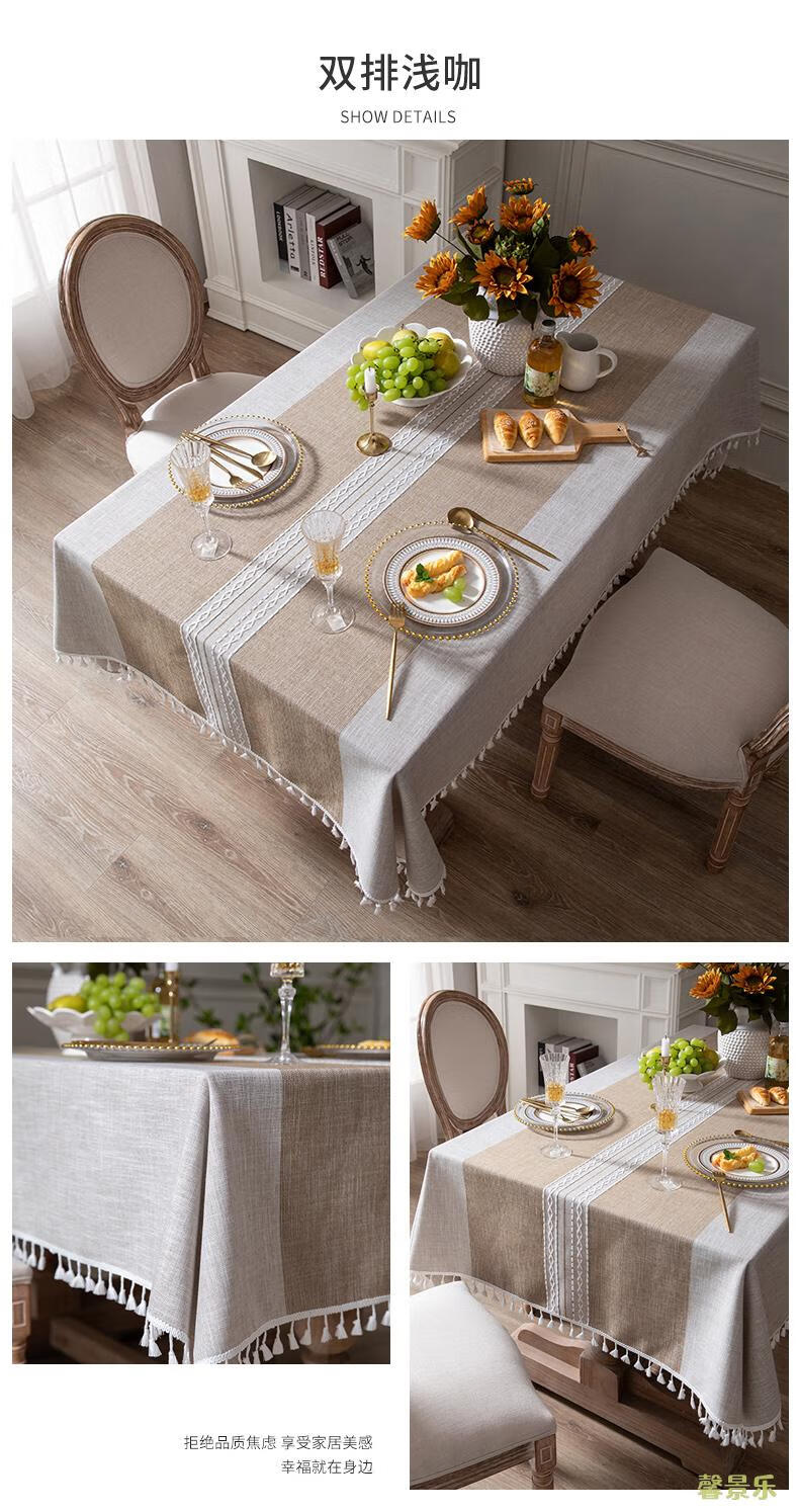 Xinjinngle dining table tablecloth light luxury high-end high-end fabric cotton and linen small fresh Nordic simple modern rectangular coffee table rice large ripple-coffee 90*90cm (suitable for small square table)