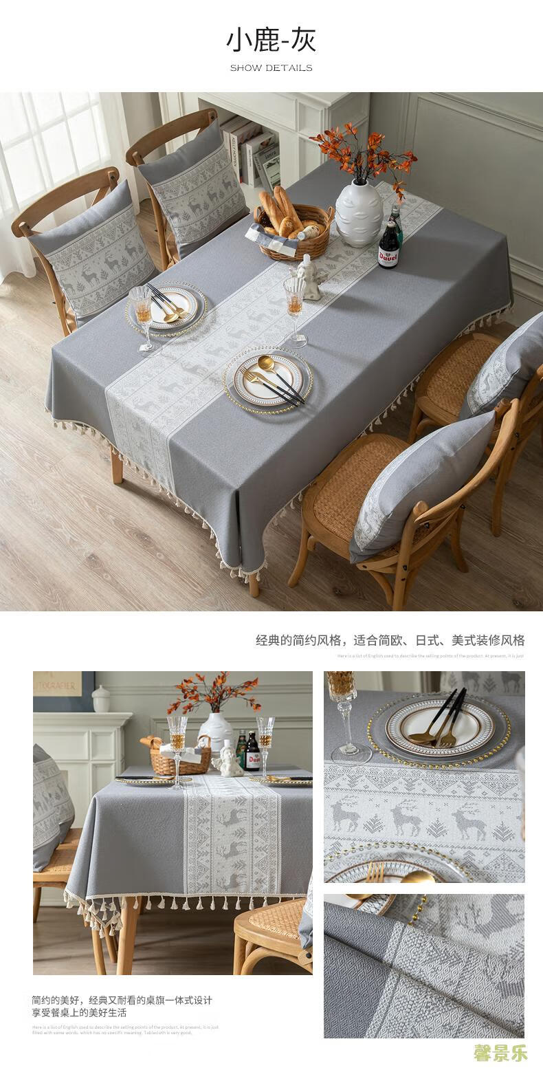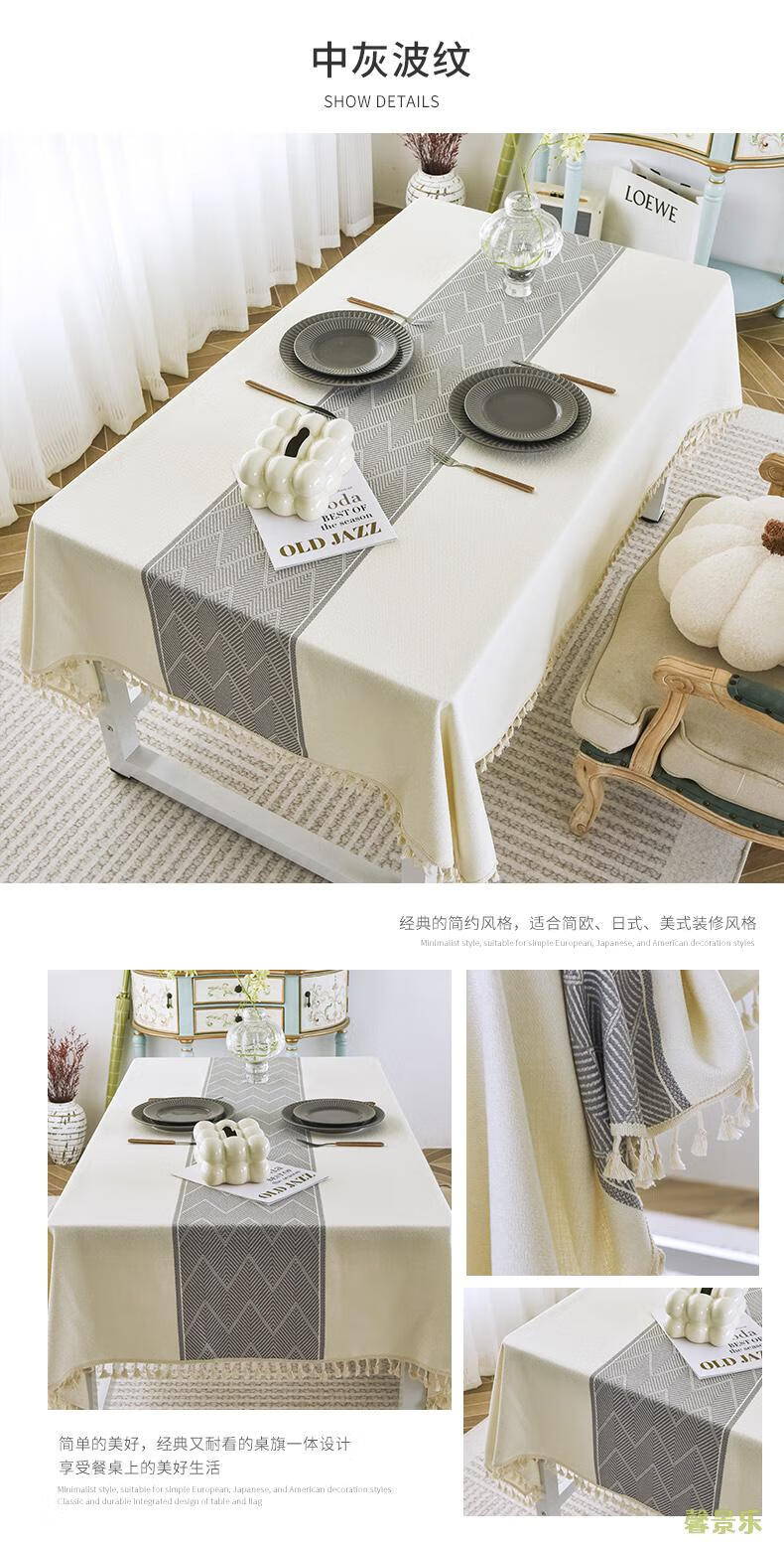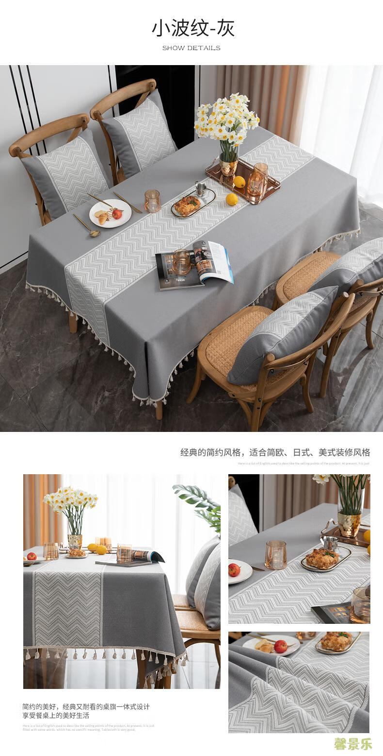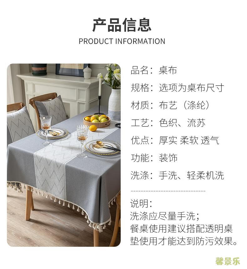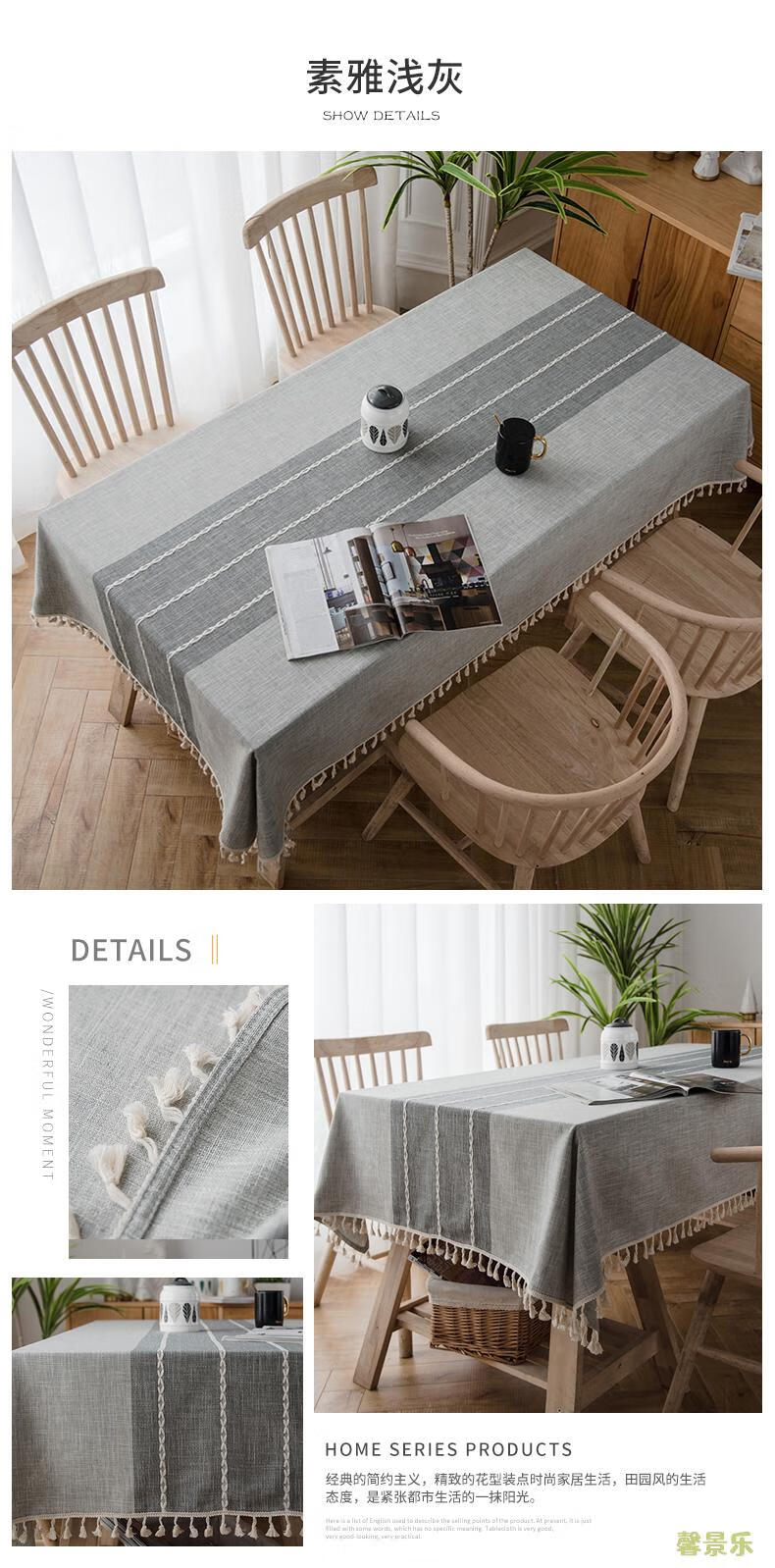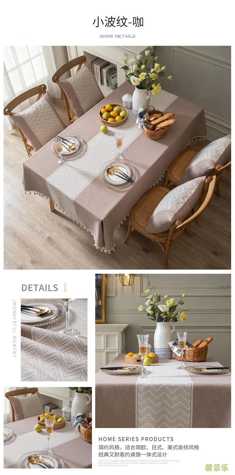 Xinjinngle dining table tablecloth light luxury high-end high-end fabric cotton and linen small fresh Nordic simple modern rectangular coffee table rice large ripple-coffee 90*90cm (suitable for small square table)