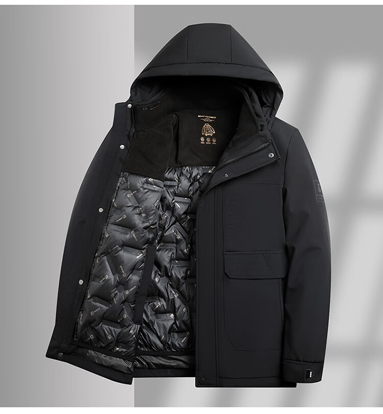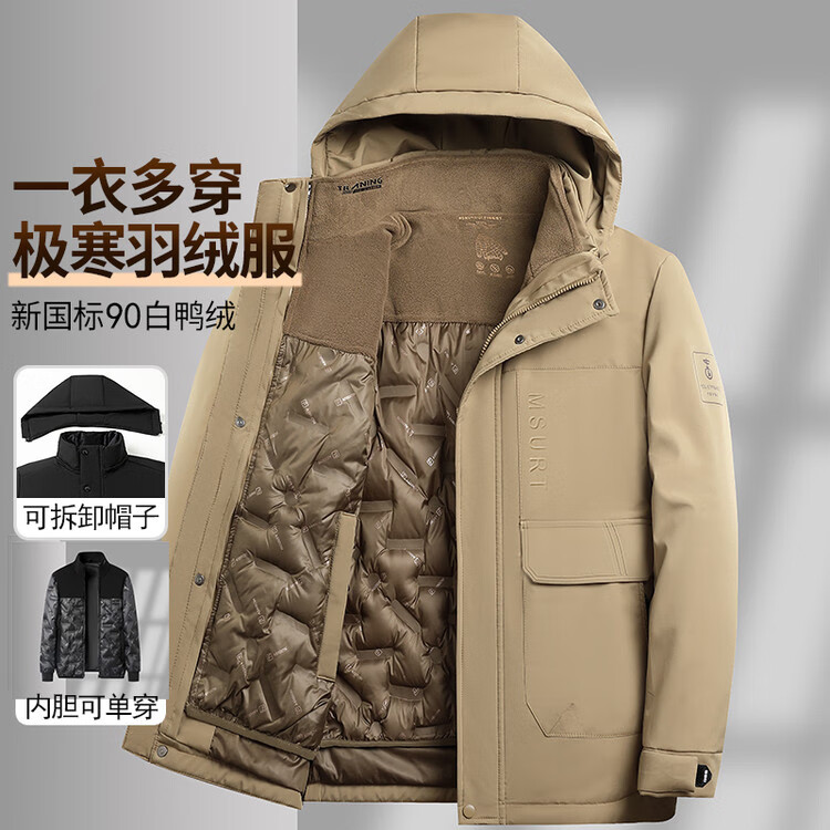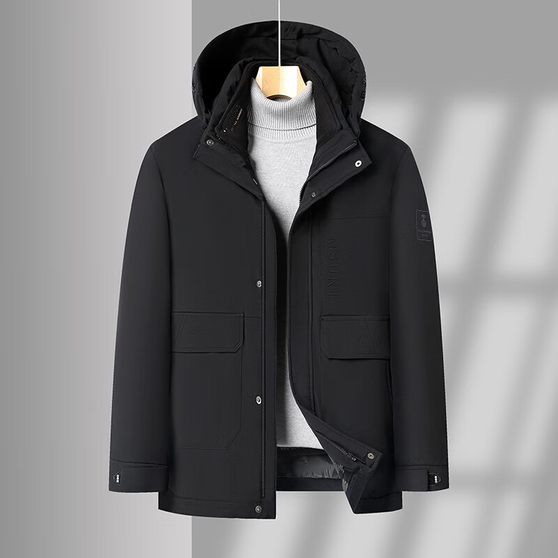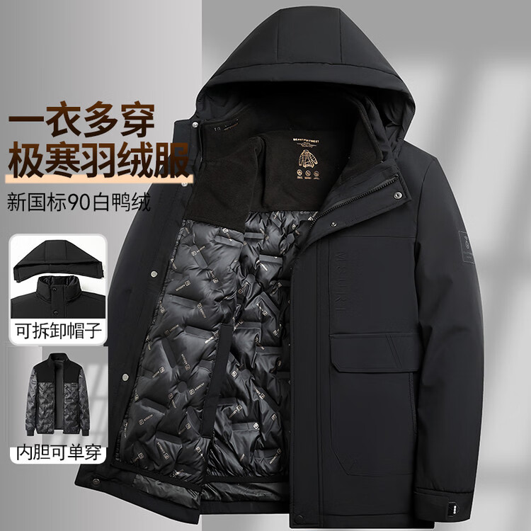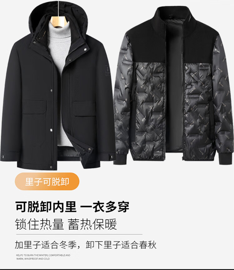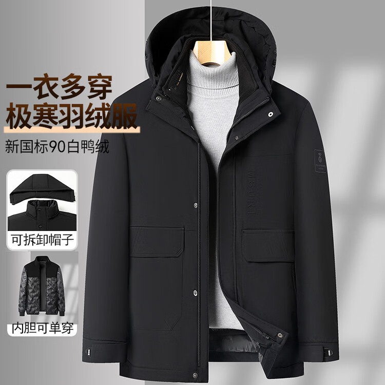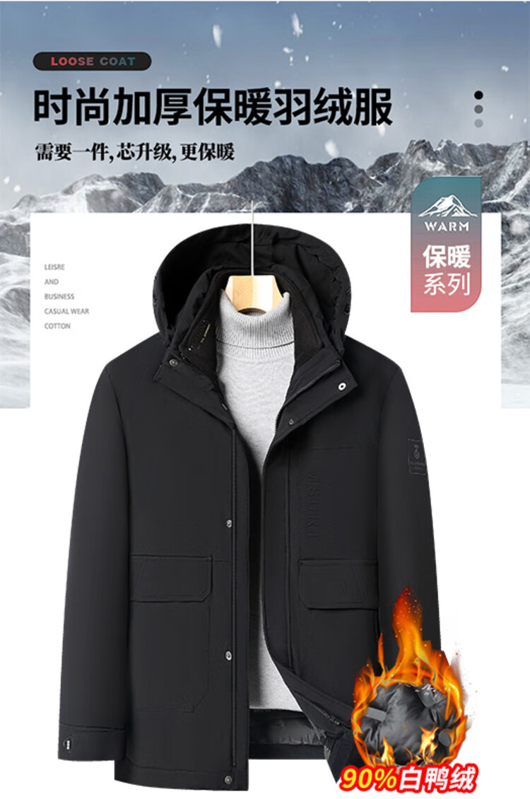 Hengyuanxiang Winter Men's Down Jacket 2025 New Middle-aged Dad's Warm Liner Hooded Removable White Duck Down Jacket Black XL