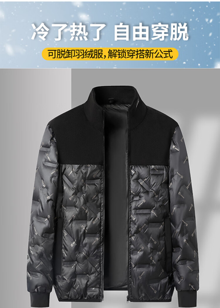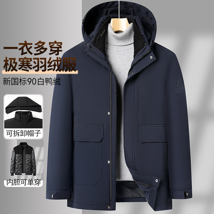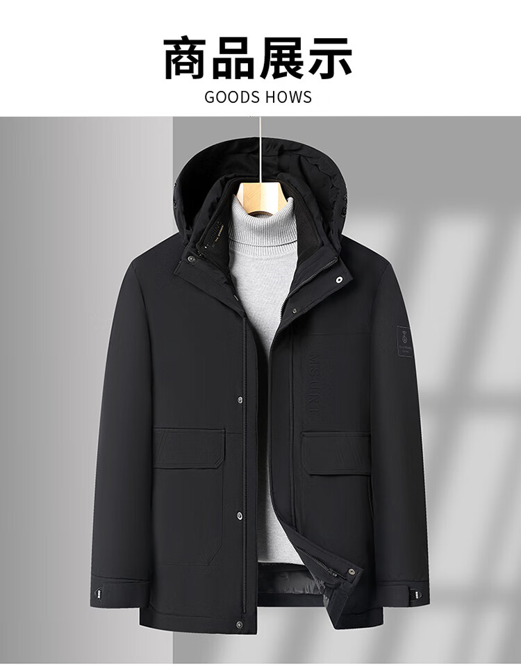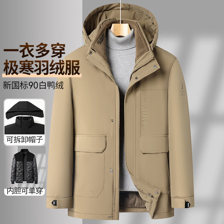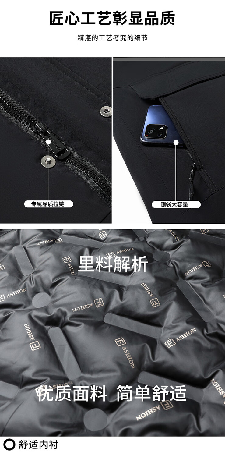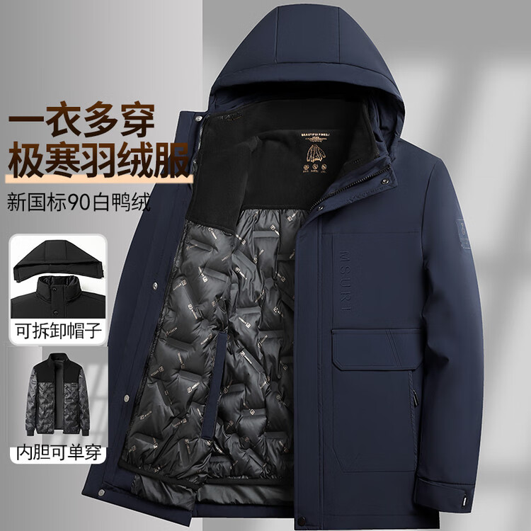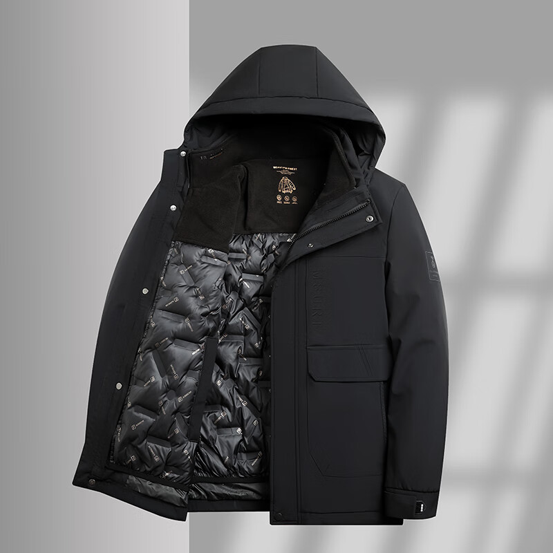 Hengyuanxiang Winter Men's Down Jacket 2025 New Middle-aged Dad's Warm Liner Hooded Removable White Duck Down Jacket Black XL