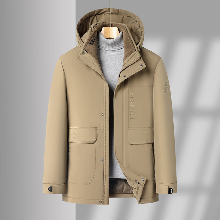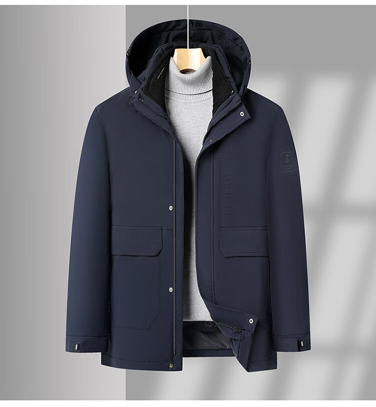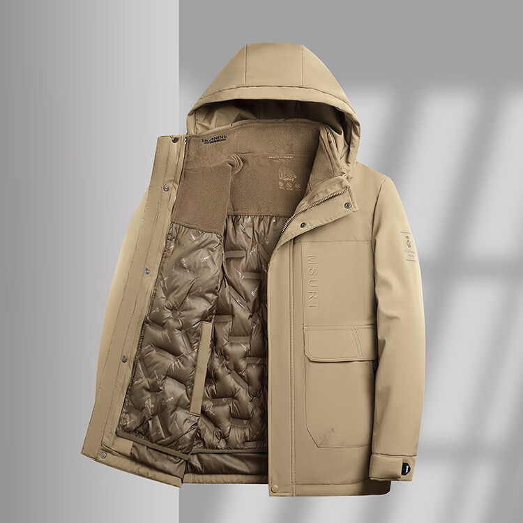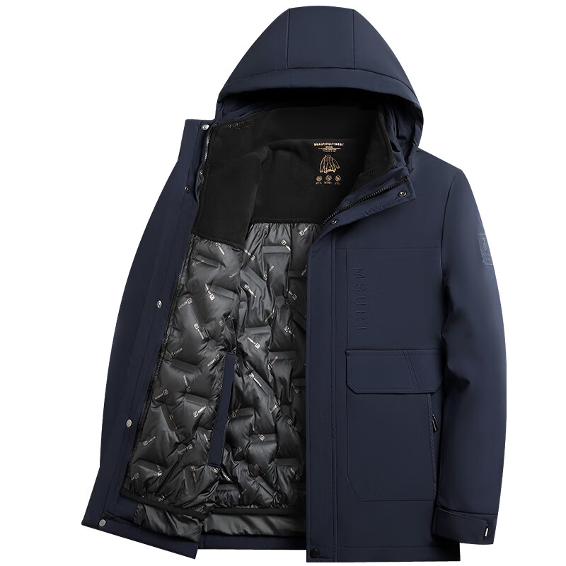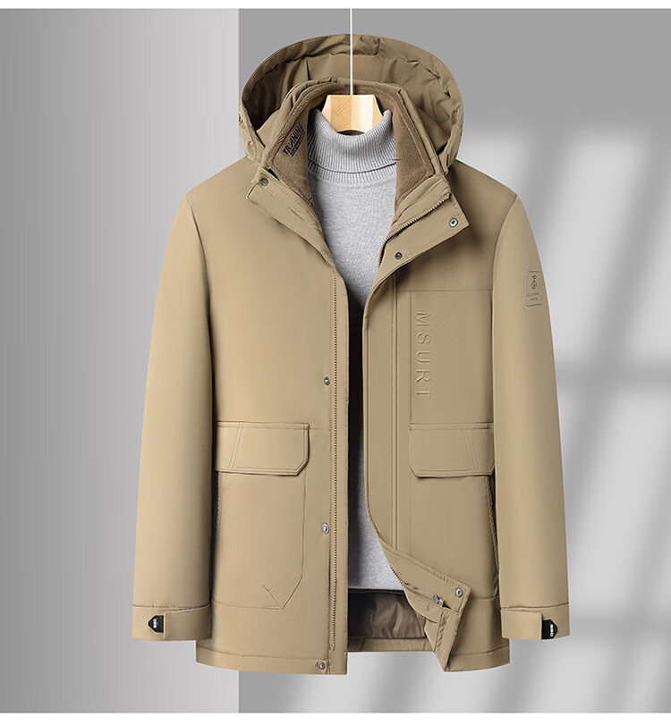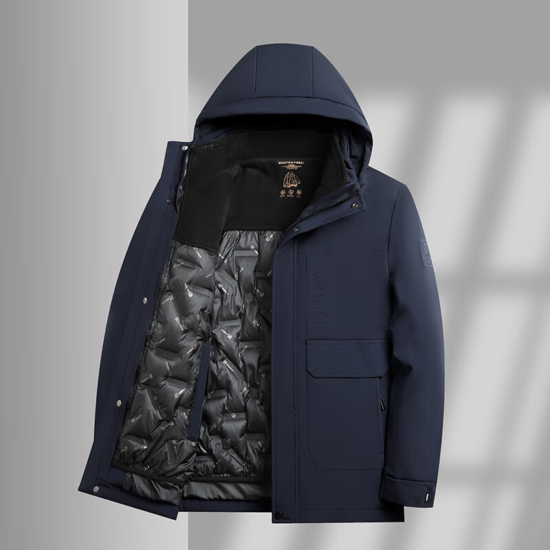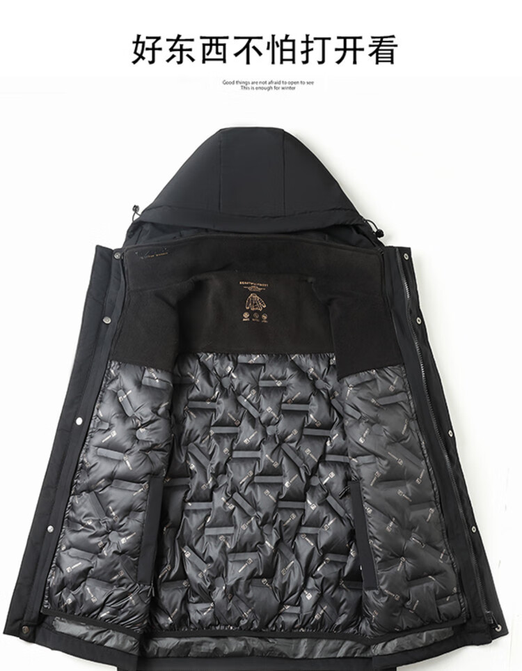 Hengyuanxiang Winter Men's Down Jacket 2025 New Middle-aged Dad's Warm Liner Hooded Removable White Duck Down Jacket Black XL