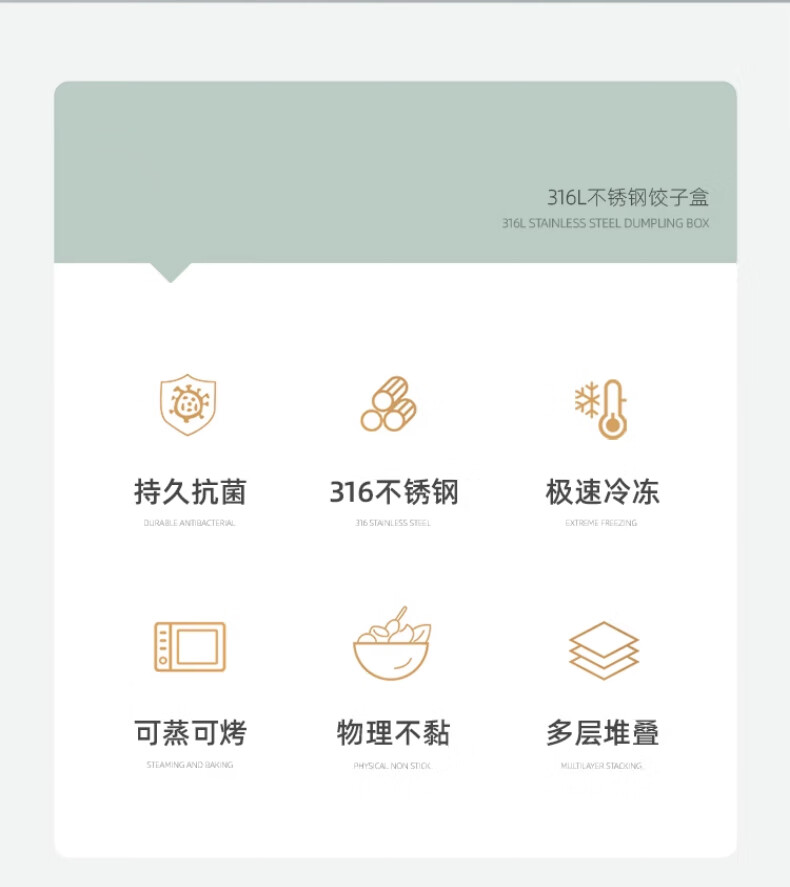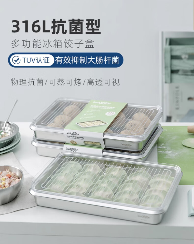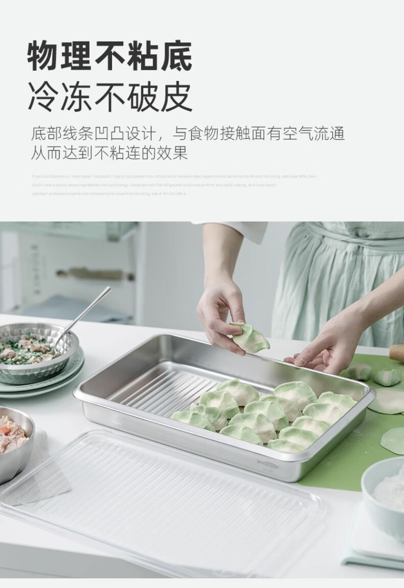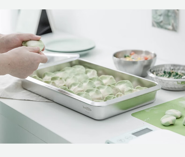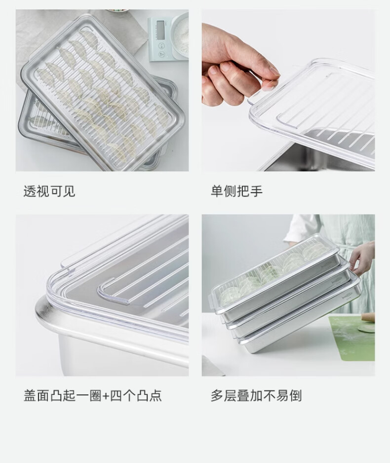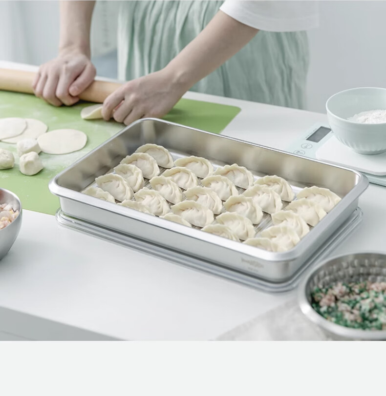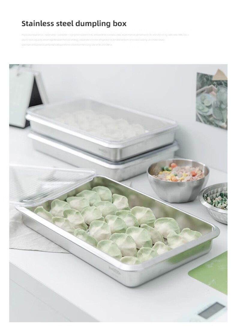 Home KATEI STORY Dumpling Box Food Grade Special Dumpling Freezing Box Stainless Steel Fresh Box Large Frozen Dumpling Box Food Grade Ice Antibacterial 316 Steel - Can be steamed or baked 3L*3 pieces 1 layer
