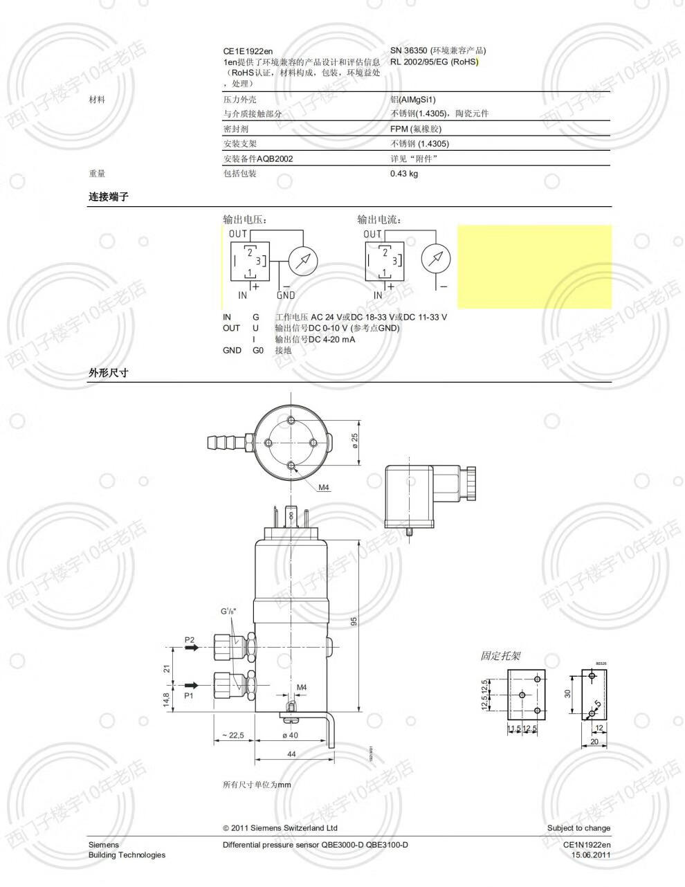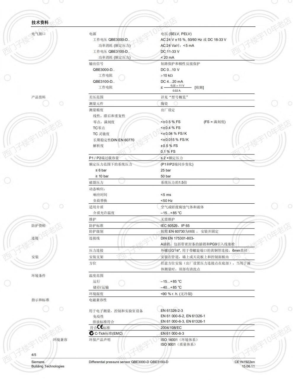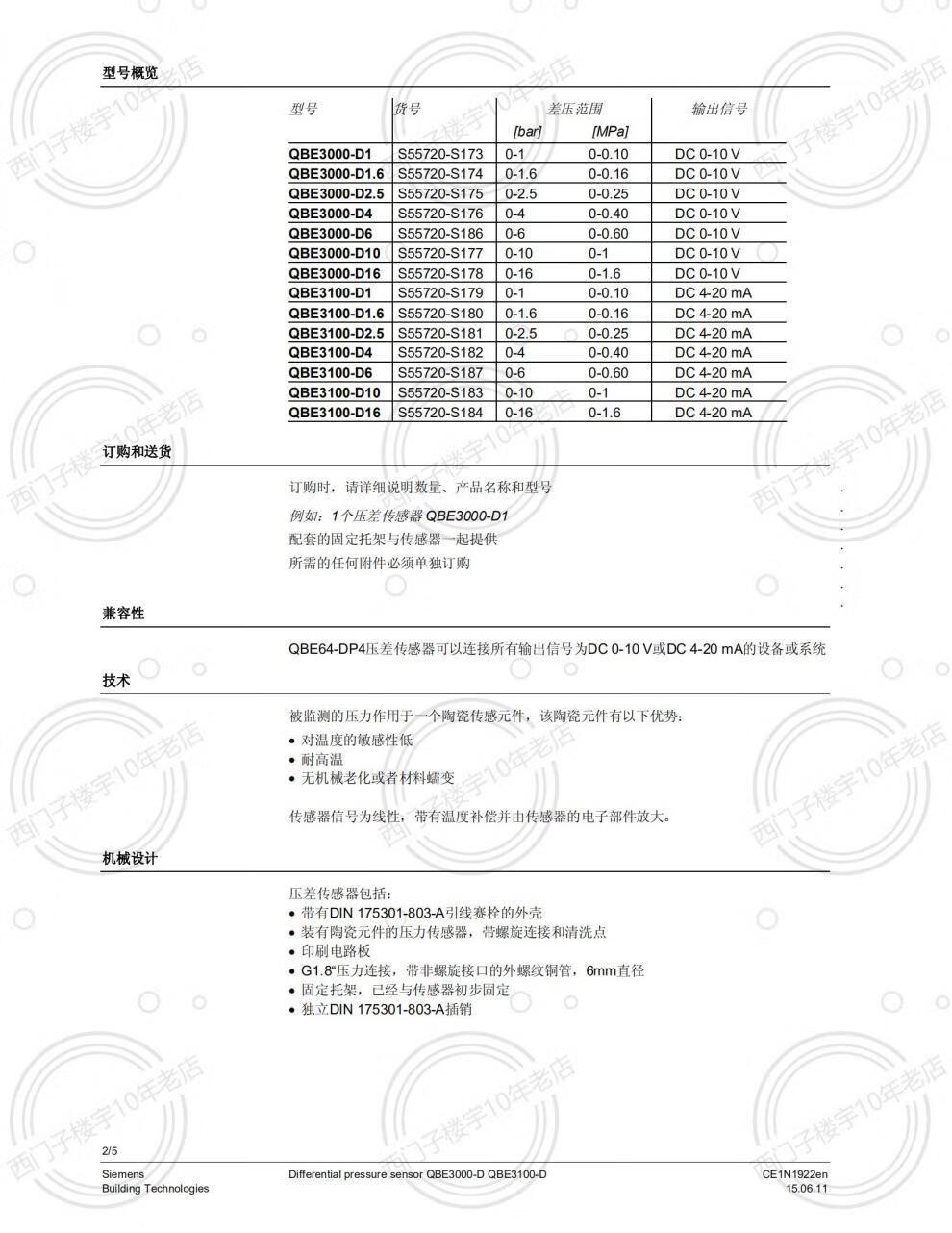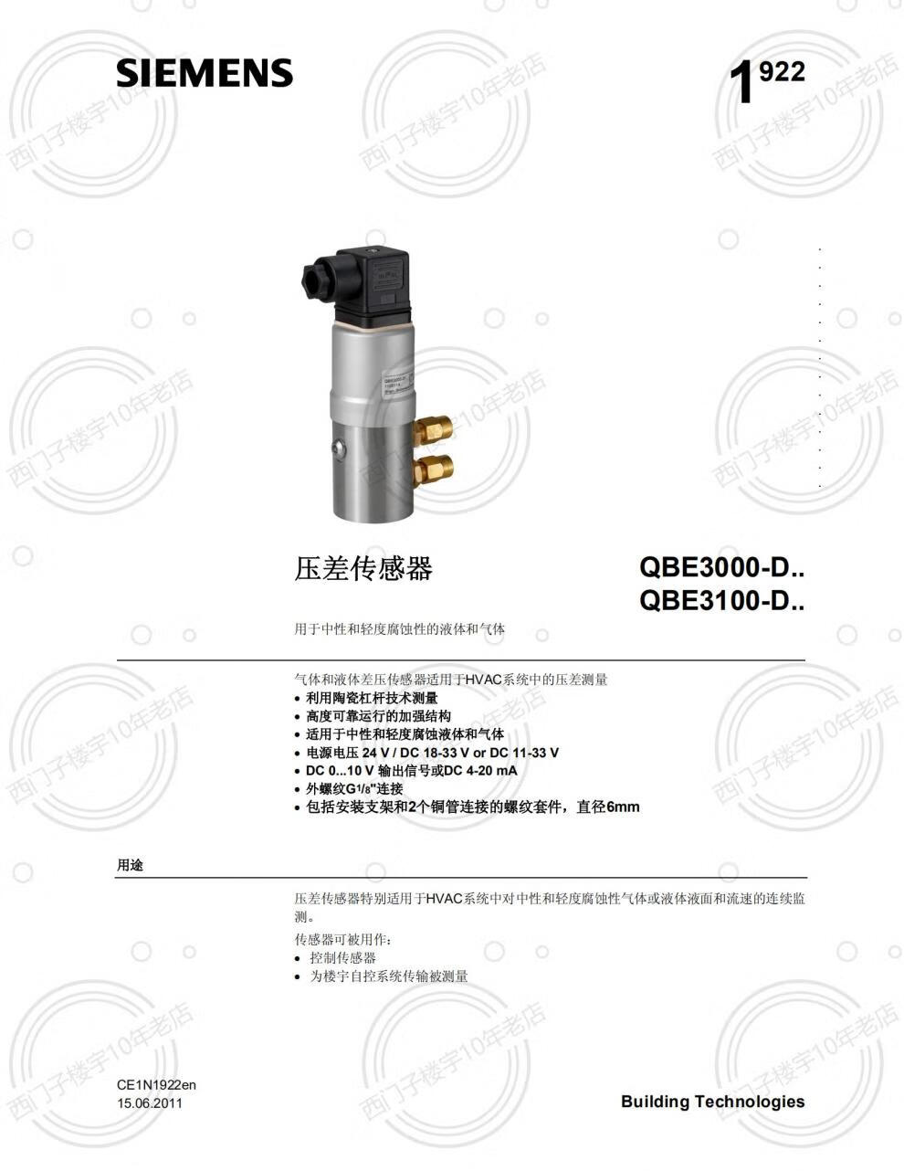 SIEMENS/Siemens QBE3100-D1 D10 D6 differential pressure transformer Siemens differential pressure sensor QBE3100-D1