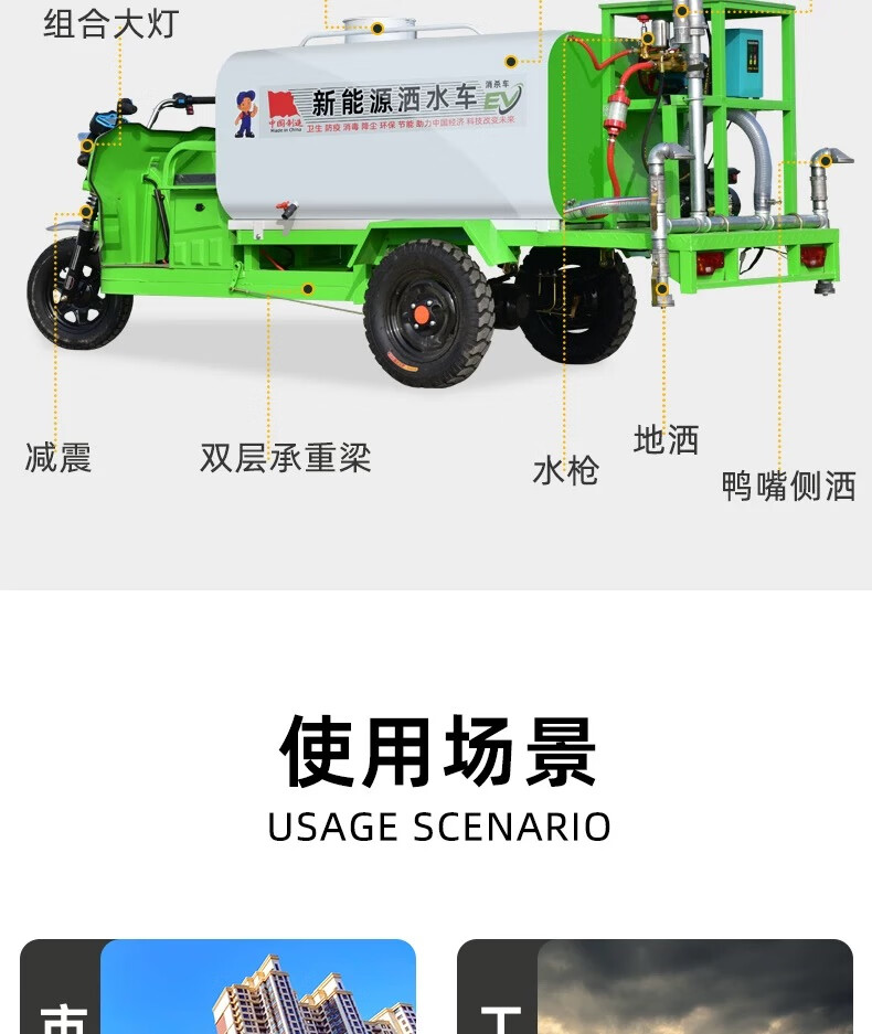 Baolian New Energy Electric Sprinkler Truck Landscaping Fog Cannon Truck 1.5 m3 Electric Five-in-One