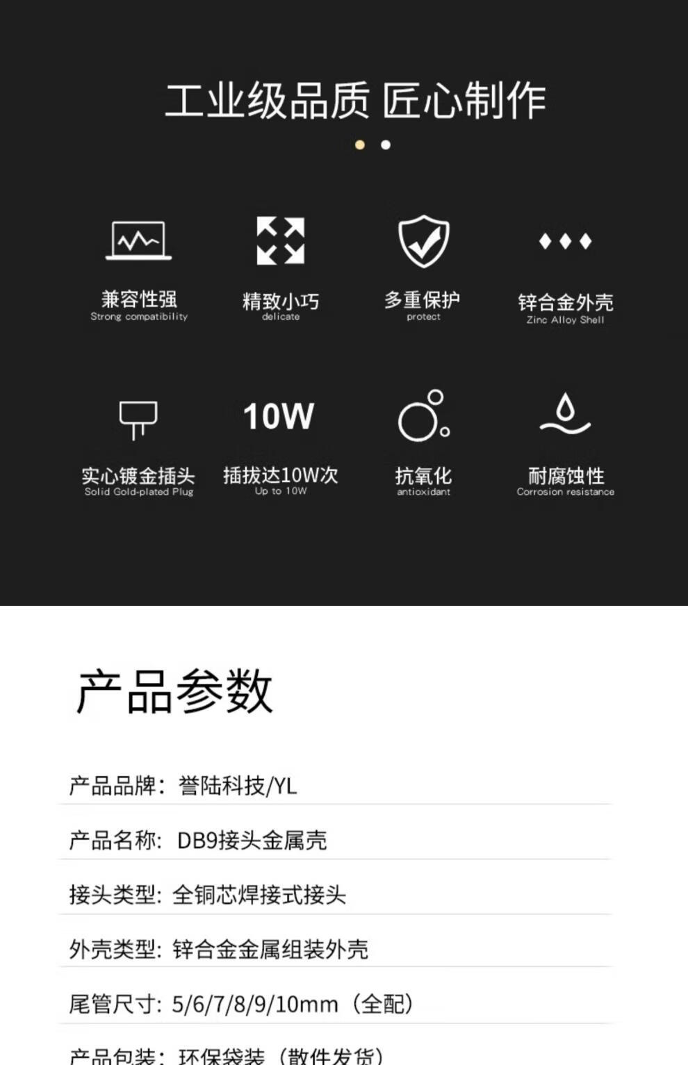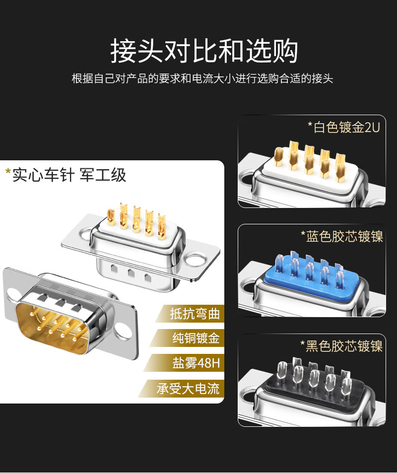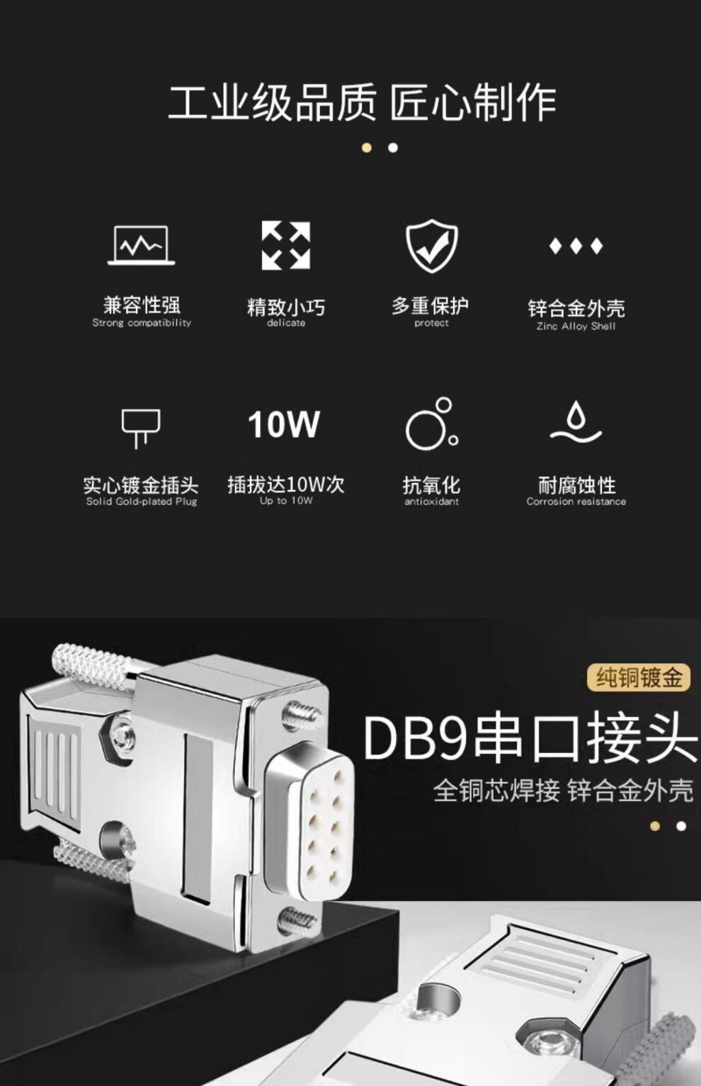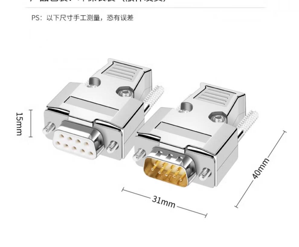 DB9 welding long screw metal shell RS232/485 DB9 serial port COM adapter cable male and female connector gold-plated long screw metal shell + solid needle gold-plated female connector