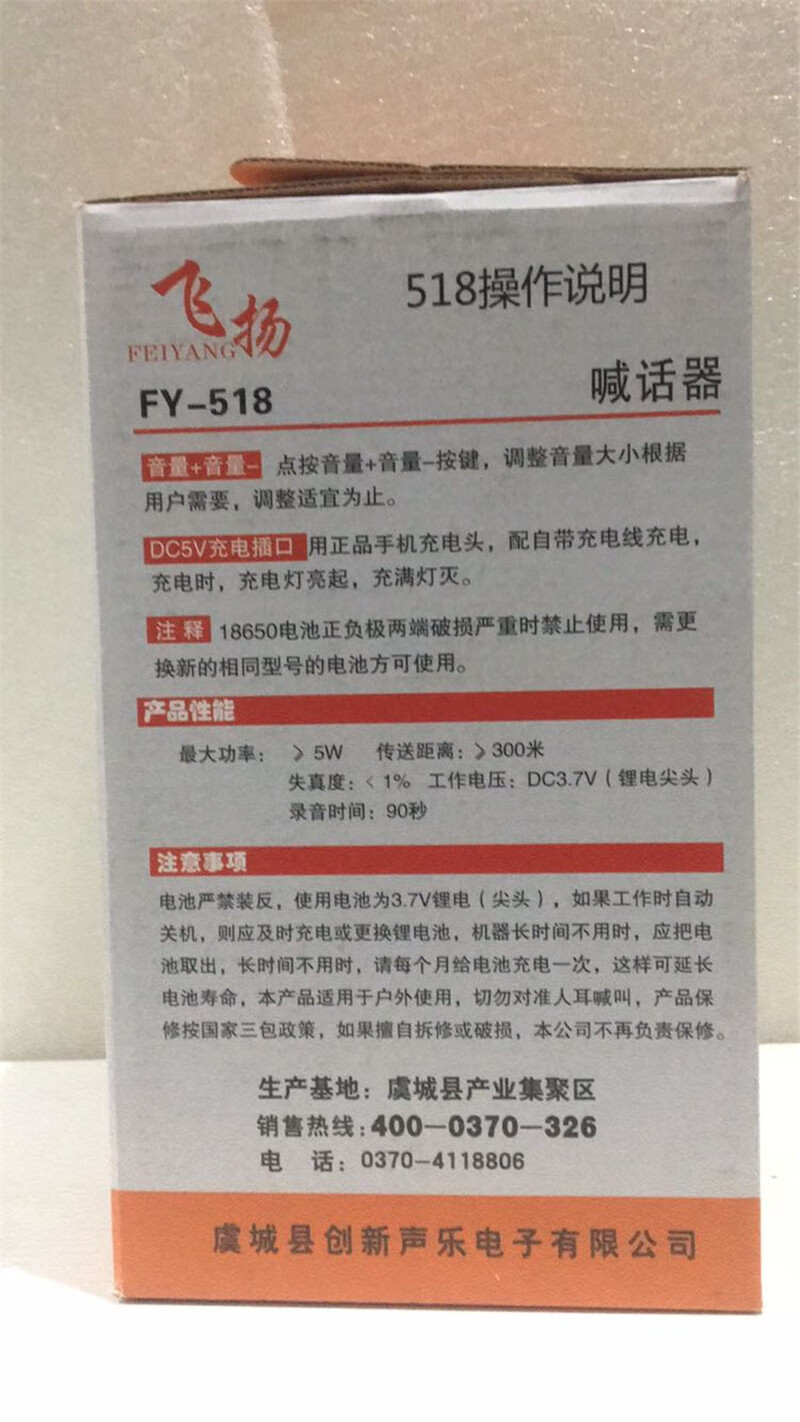 Feiyang Broadcasting King hand-held loudspeaker speaker high-power megaphone propaganda hawker recording 9 no rechargeable battery