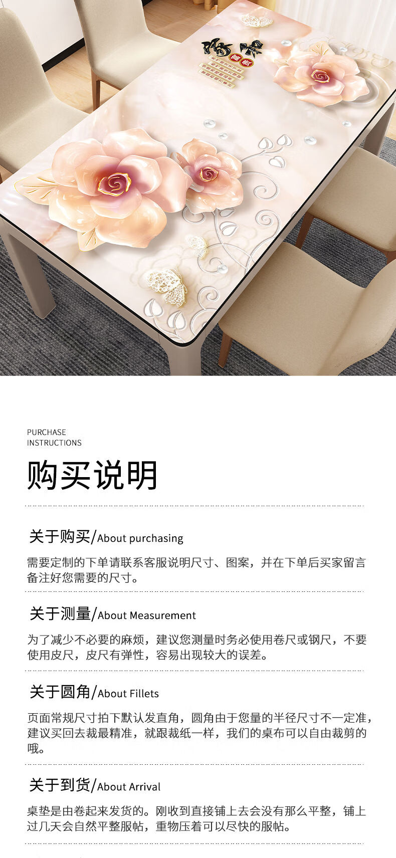 Fantasy Flowers Blooming Dining Table Mat Tablecloth Disposable Rectangular Coffee Table Tabletop Mat Blooming Wealth Please contact customer service for customized sizes