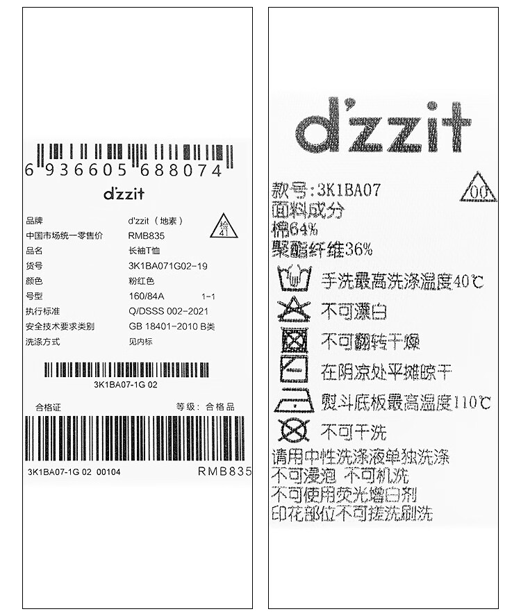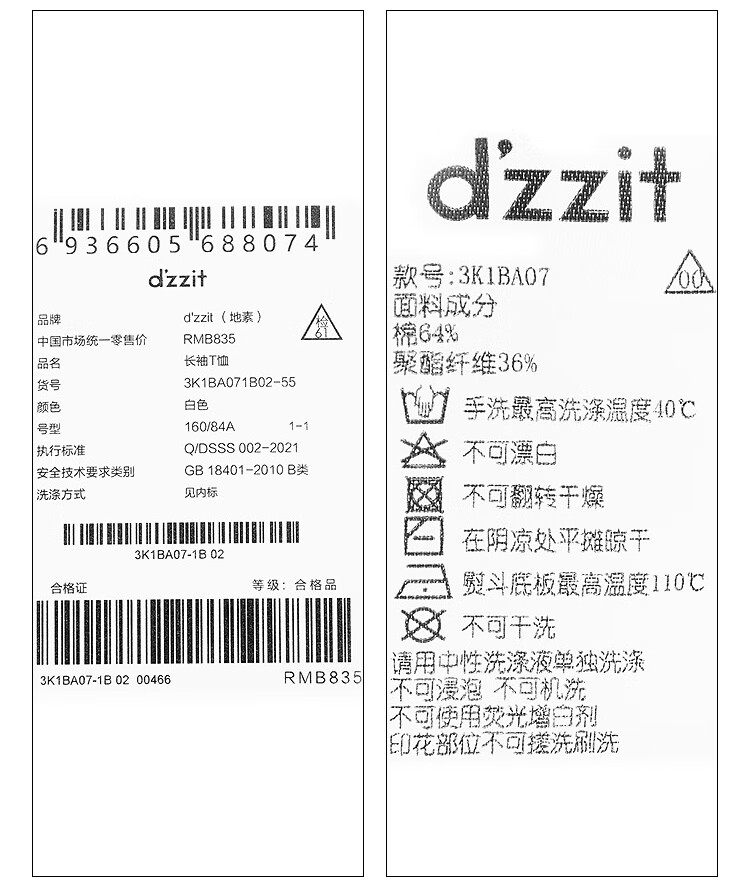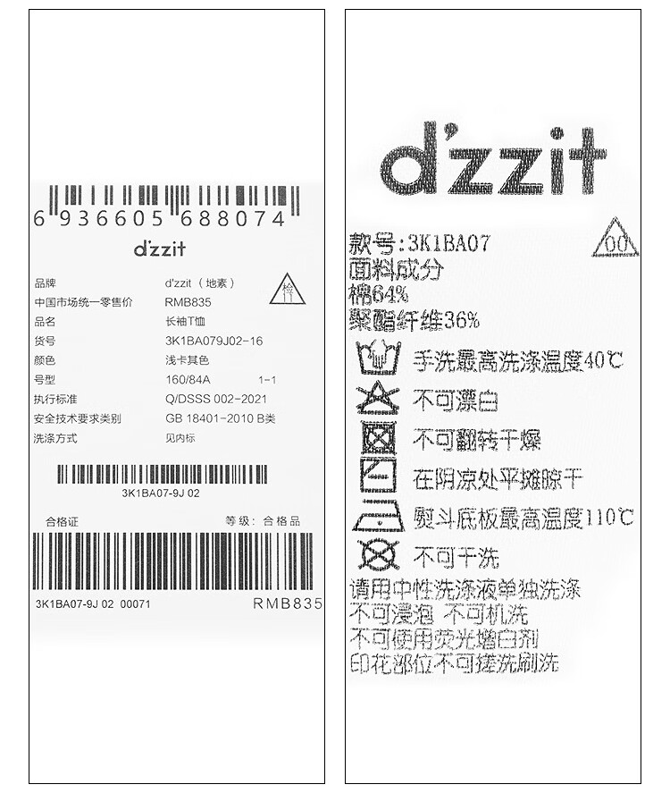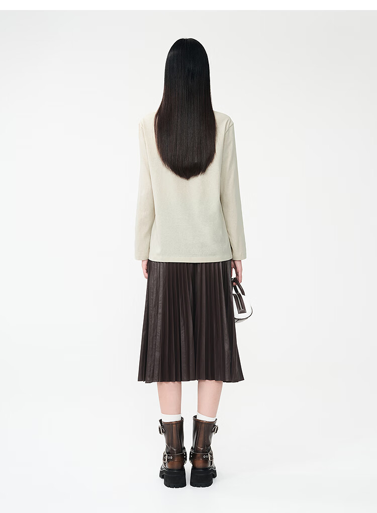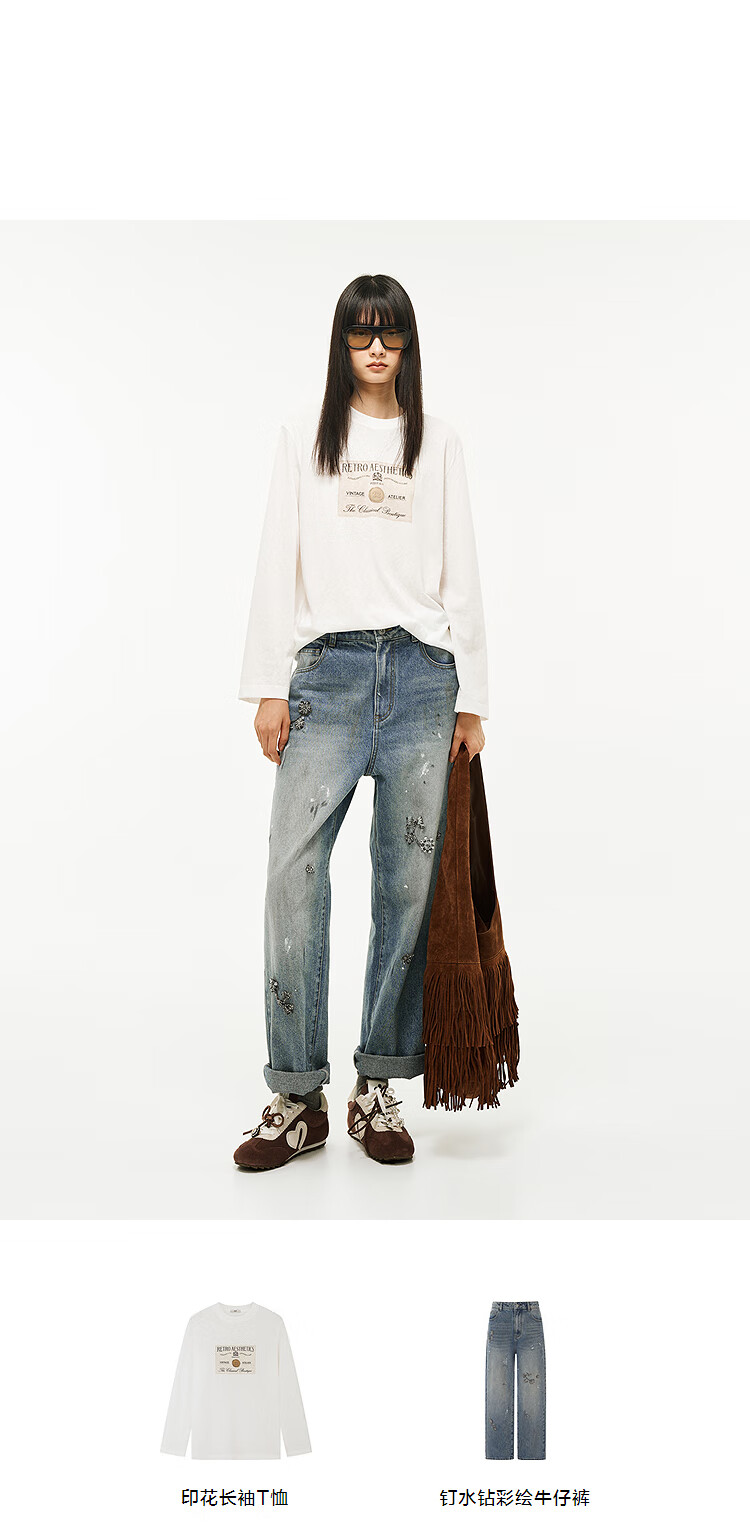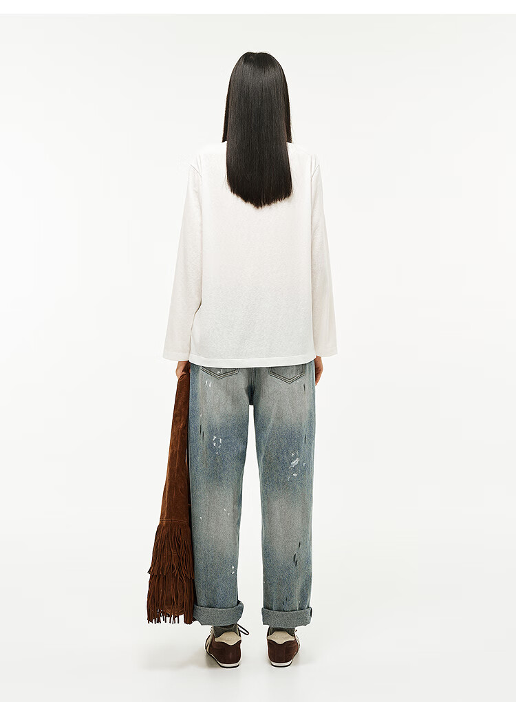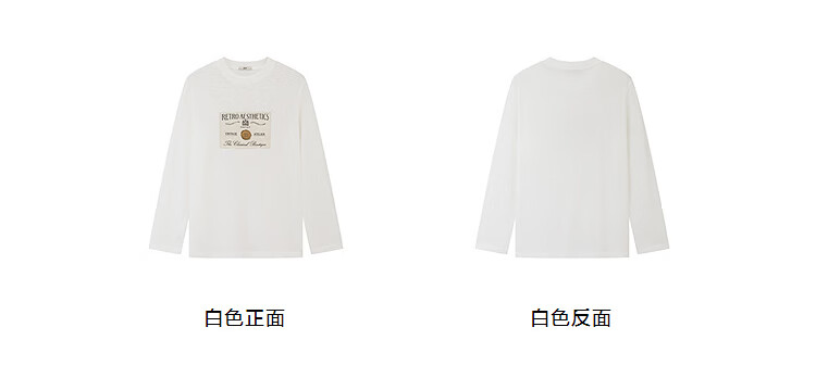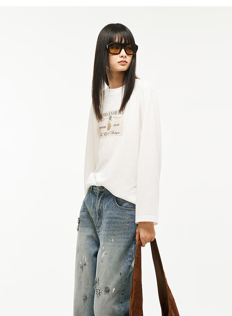 DZZIT long-sleeved T-shirt 2026 spring new style simple retro printed round neck loose top for women 3K1BA079J light khaki XS