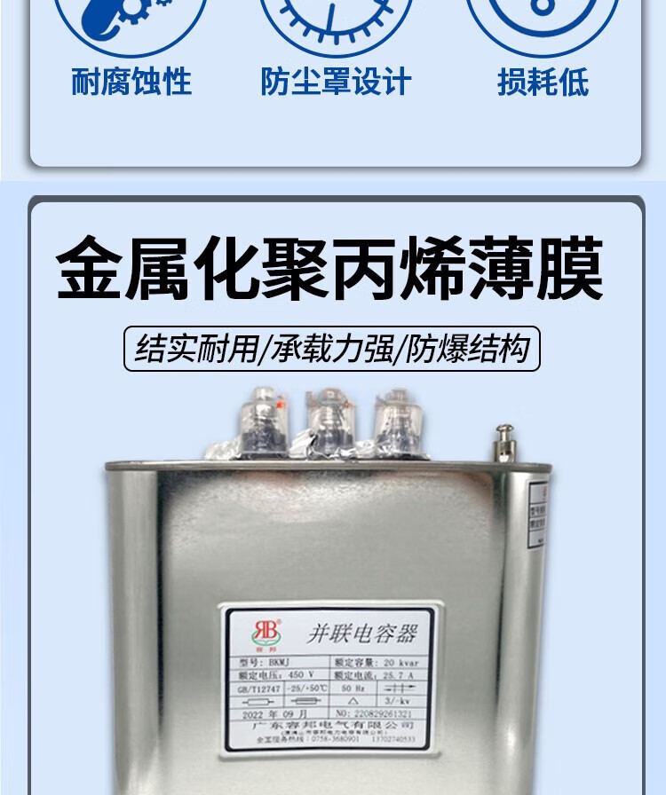 Original Rongbang BKMJ0.45-30-3 parallel capacitor 450V compensation power capacitor 38.5A/2 BKMJ-D-0.45-30-3 round 415V order