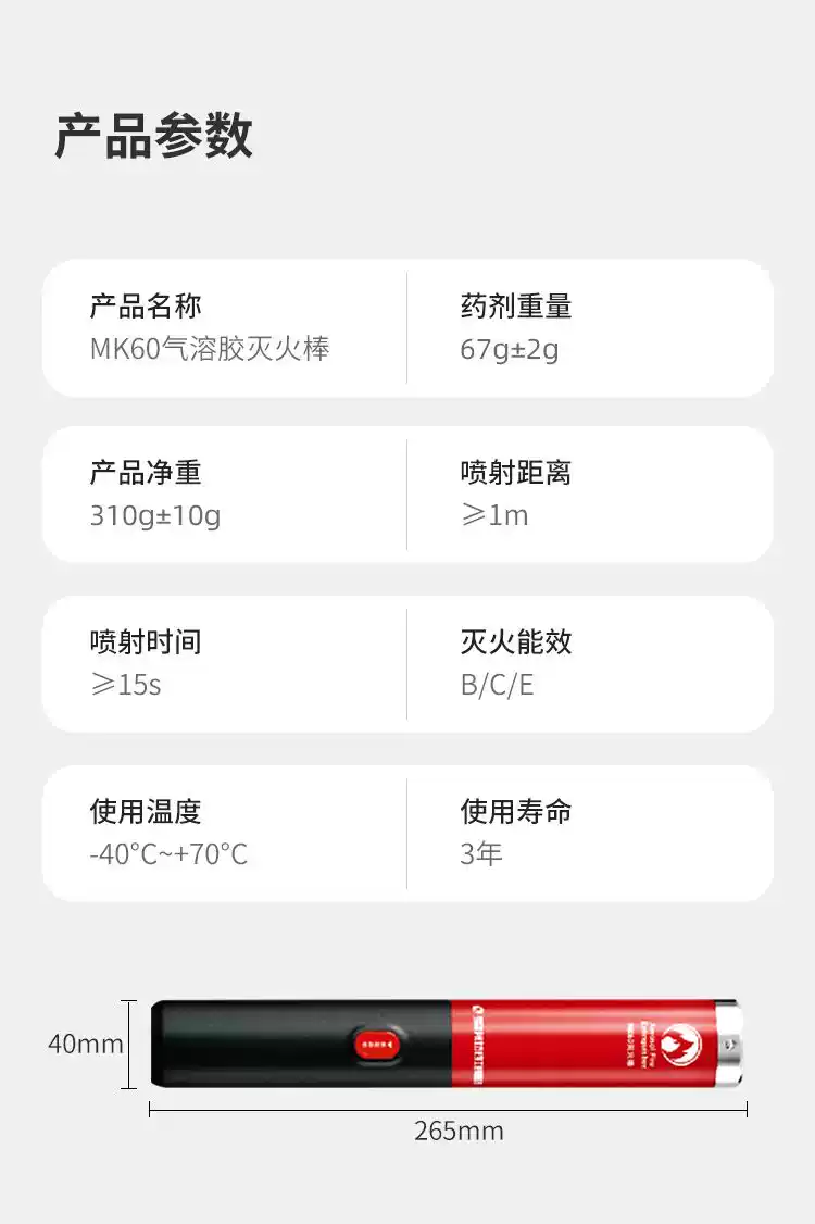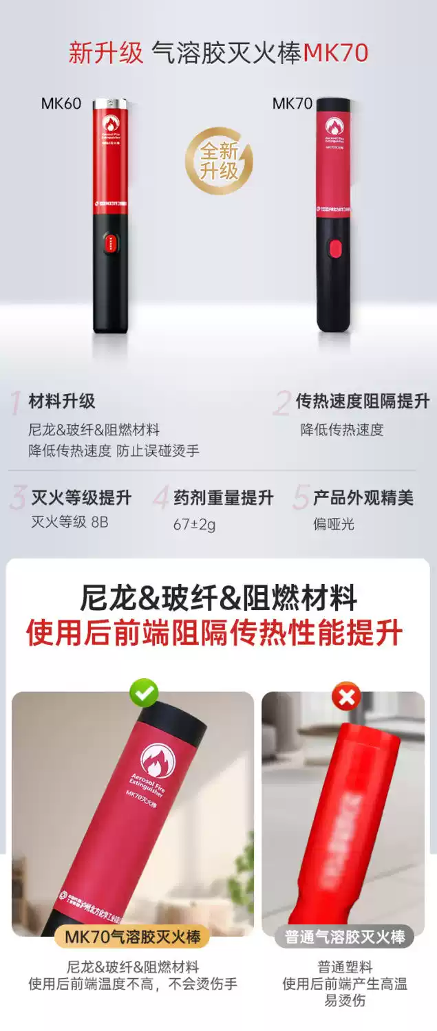Explosion-proof vehicle-mounted portable aerosol fire extinguishing stick environmentally friendly household hotel hotel annual inspection fire extinguisher production date October 2024 MK70