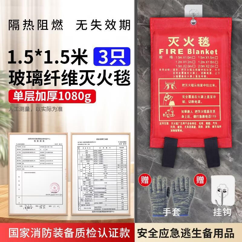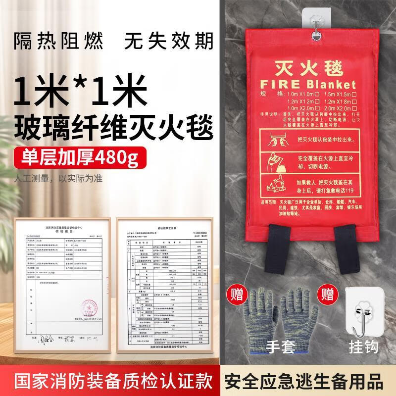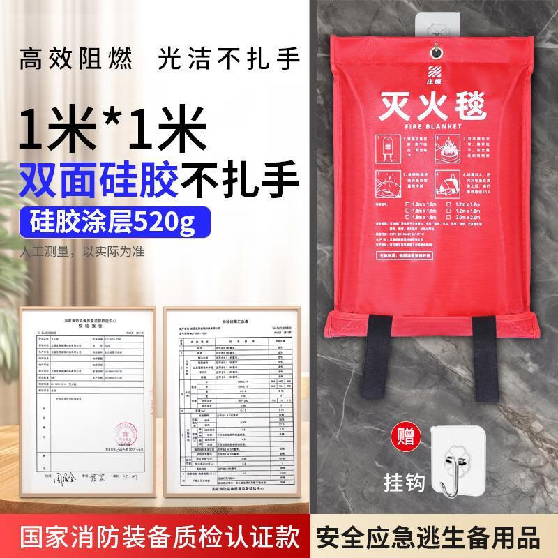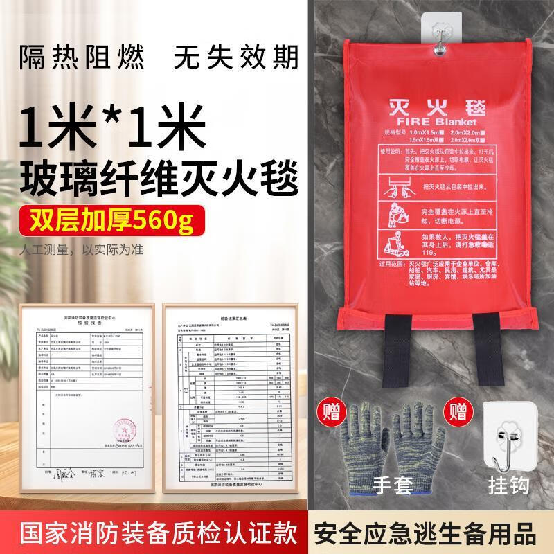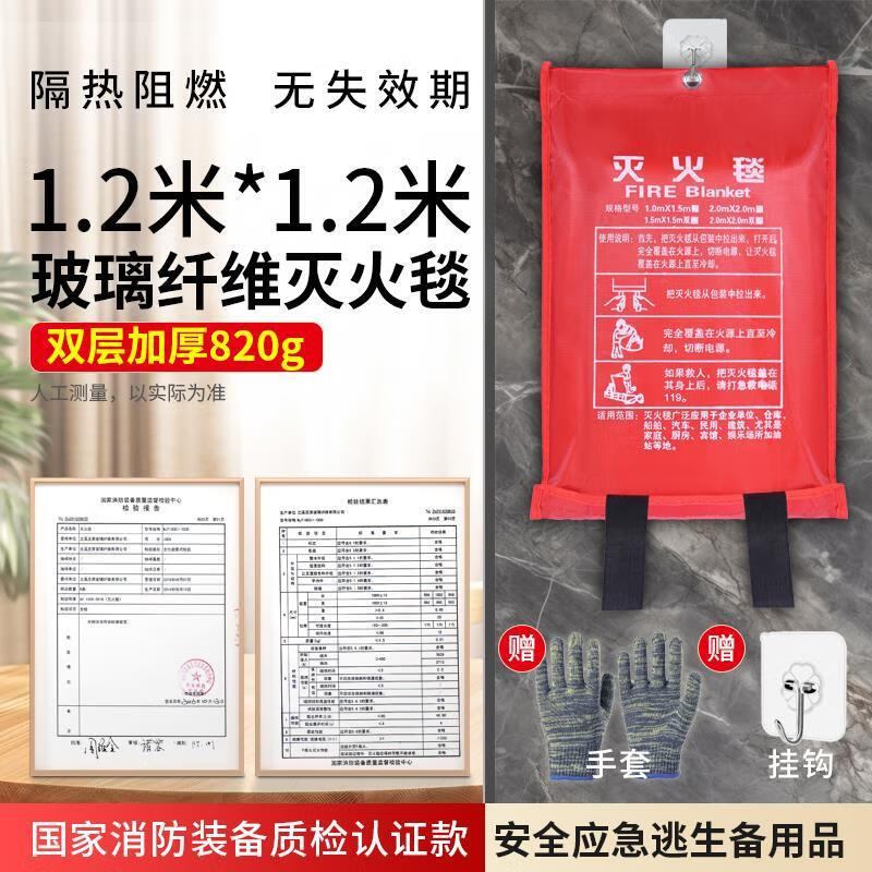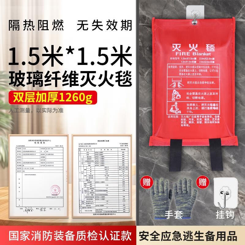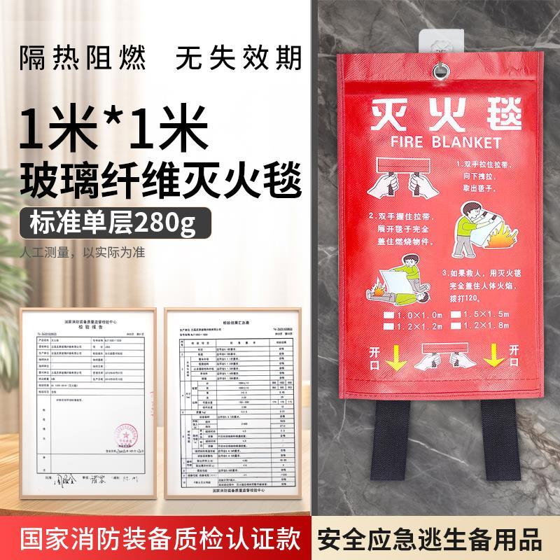 Kitchen special fire blanket, household kitchen fire blanket, high-rise escape blanket, oil pot fireproof cloth, fire blanket, double-sided silicone 1 piece 1.8*1.8m, silicone coating 1600g